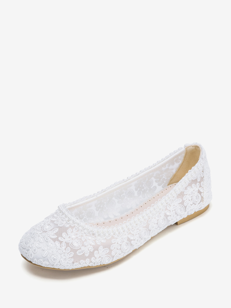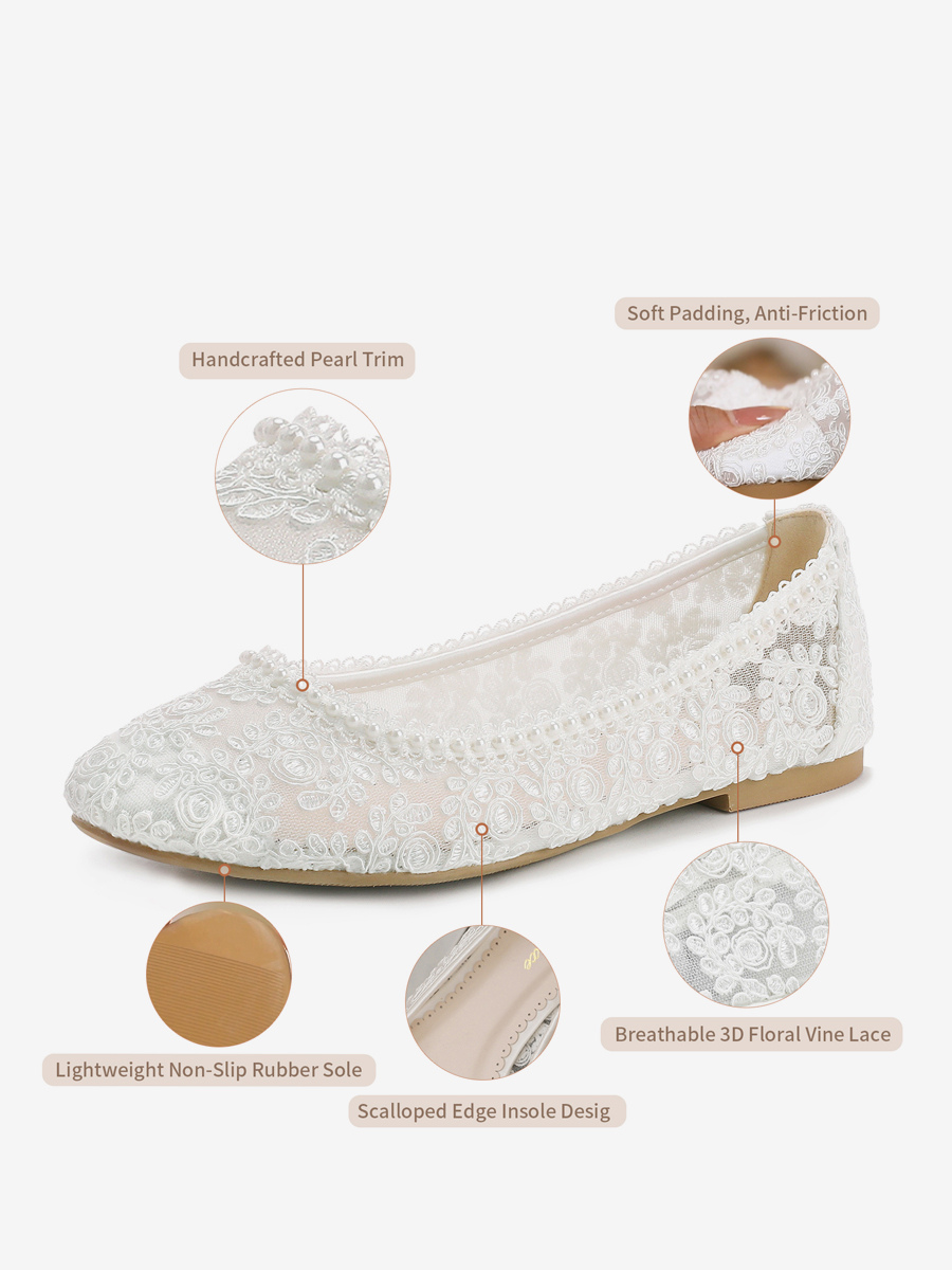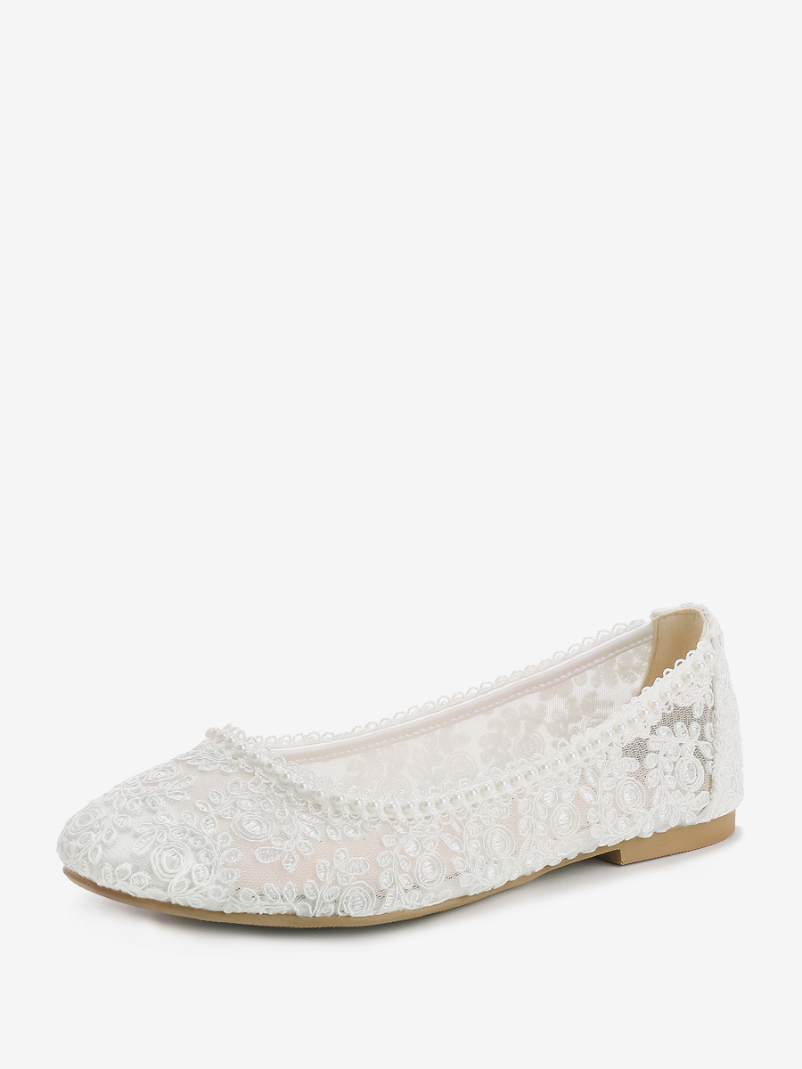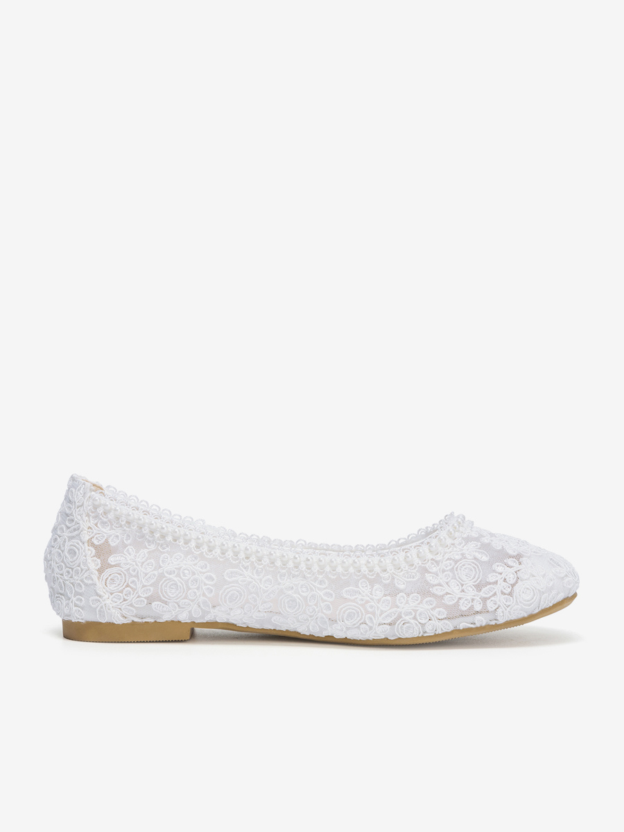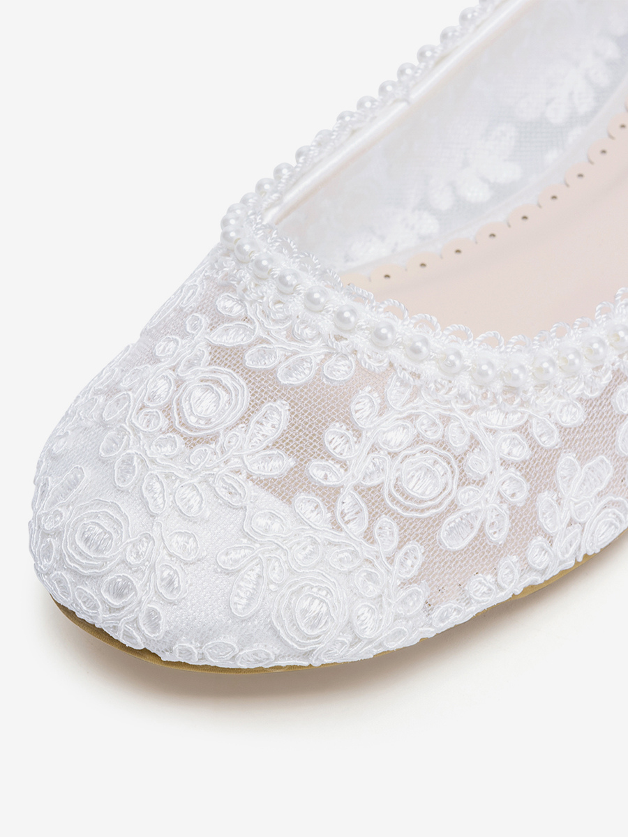 フラットブライダルシューズ ラウンドトゥ パールレース ヴィンテージウェディングシューズ