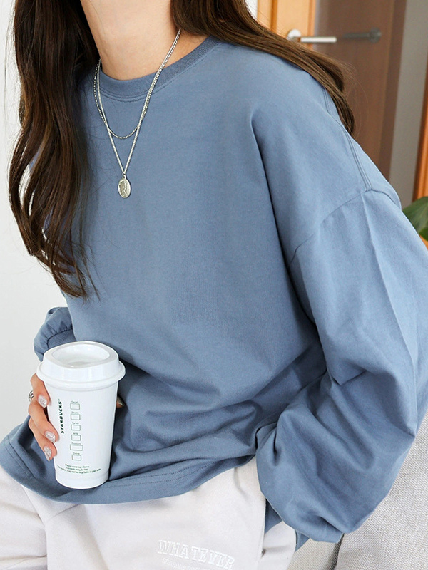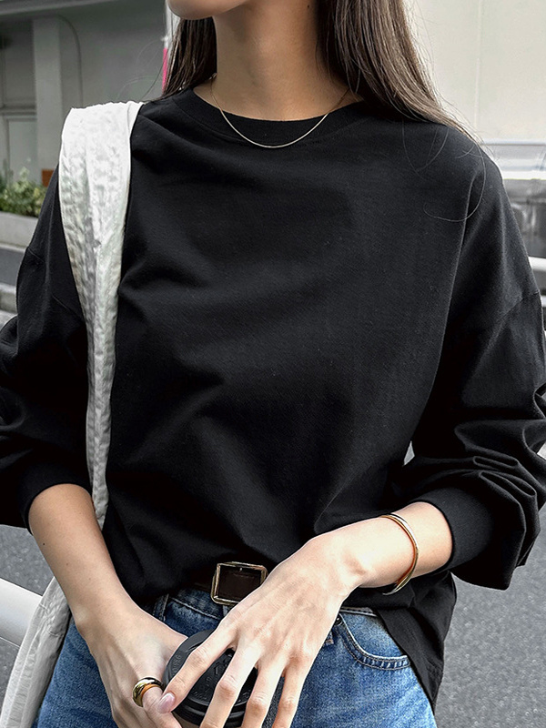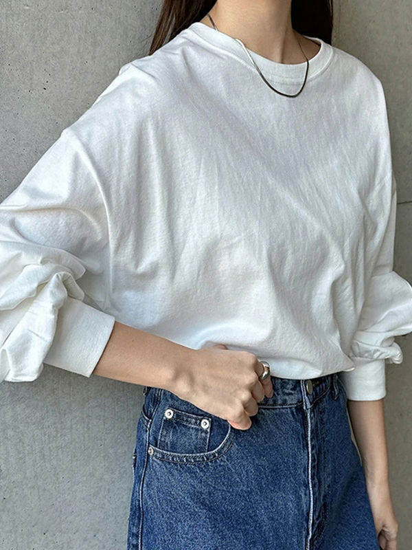 カジュアル ジュエルネック ホワイト 長袖 Tシャツ トップス レディース ファッション