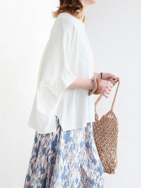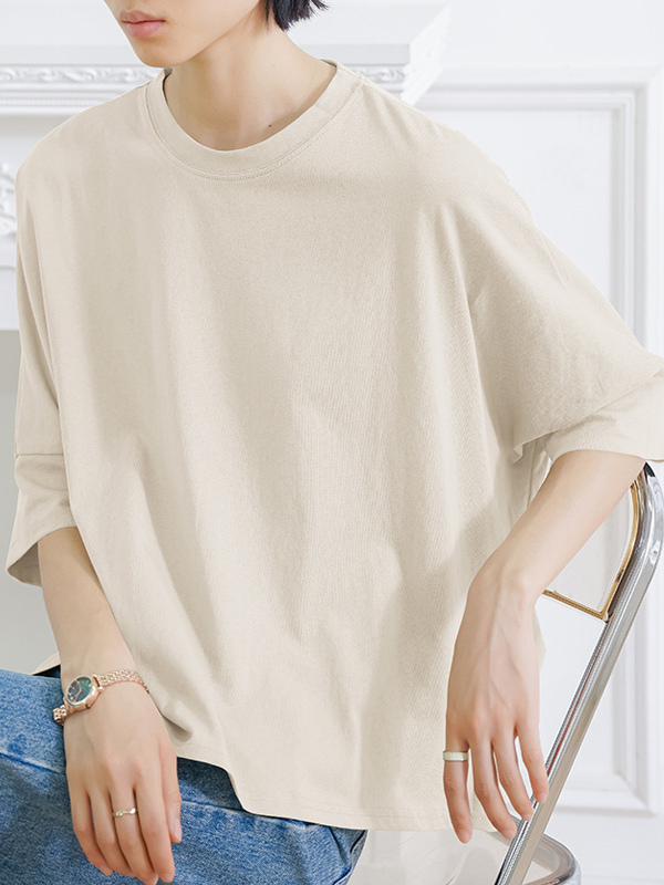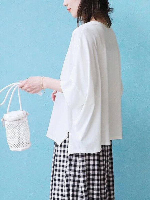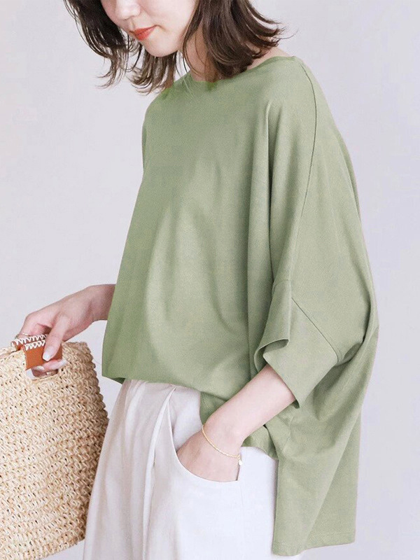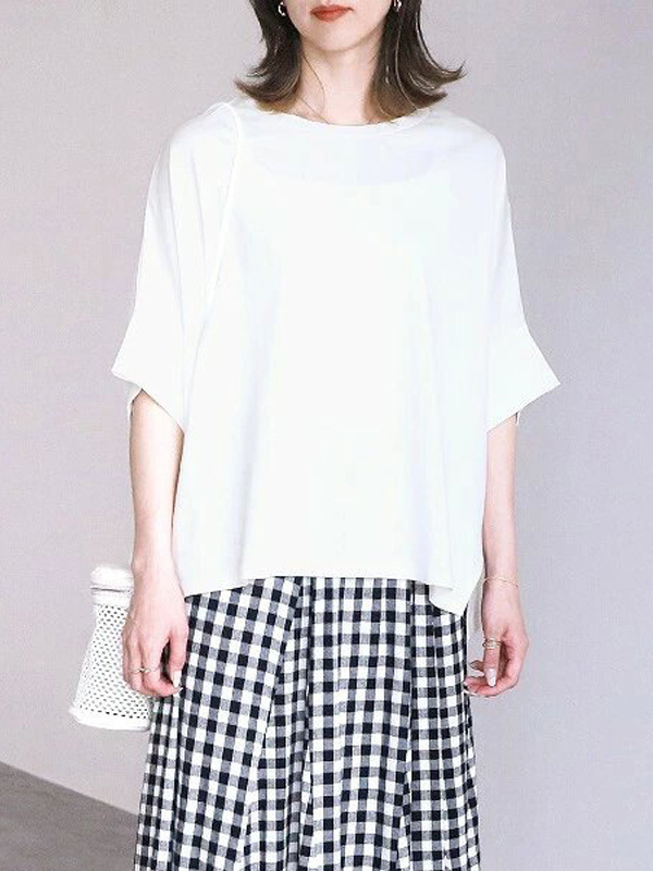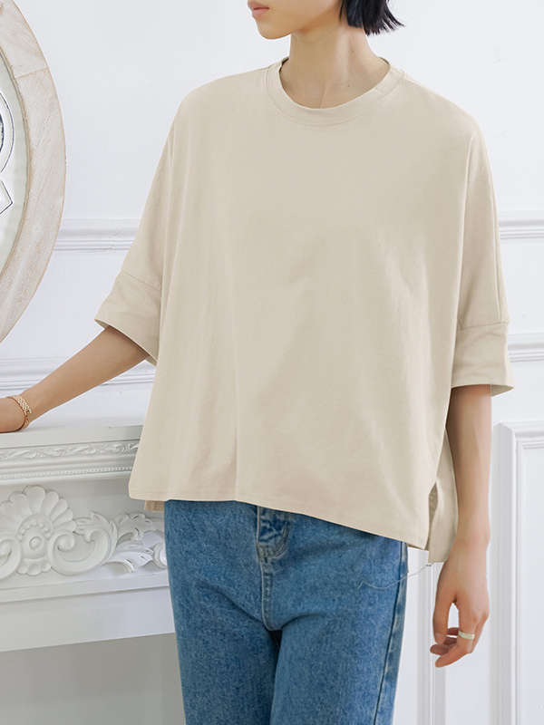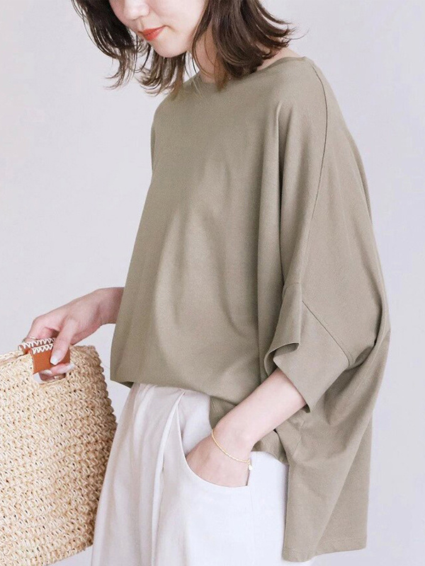 カジュアル ジュエルネック ディープグレー ハーフスリーブ スプリットフロントトップ Tシャツ トップス レディース ファッション