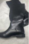 ブラック乗馬ブーツ レディース ラウンドトゥ ストーン柄 フラットニーハイブーツ