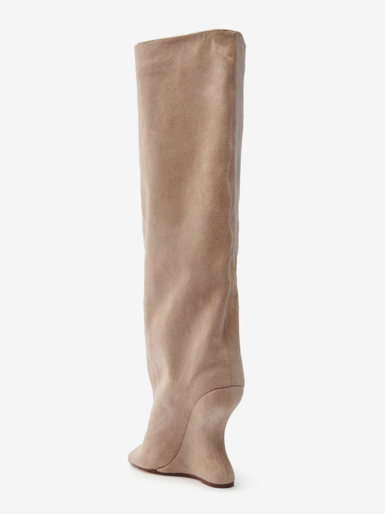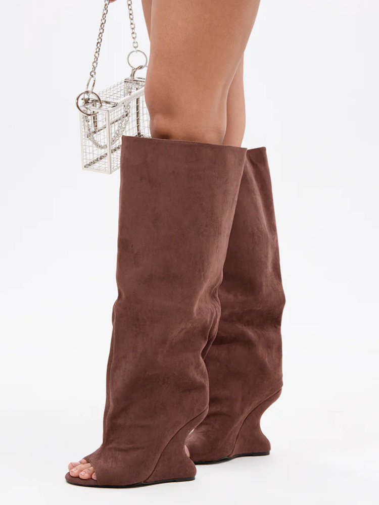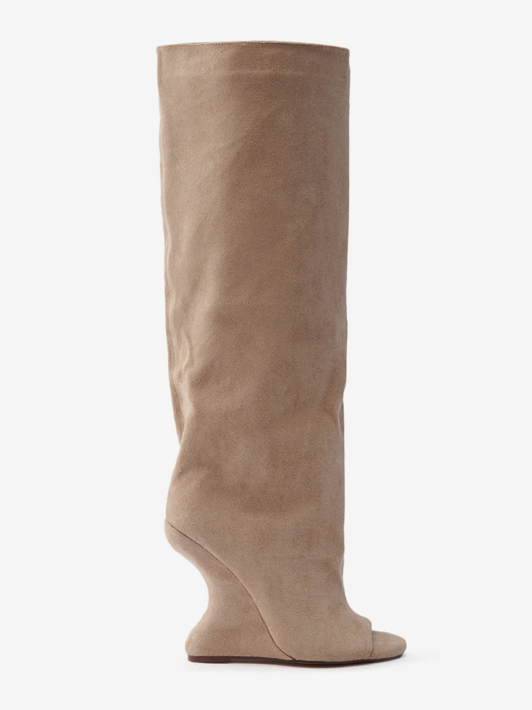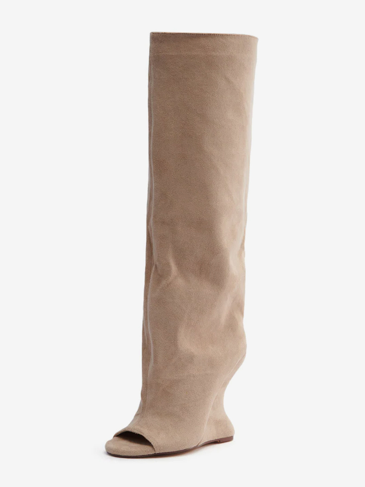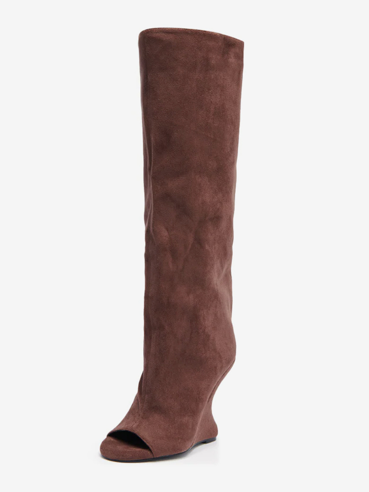 スエードニーハイブーツ レディース オープントゥデザインヒールブーツ
