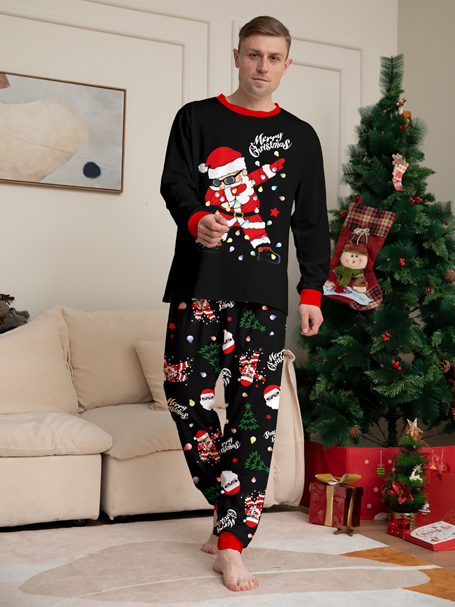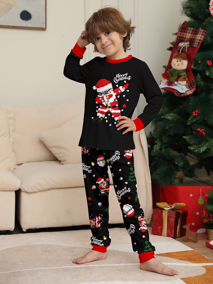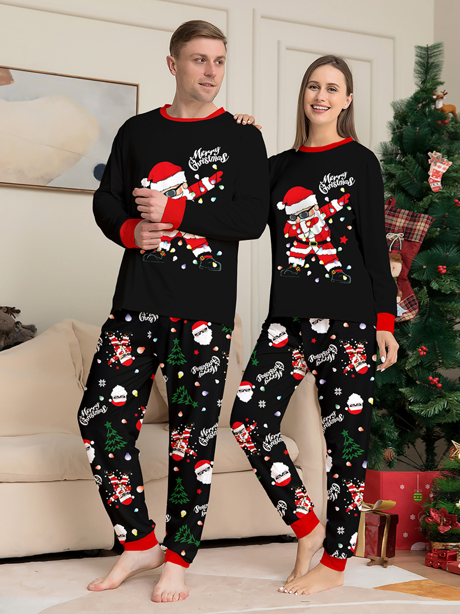 ダビングサンタの黒と赤のファミリー向けクリスマスパジャマ 2025