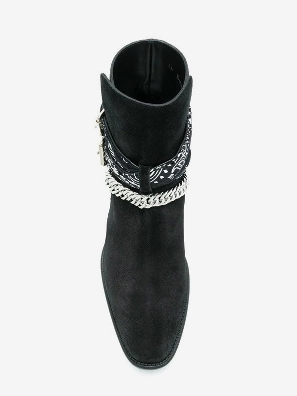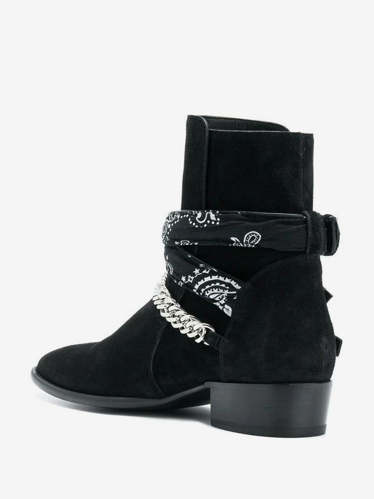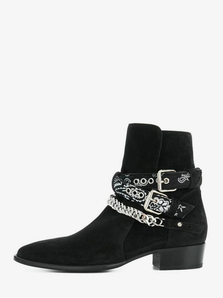 スエードアンクルブーツ メンズ ラウンドトゥ チェーンディテール チャンキーヒールブーツ