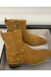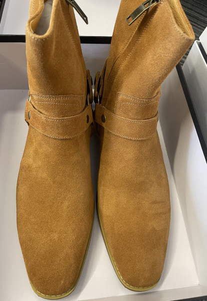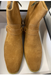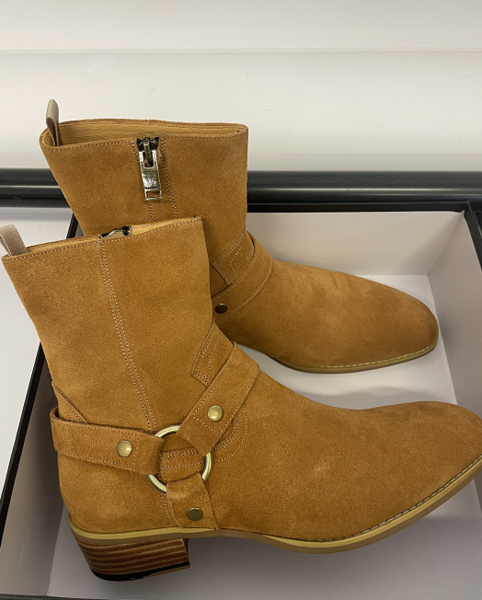 メンズ用スエードアンクルブーツ ラウンドトゥ バックルディテール チャンキーヒール カジュアルブーツ