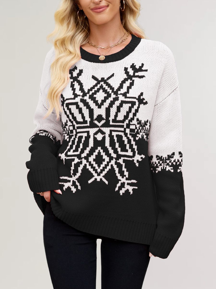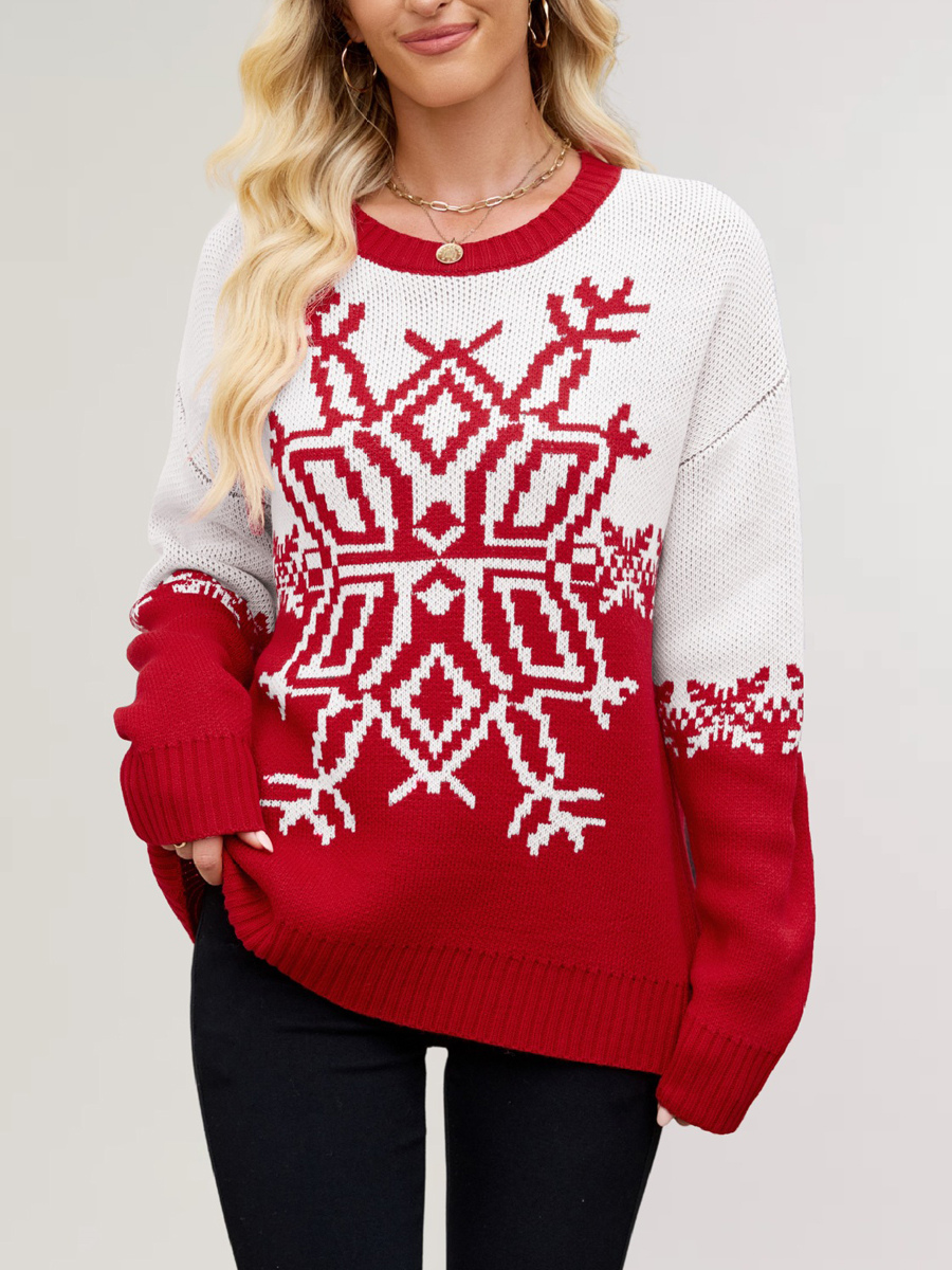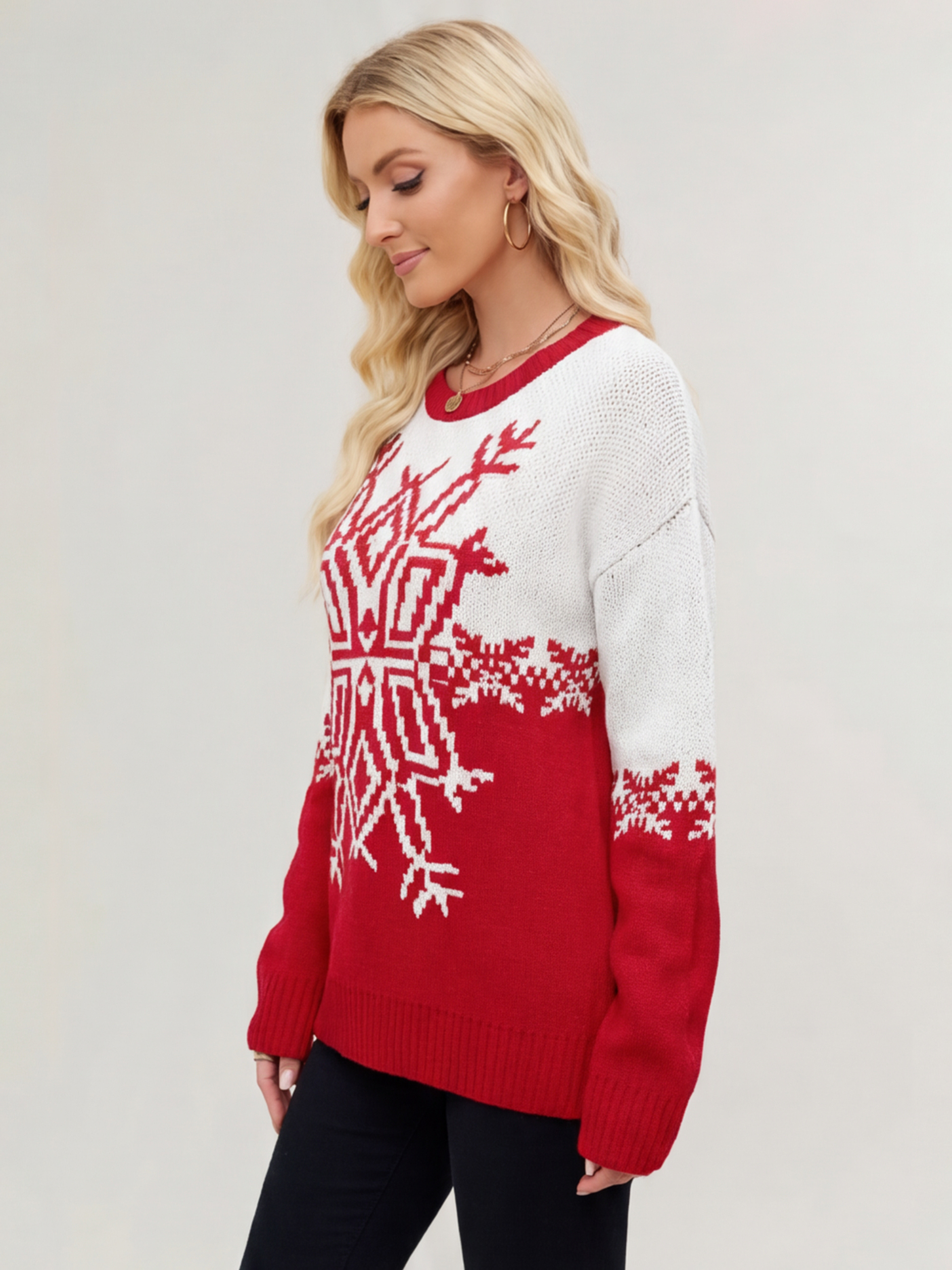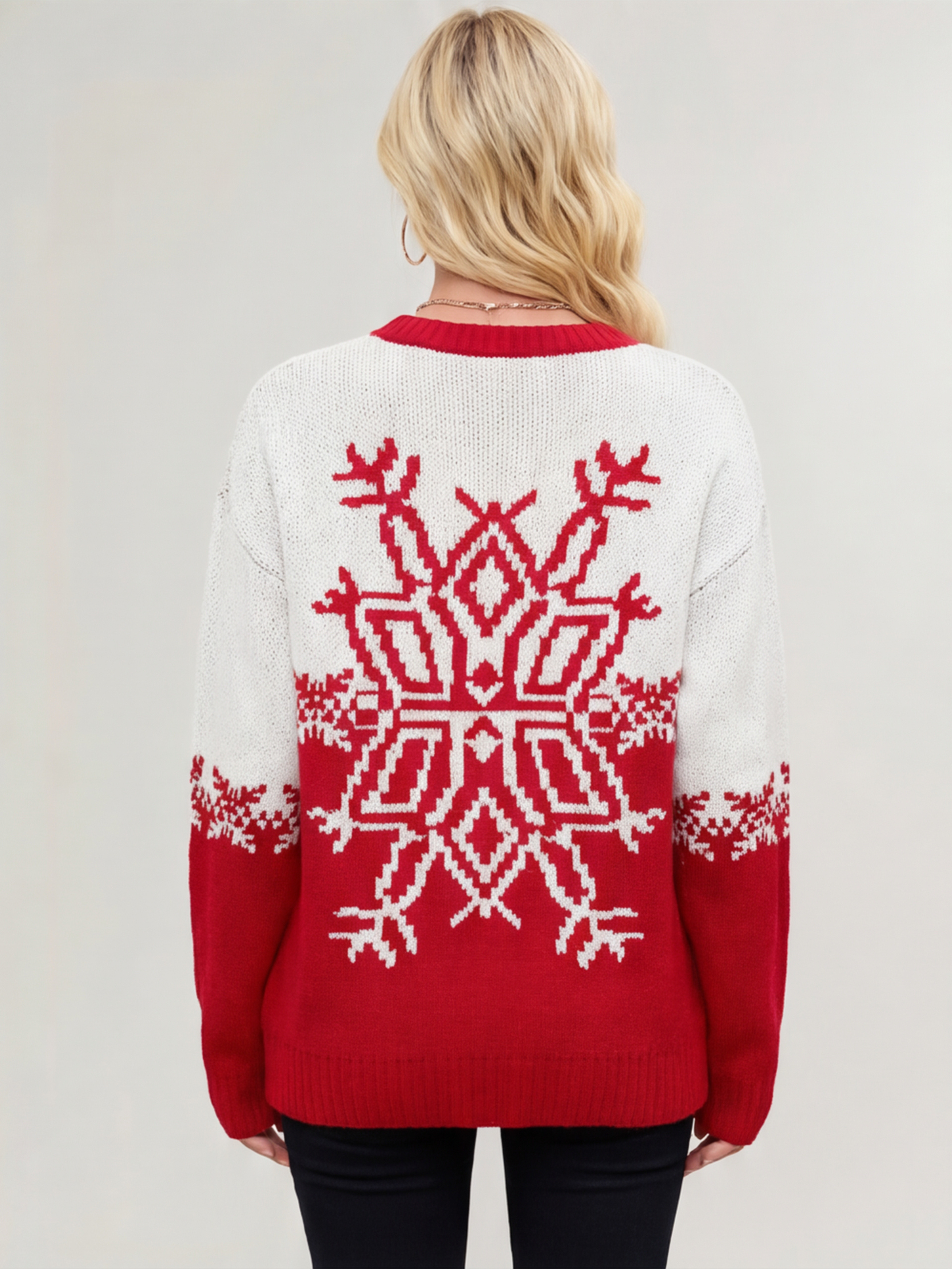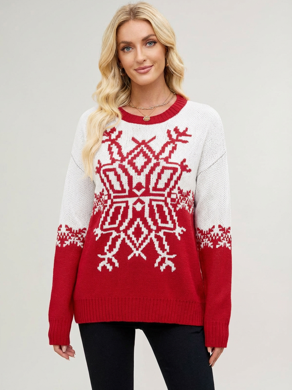スノーフレークプリントのクリスマスセーター(レッド&ホワイト)レディースニットプルオーバー(2025年)