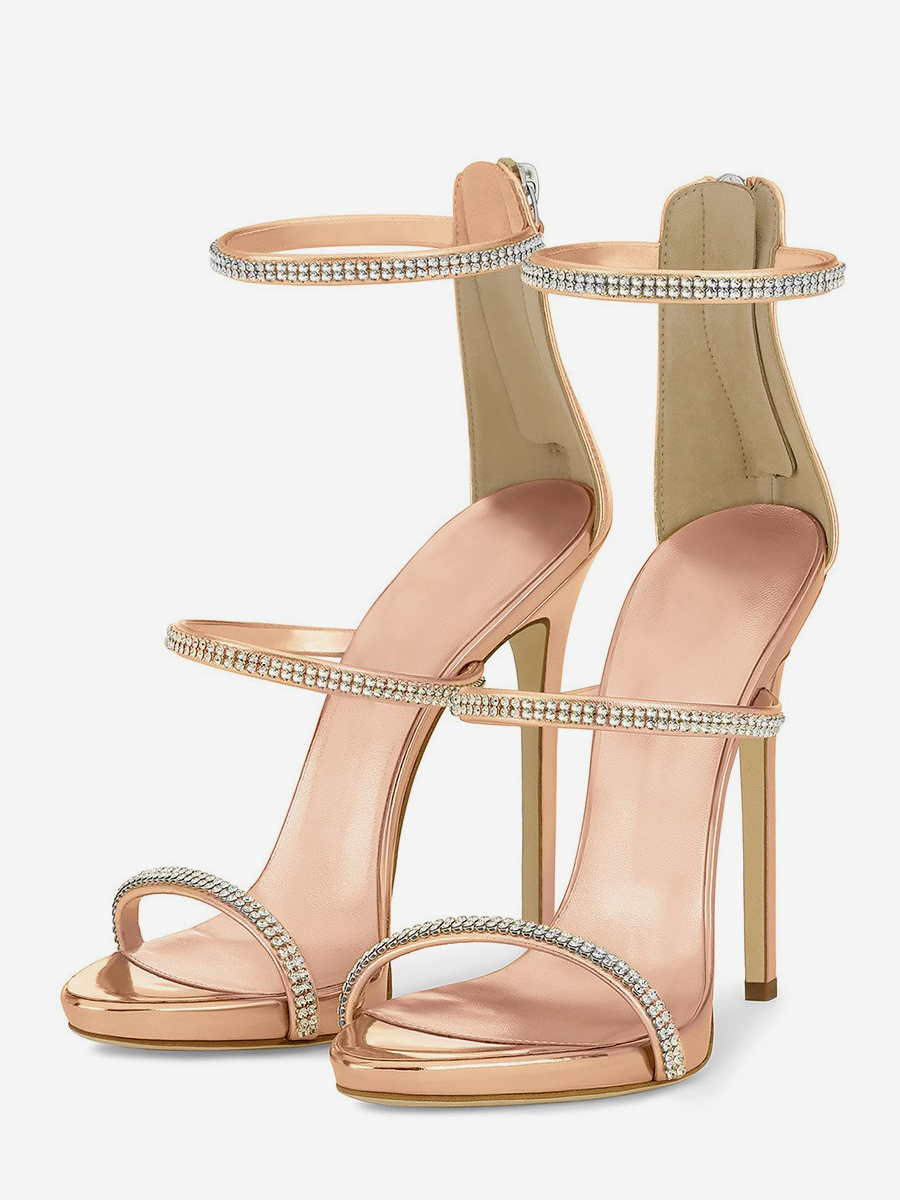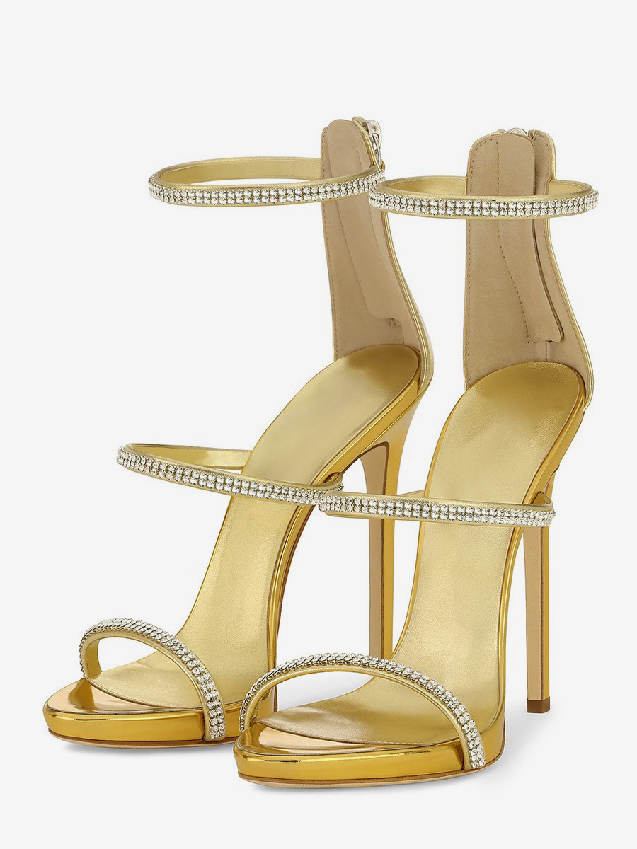 ハイヒールサンダル レディース ラインストーン ストラップ スティレットヒール パーティーシューズ
