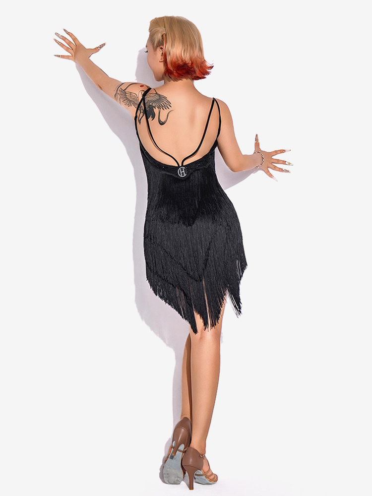 ラテンダンスドレス フリンジ レディース ポリエステルドレス スパゲッティダンサー ダンスコスチューム