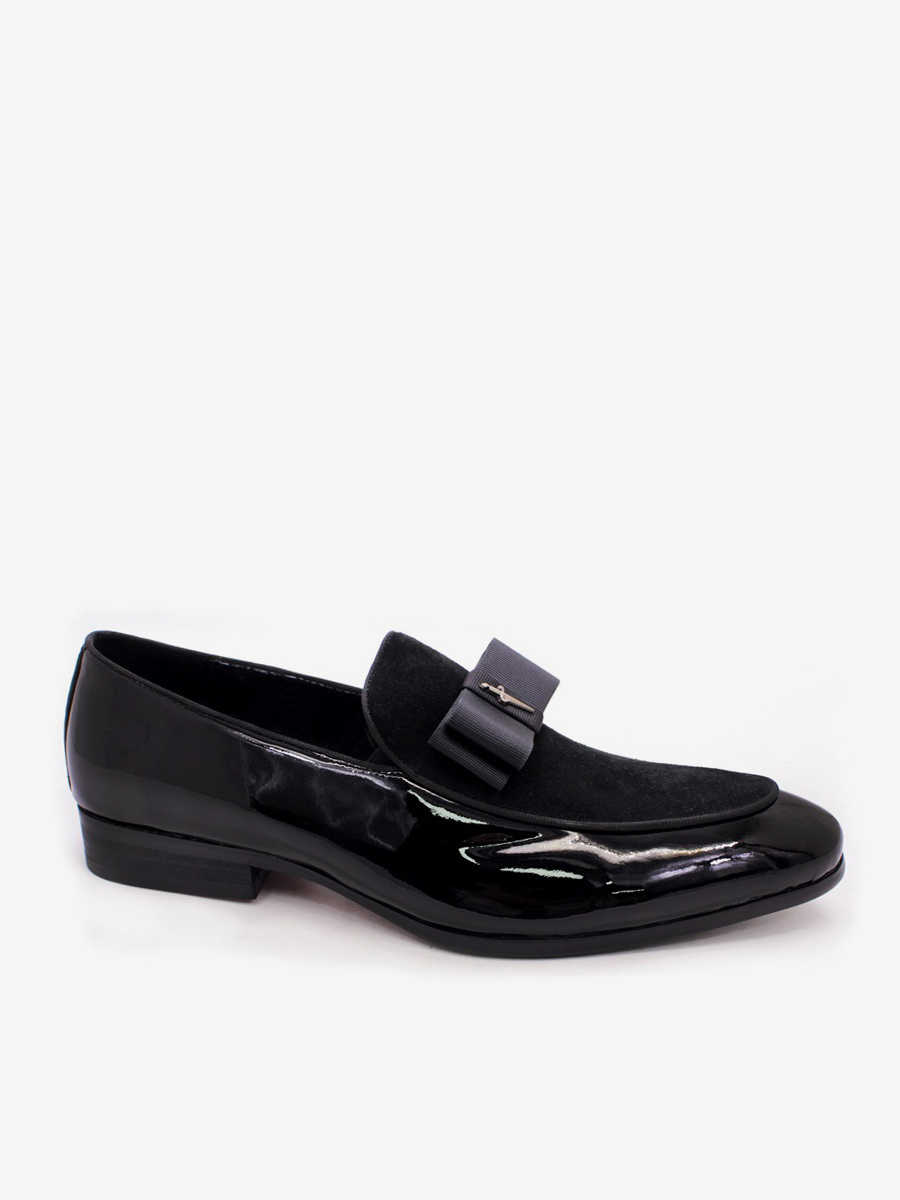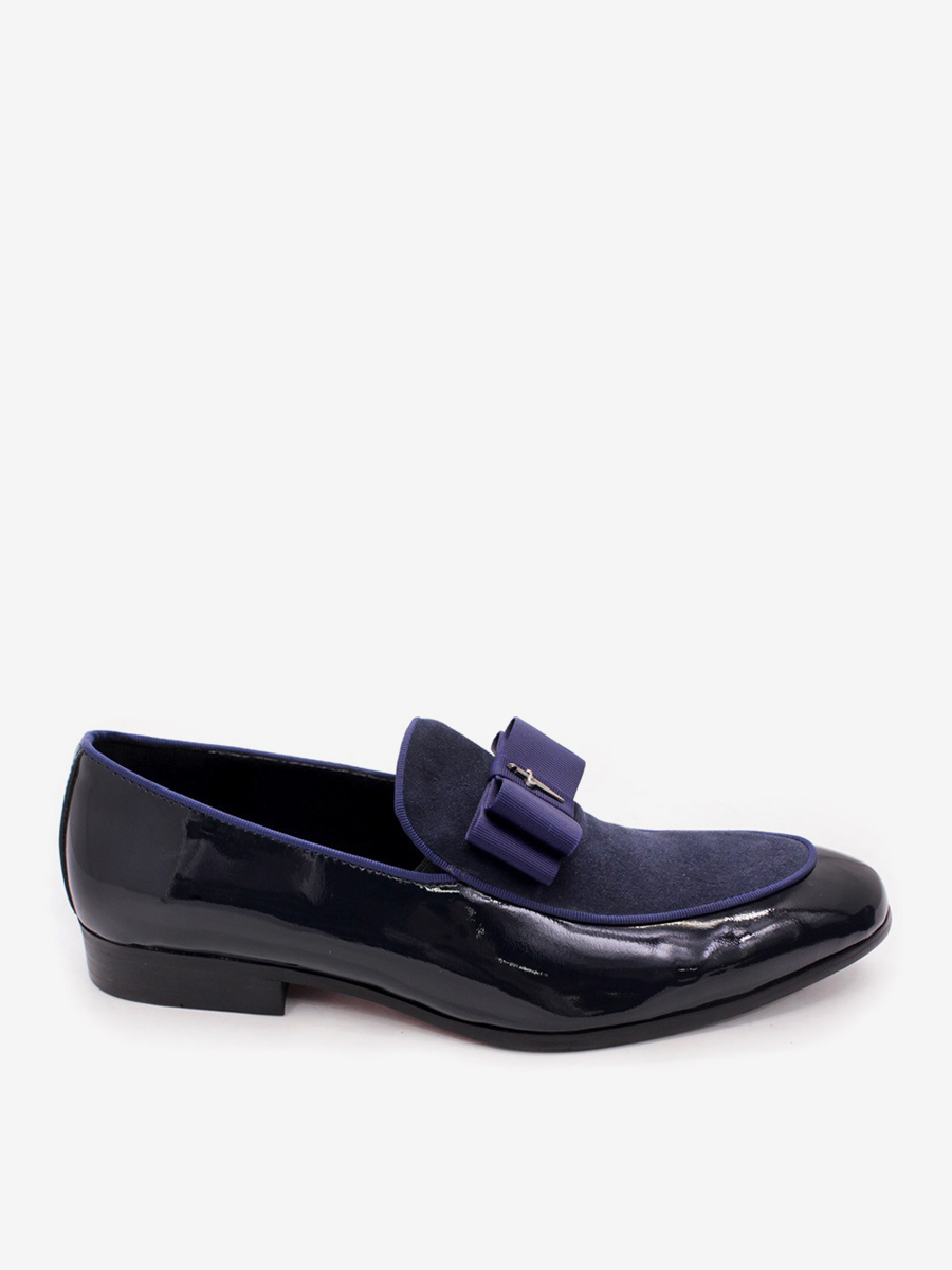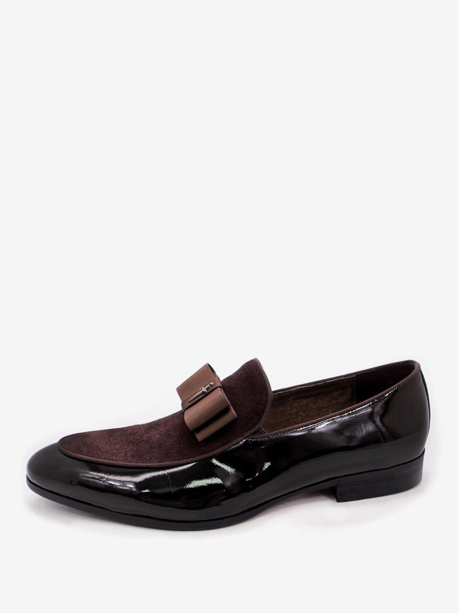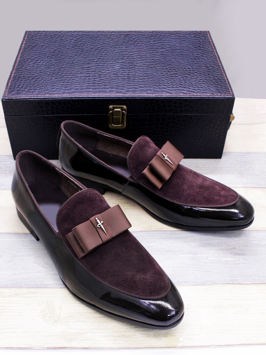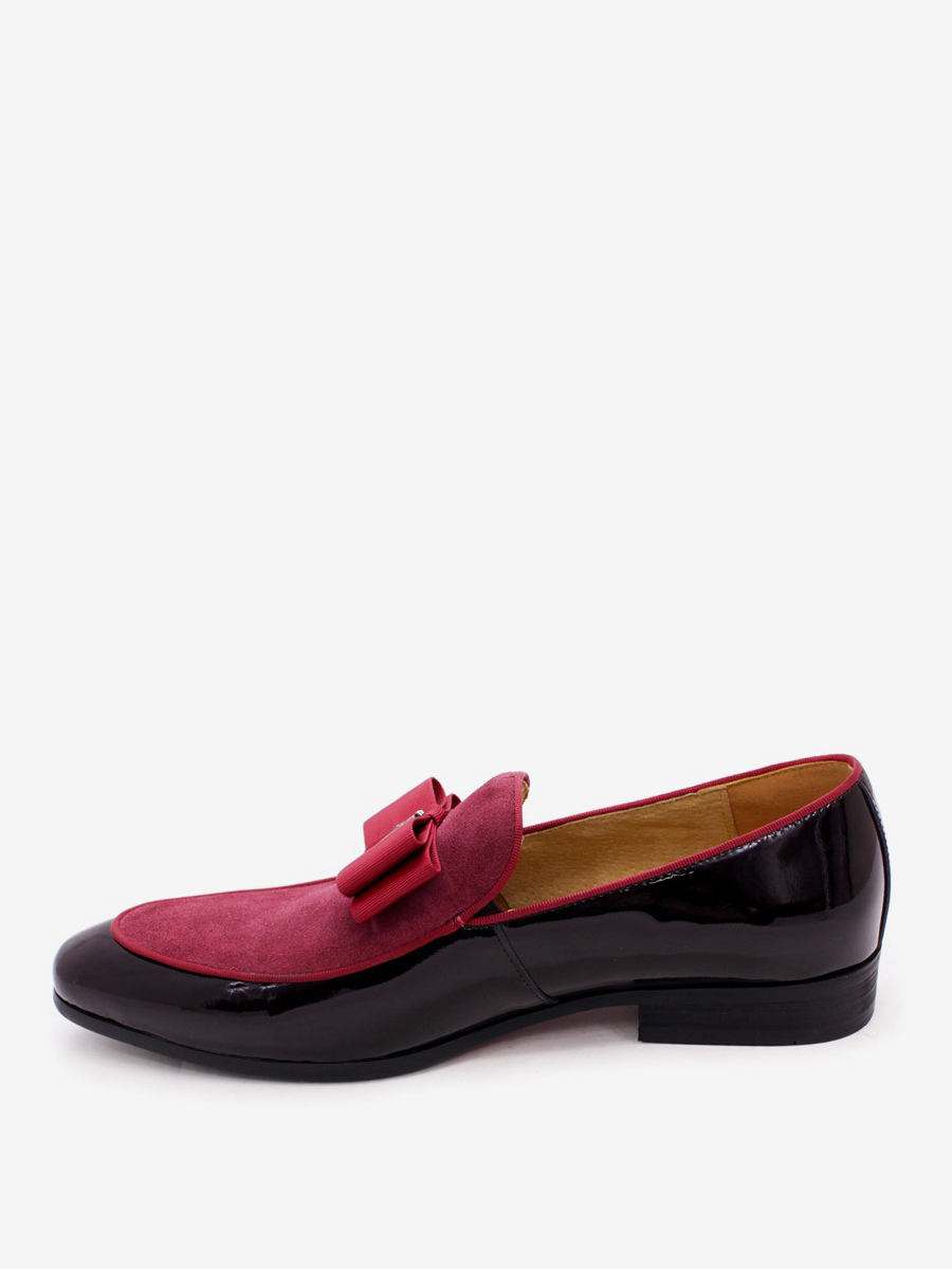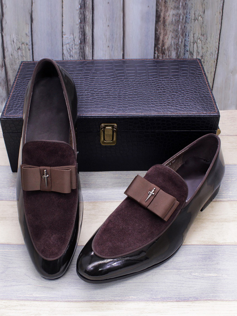 メンズドレスローファー 本革 ラウンドトゥ パッチワーク ボウ スリッポン プロムシューズ