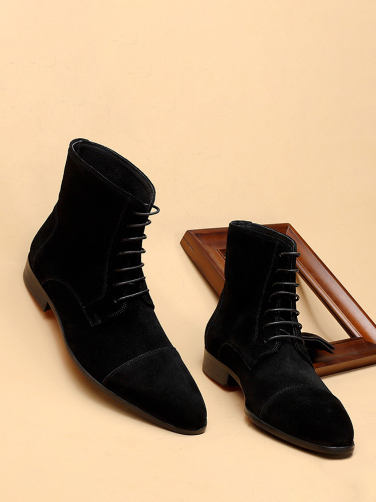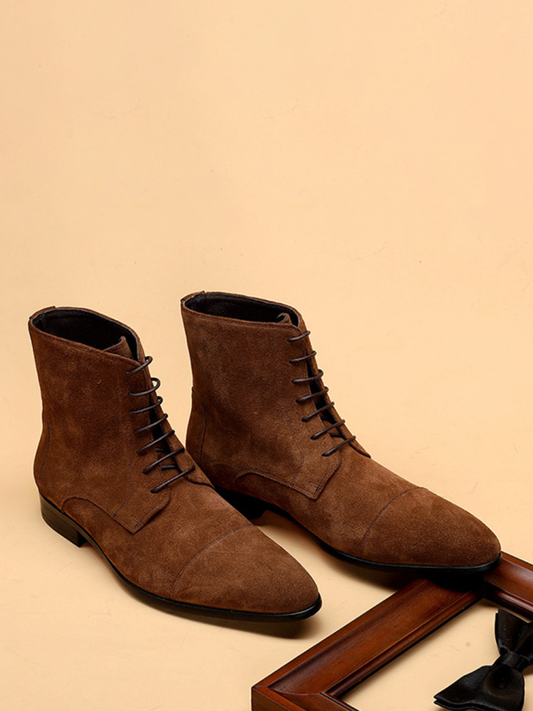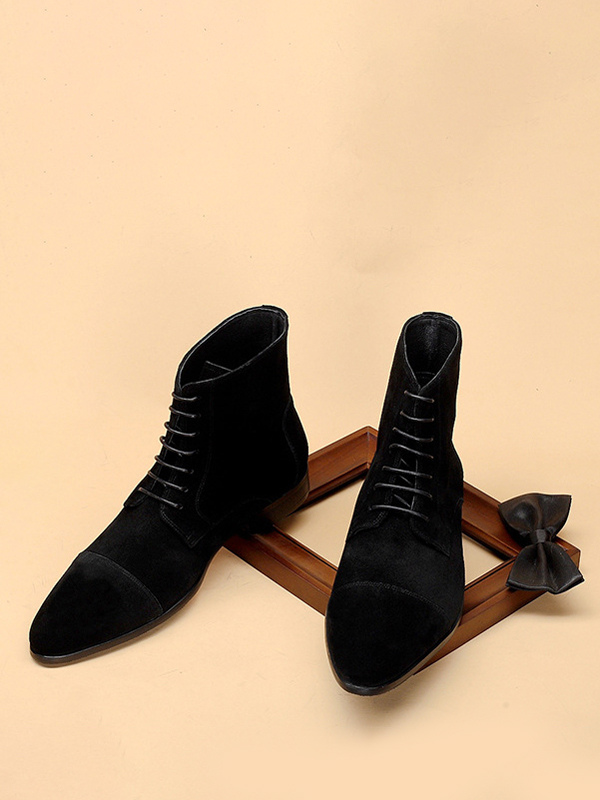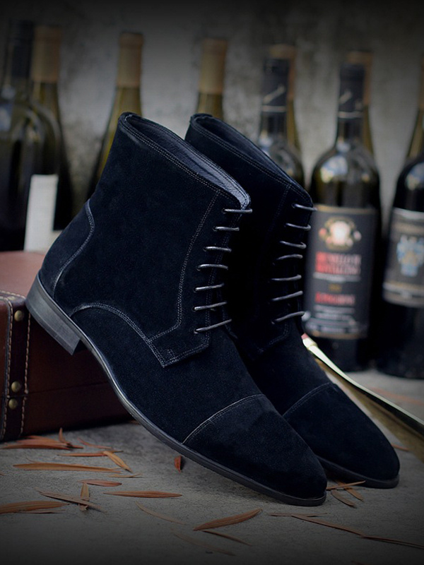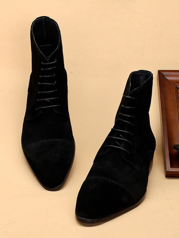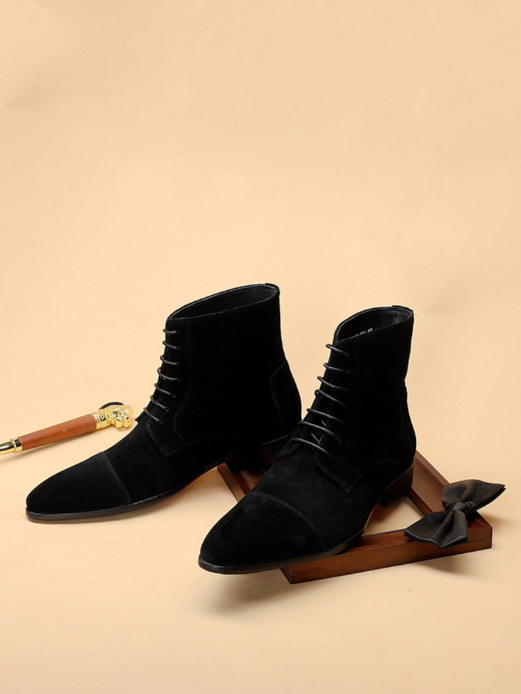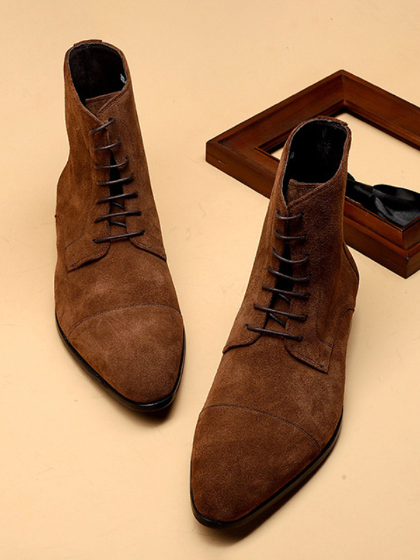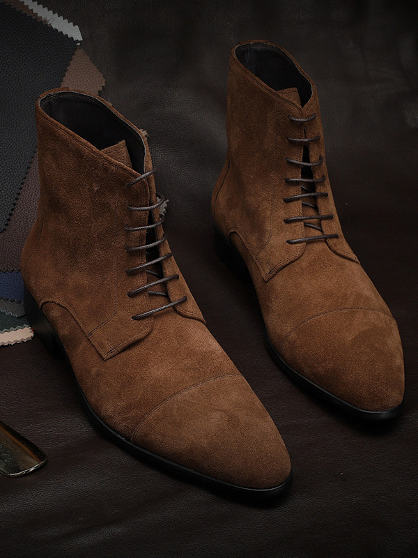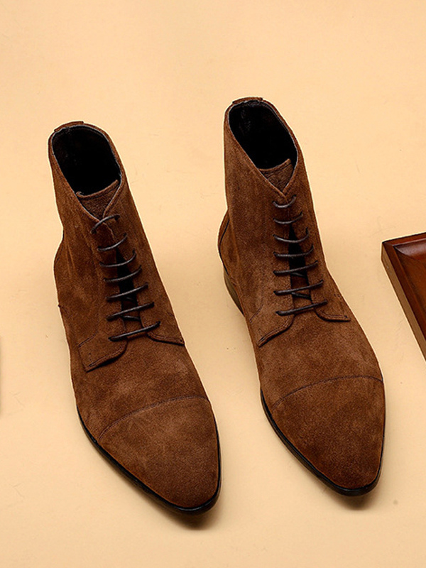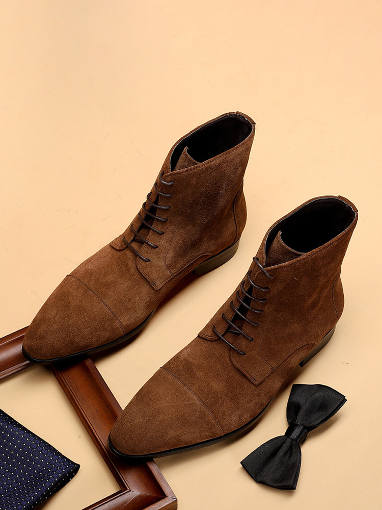 メンズ アンクルブーツ スエードレザー ラウンドトゥ レースアップ ドレスブーツ