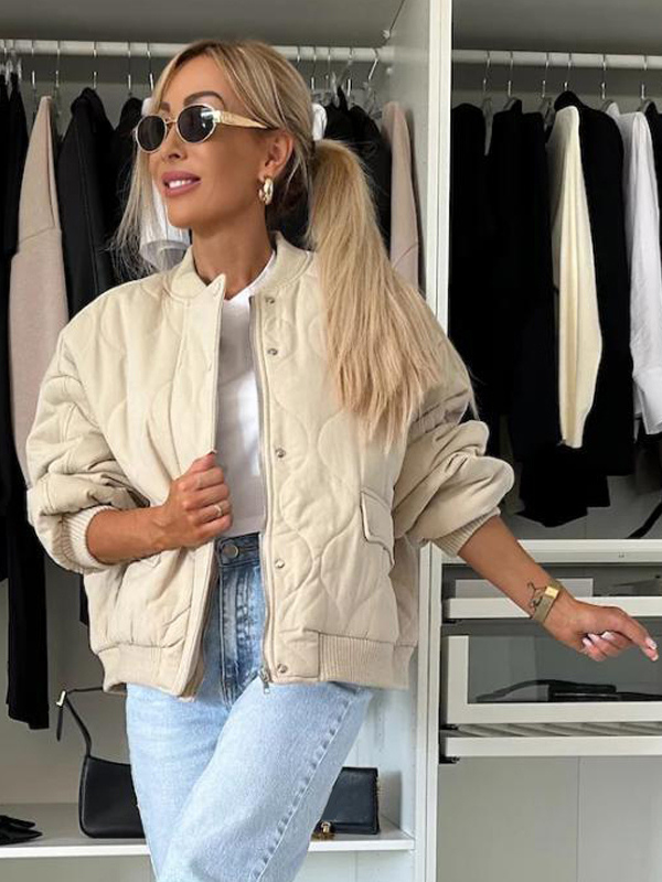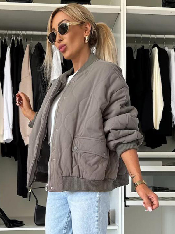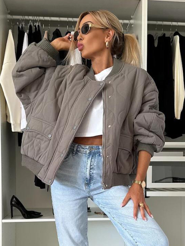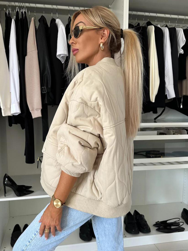 オーバーサイズ ブラック キルティング ボンバージャケット パッド入り ストリートウェア コート レディース 2026