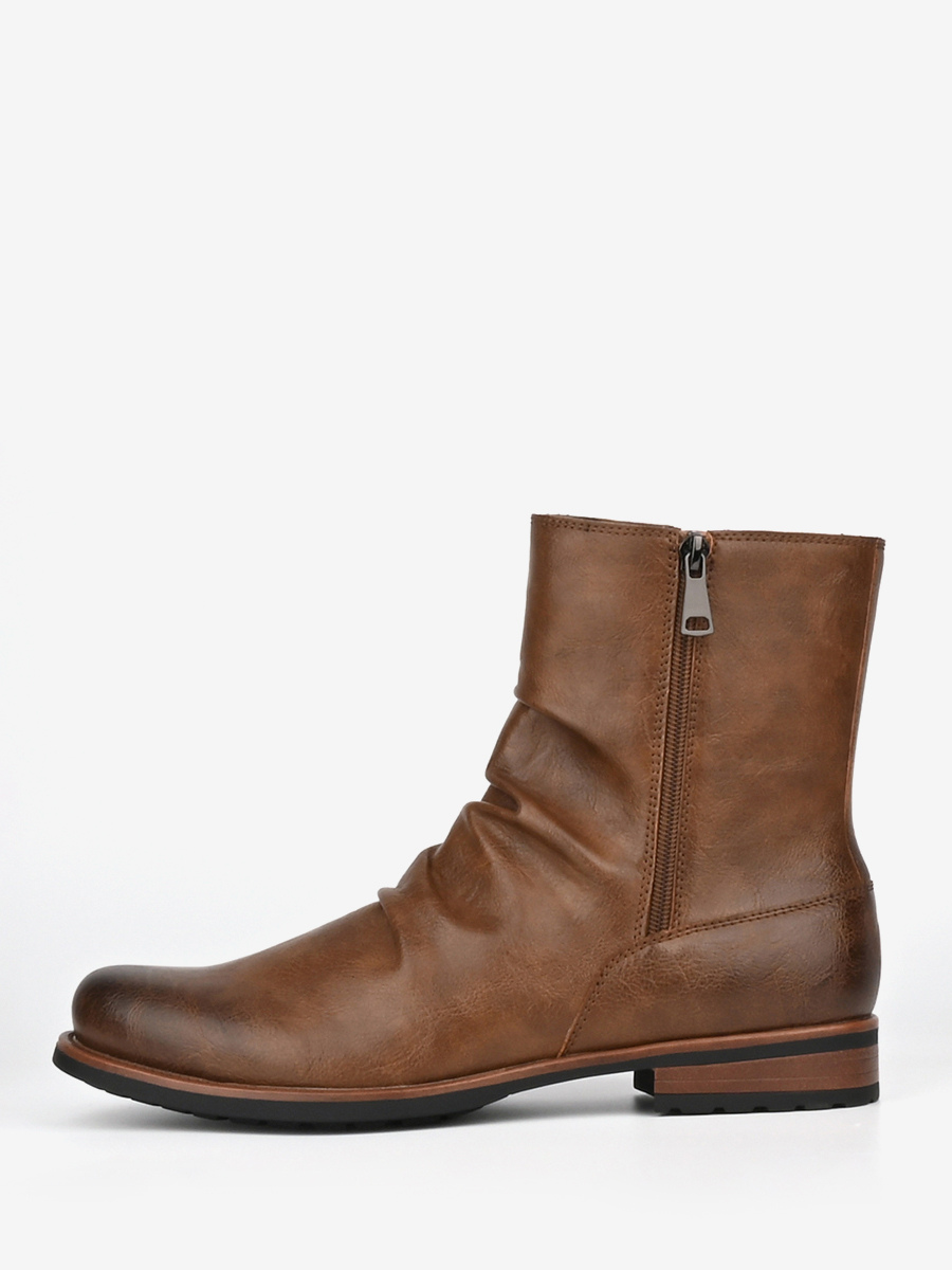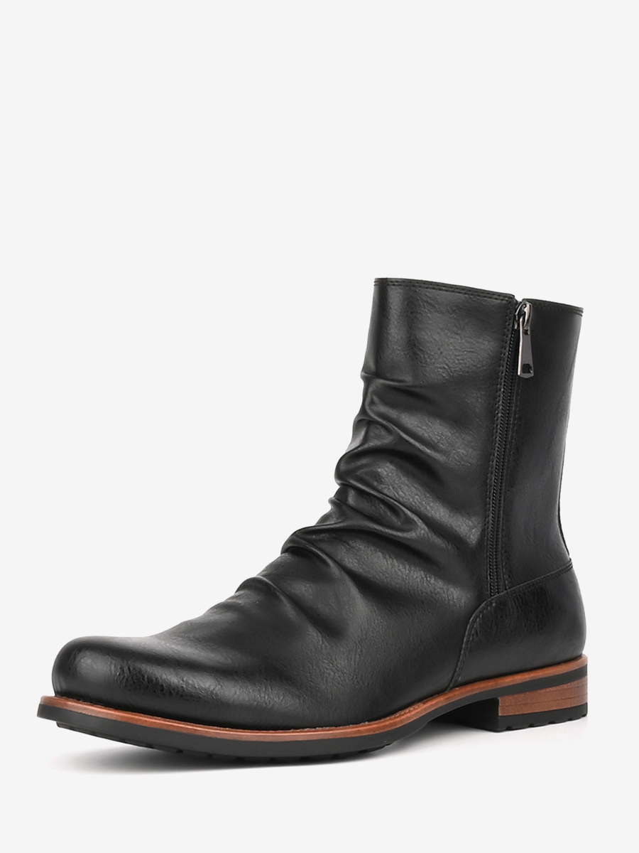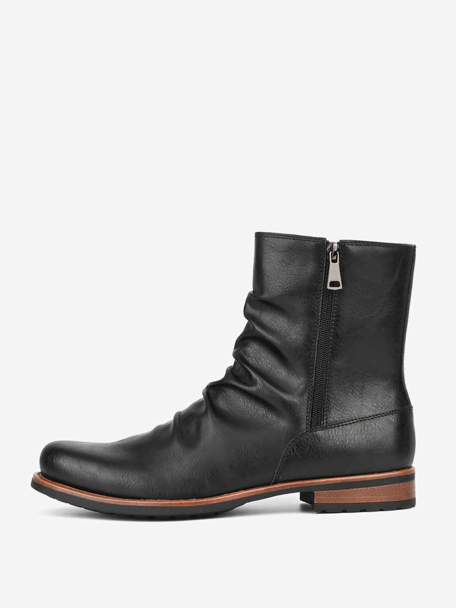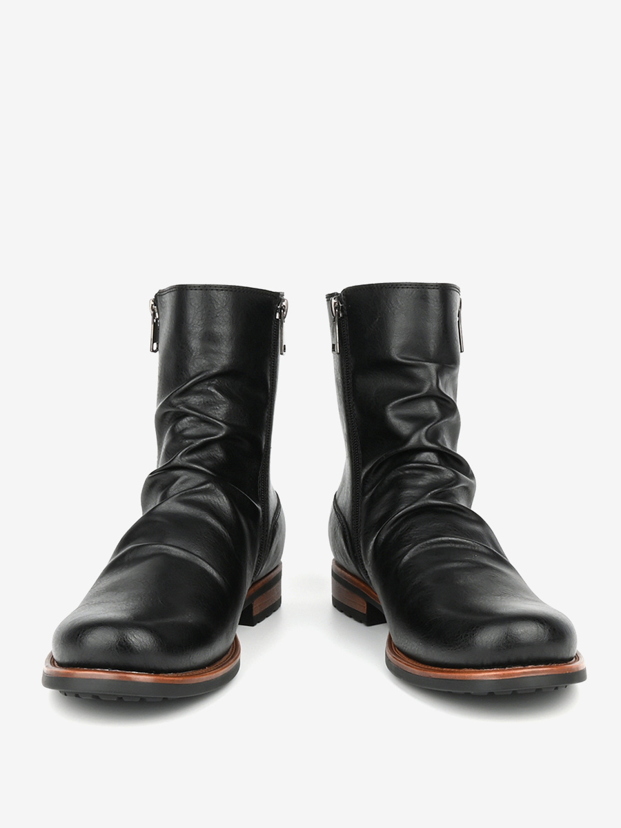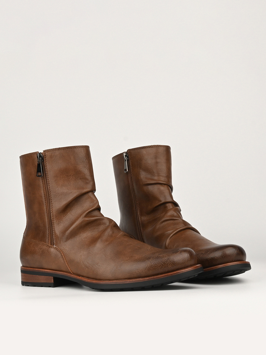 メンズ アンクルブーツ ラウンドトゥ ルーシュ ジップアップ ブーティ