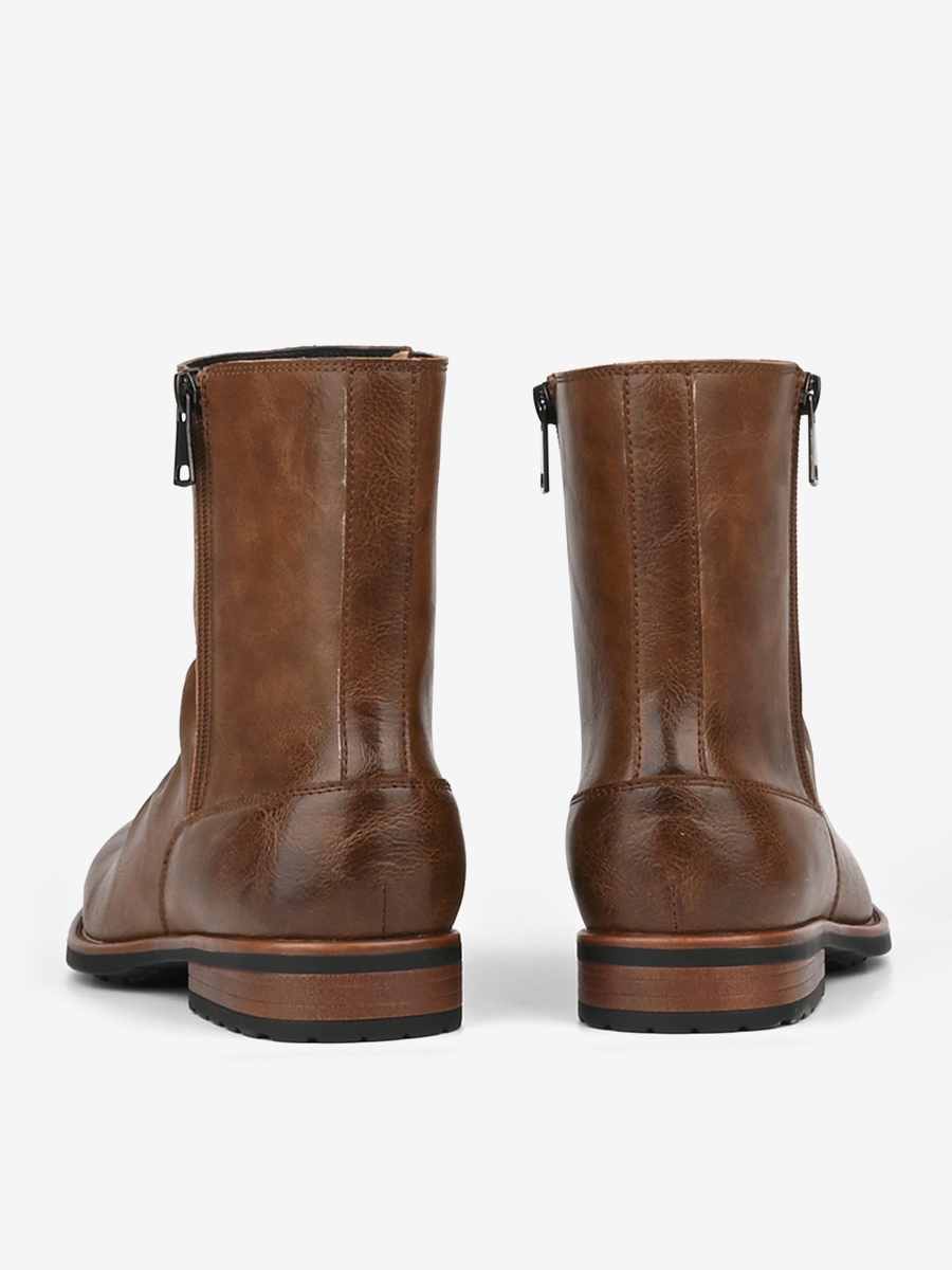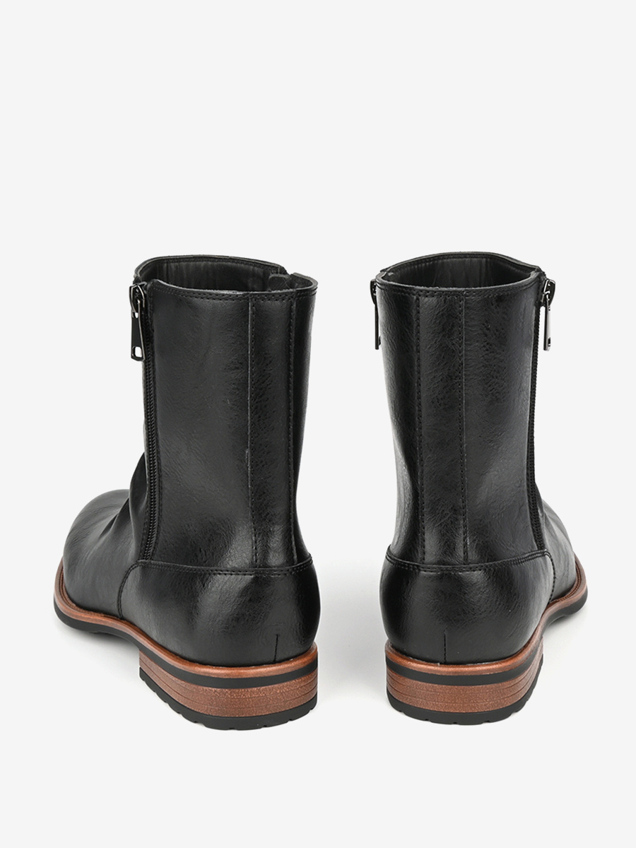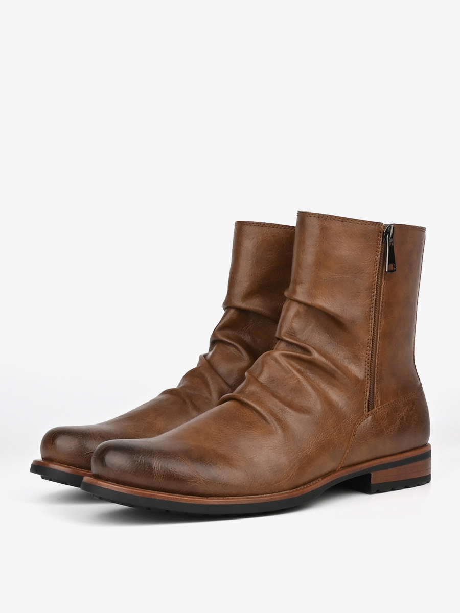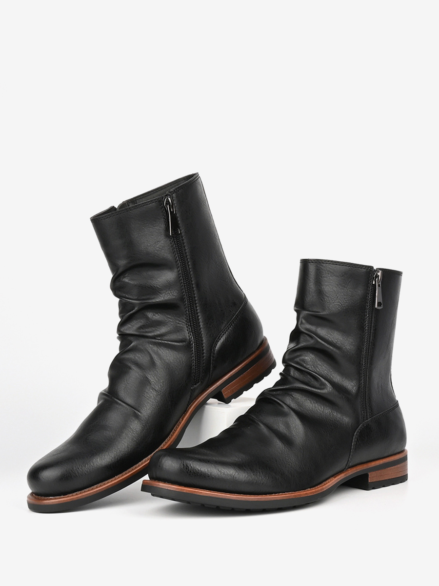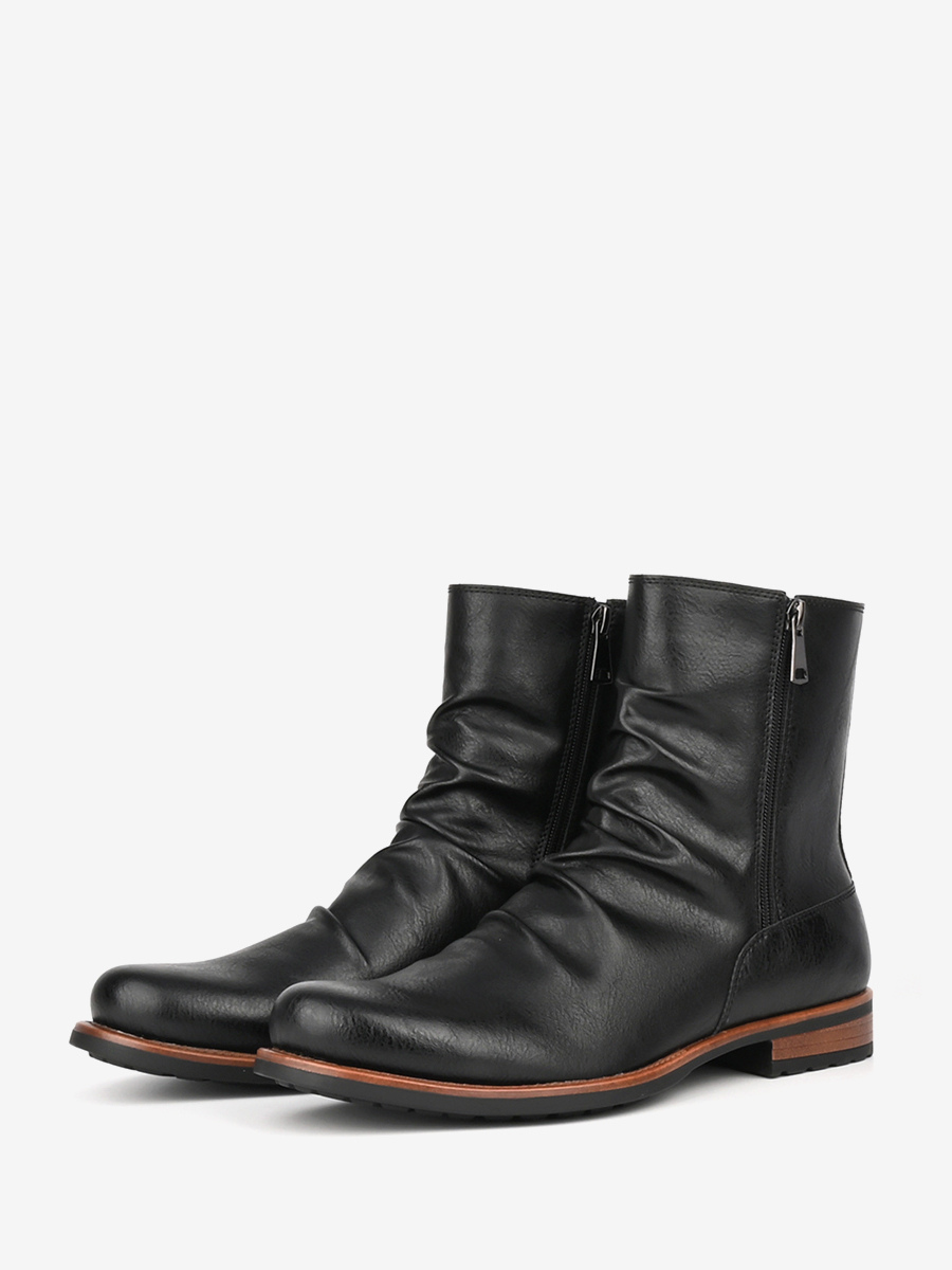 メンズ アンクルブーツ ラウンドトゥ ルーシュ ジップアップ ブーティ