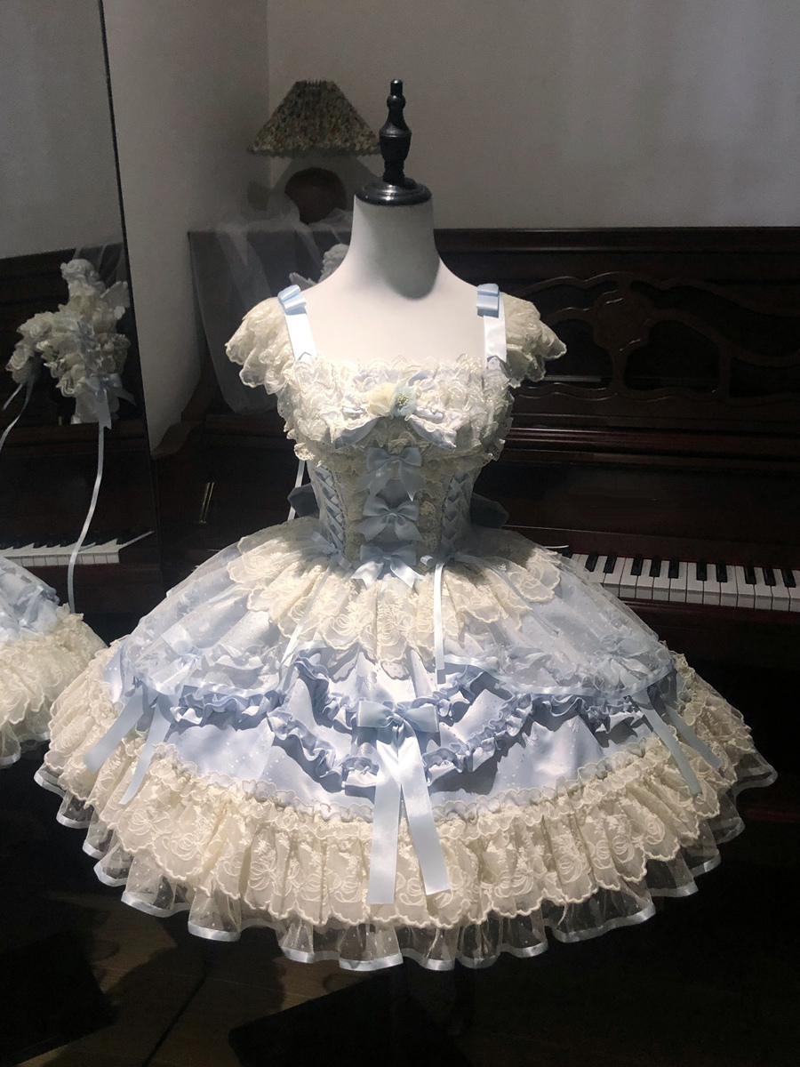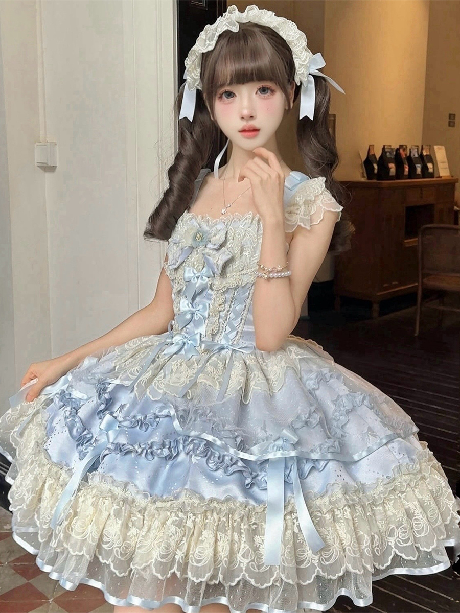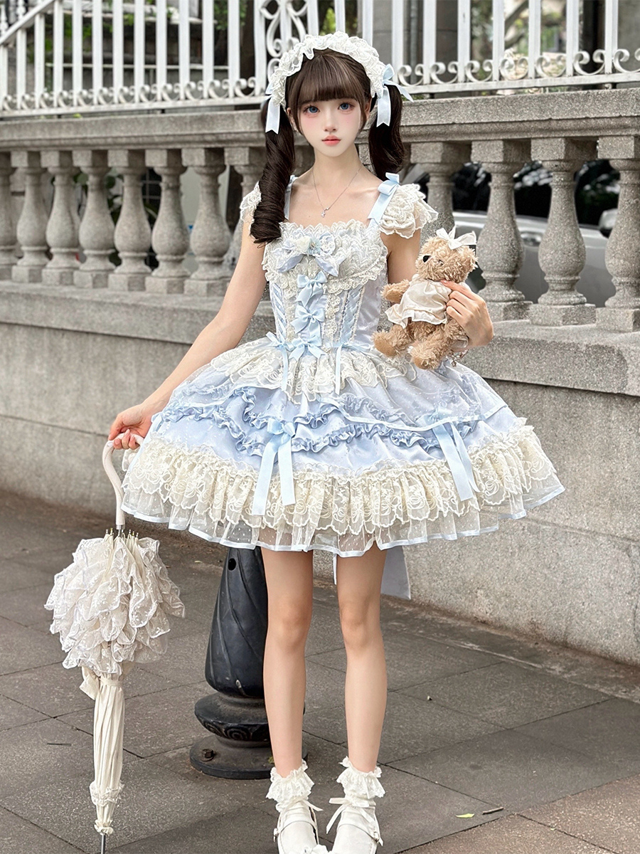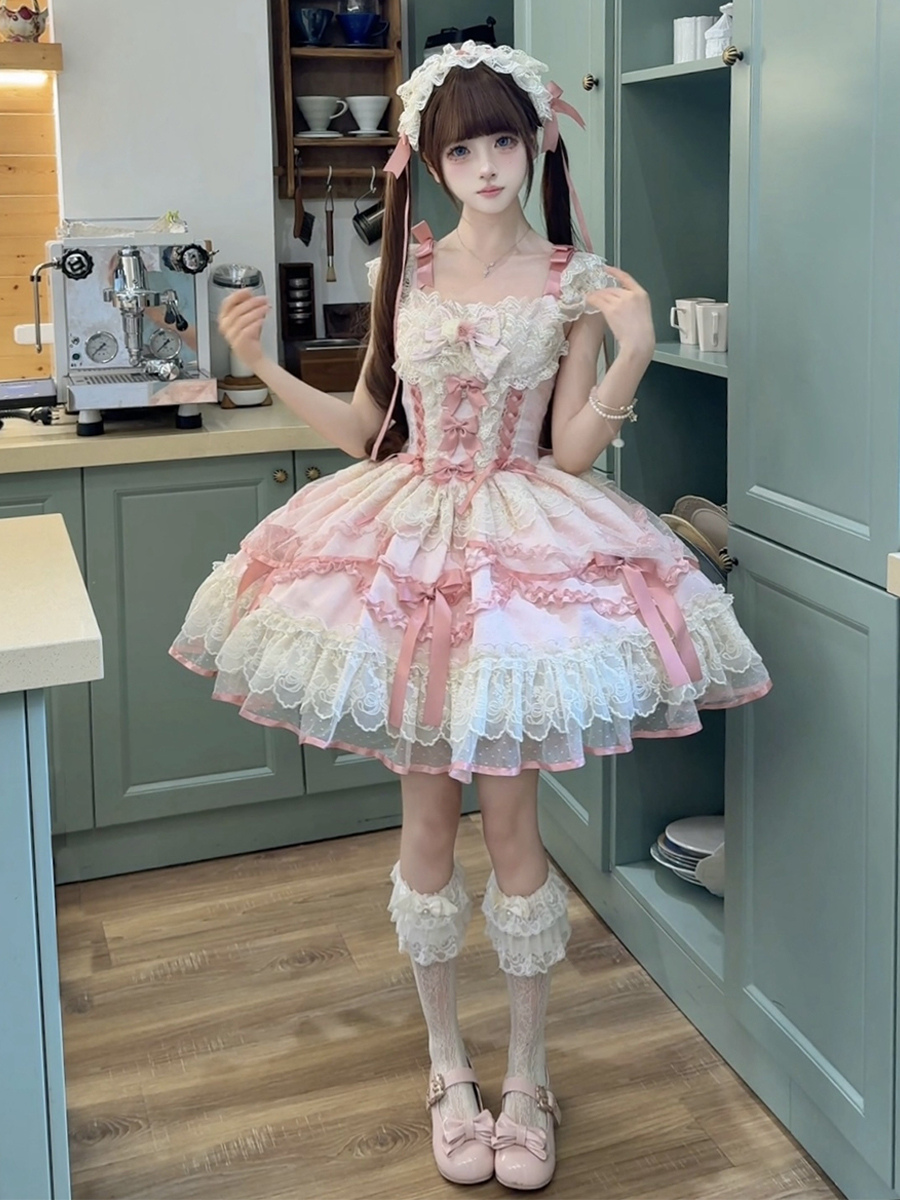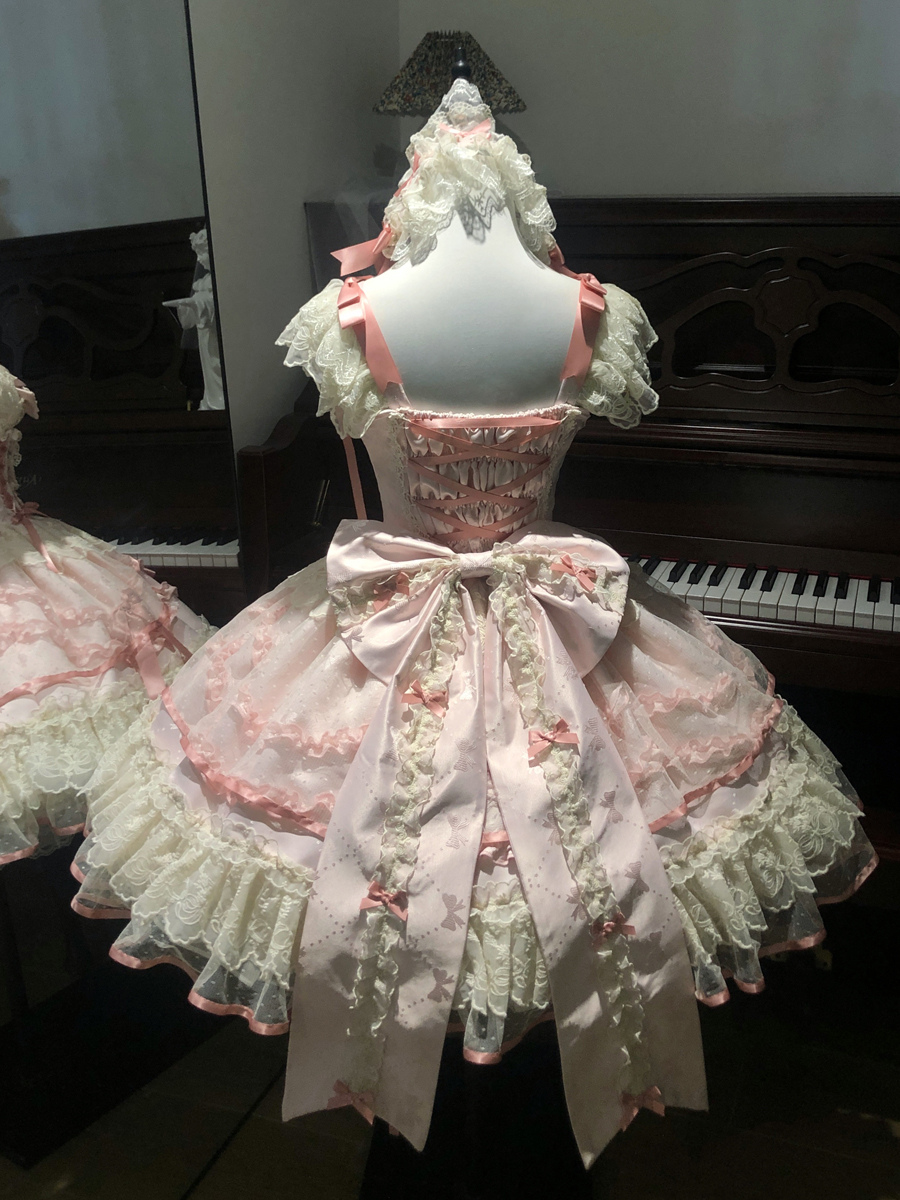 スイートロリータドレス ポリエステル ノースリーブ リボン スイートジャンパースカート ピンク ロリータドレス