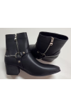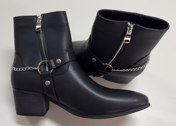ブラックアンクルブーツ メンズ ラウンドトゥ チェーンディテール チャンキーヒール ブーティ