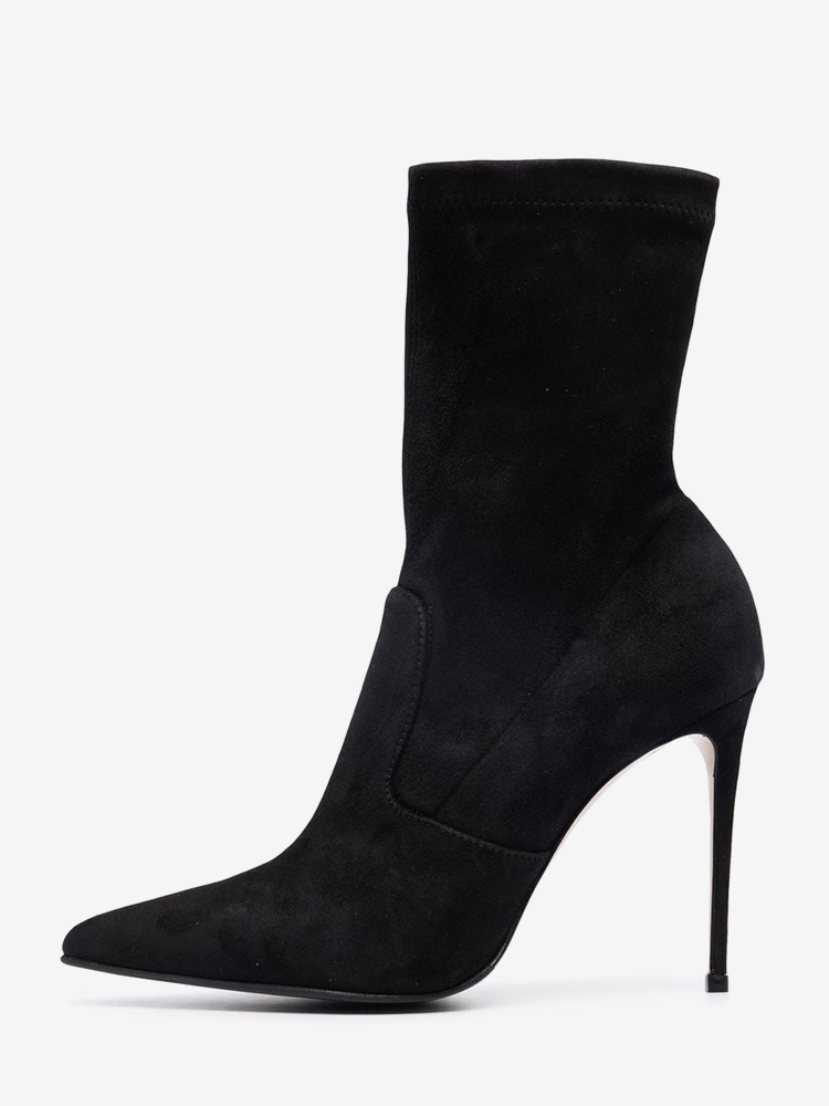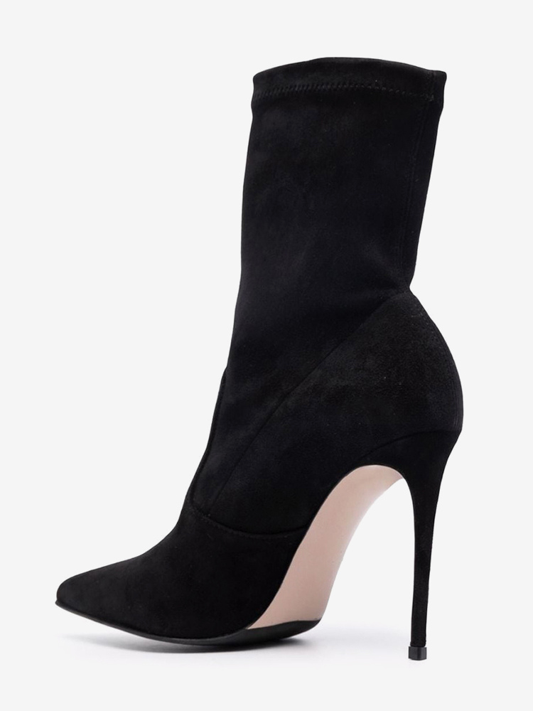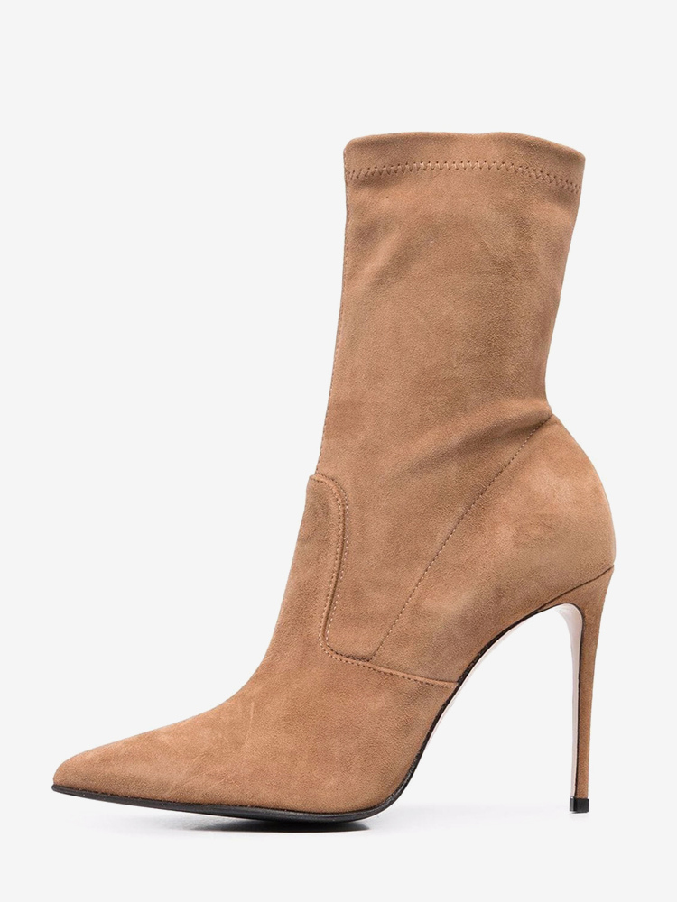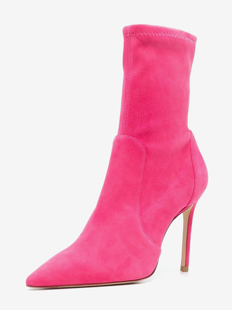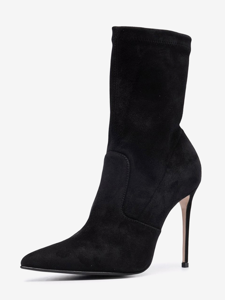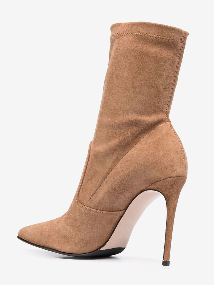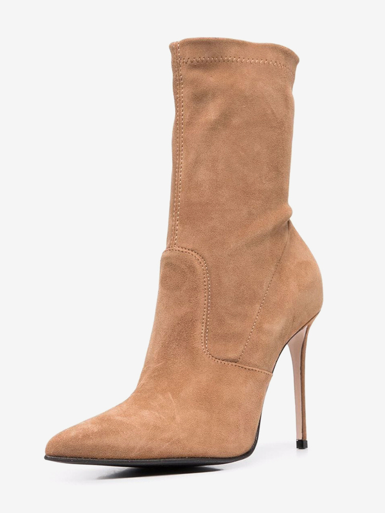 スエードアンクルブーツ レディース ポインテッドトゥ ハイヒール ブーティ