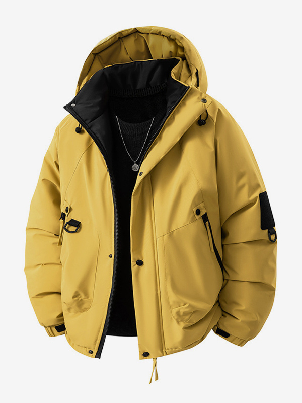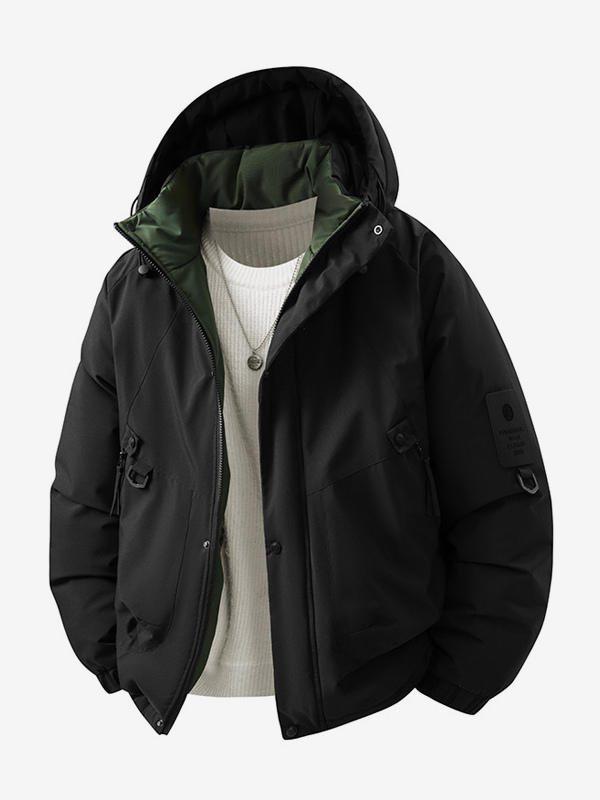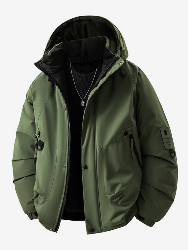 メンズ フード付きジャケット 長袖 パッチワーク 冬コート