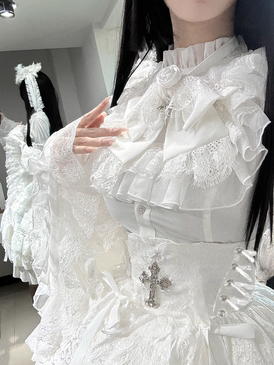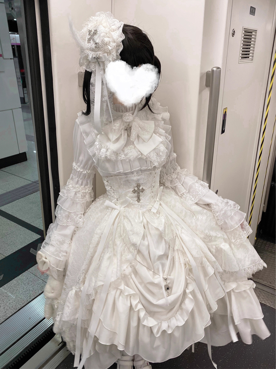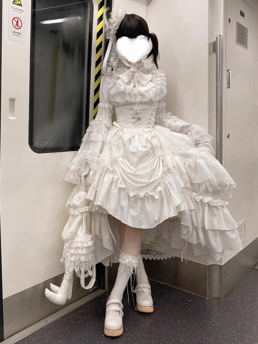 ブラック ゴシック ロリータ ドレス レースアップ ロングスリーブ フリル ゴシック ロリータ ドレス セット