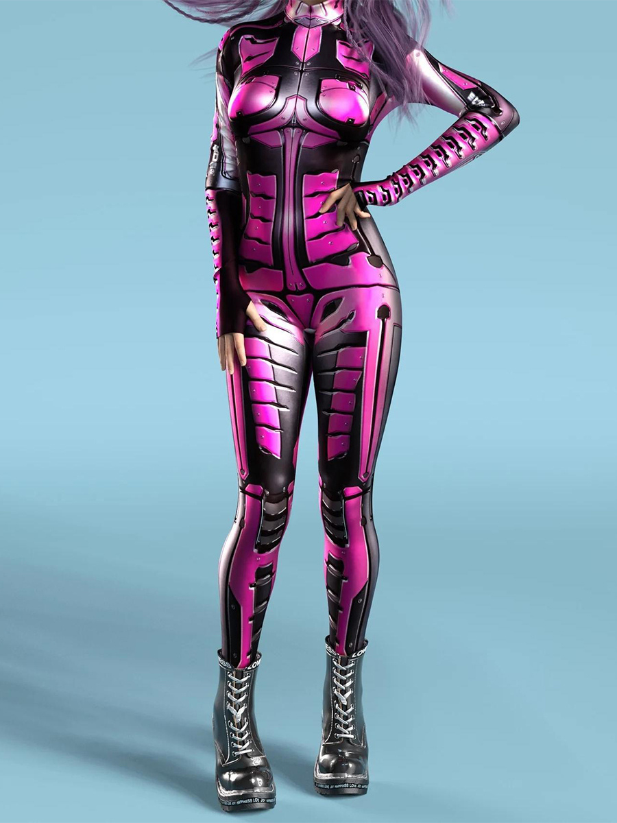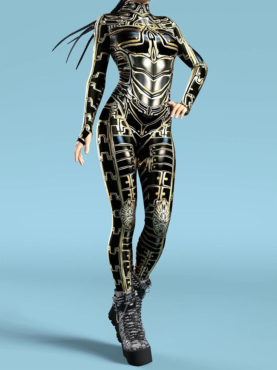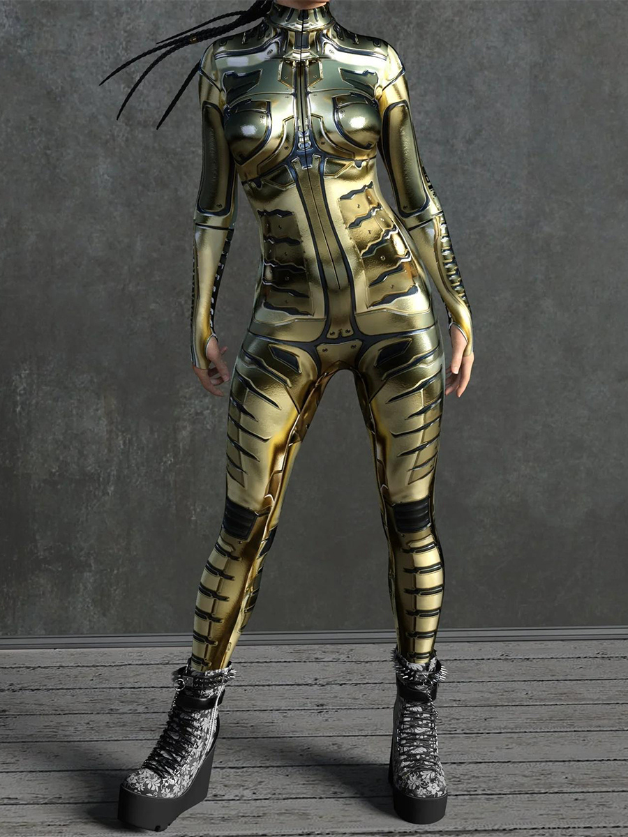 サイバーパンク ゼンタイ レディース ロボット 3Dプリント メタリック レディース ゼンタイ キャットスーツ