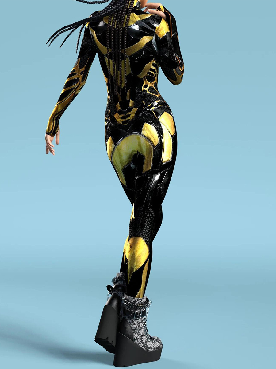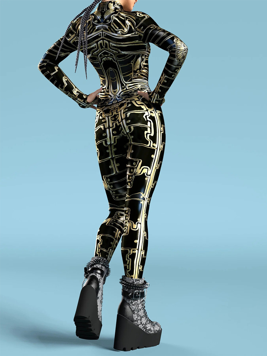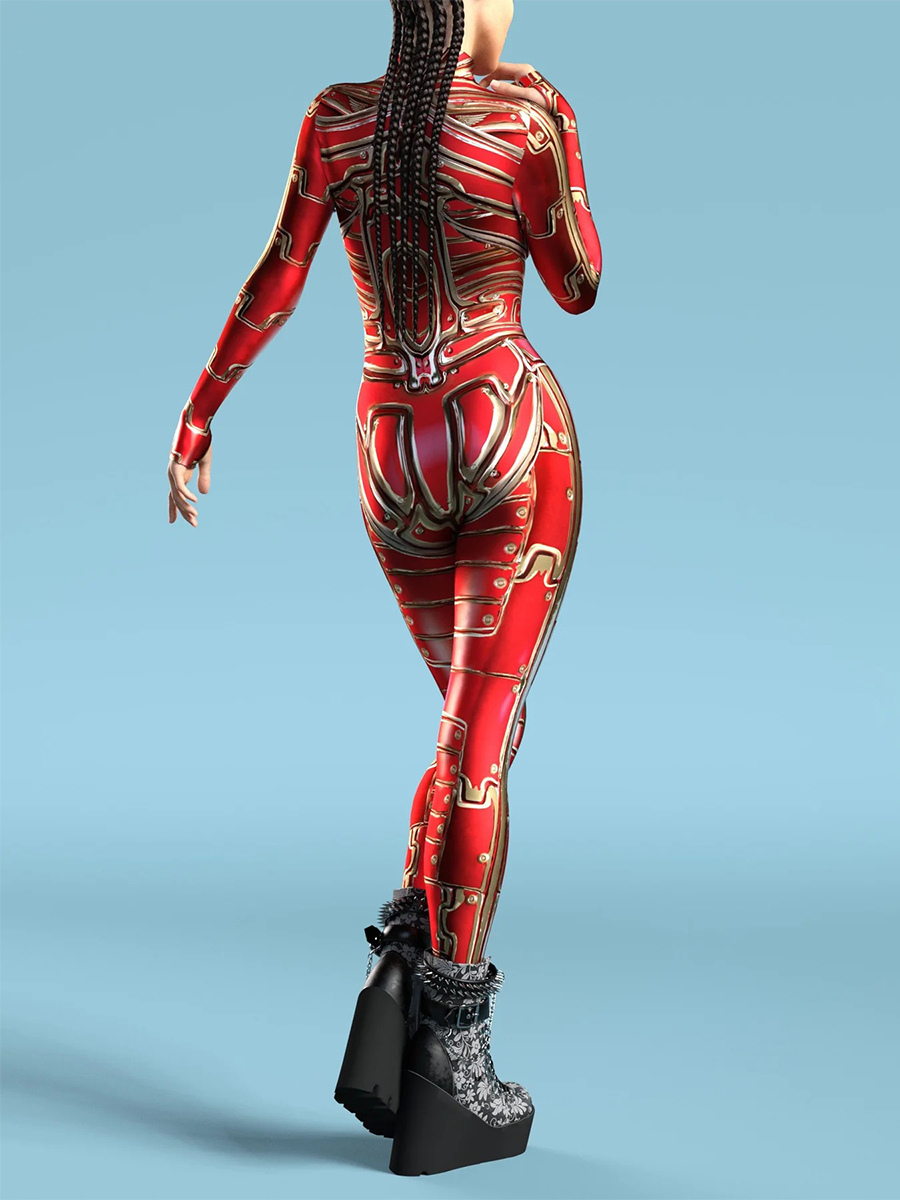 サイバーパンク ゼンタイ レディース ロボット 3Dプリント メタリック レディース ゼンタイ キャットスーツ