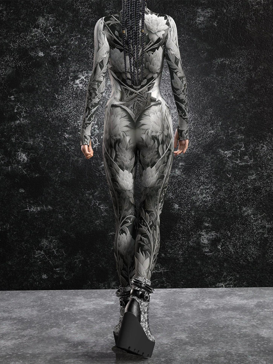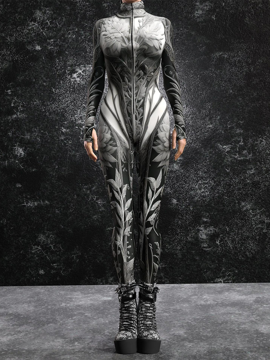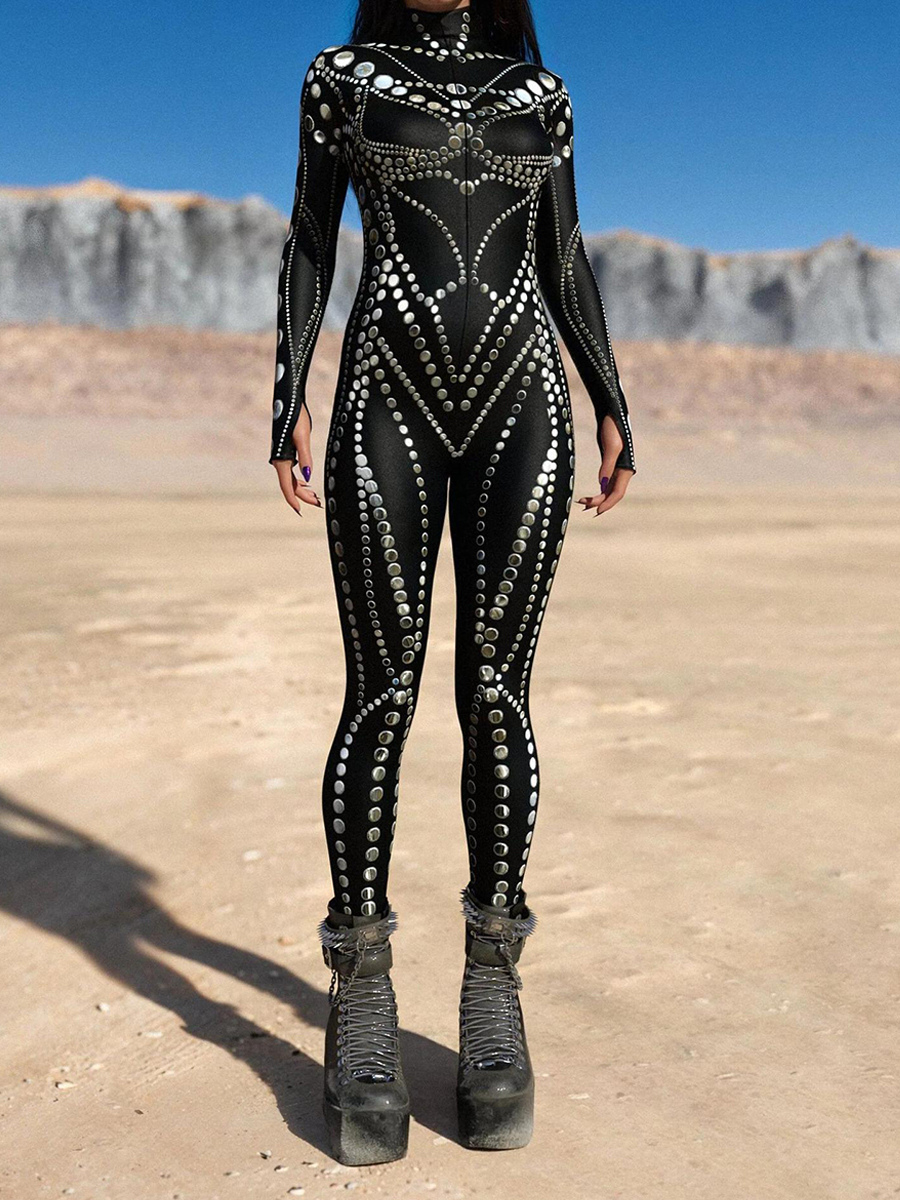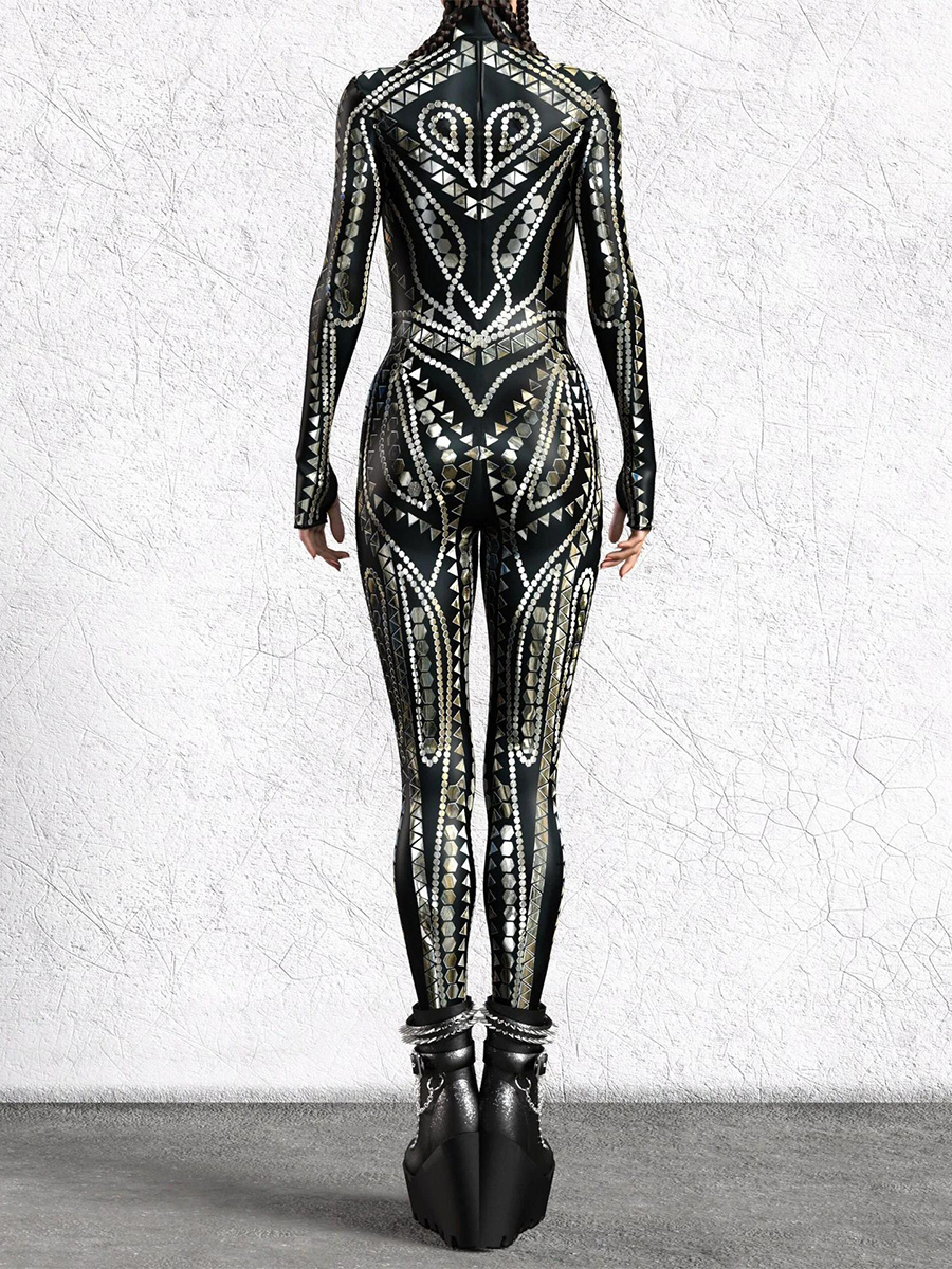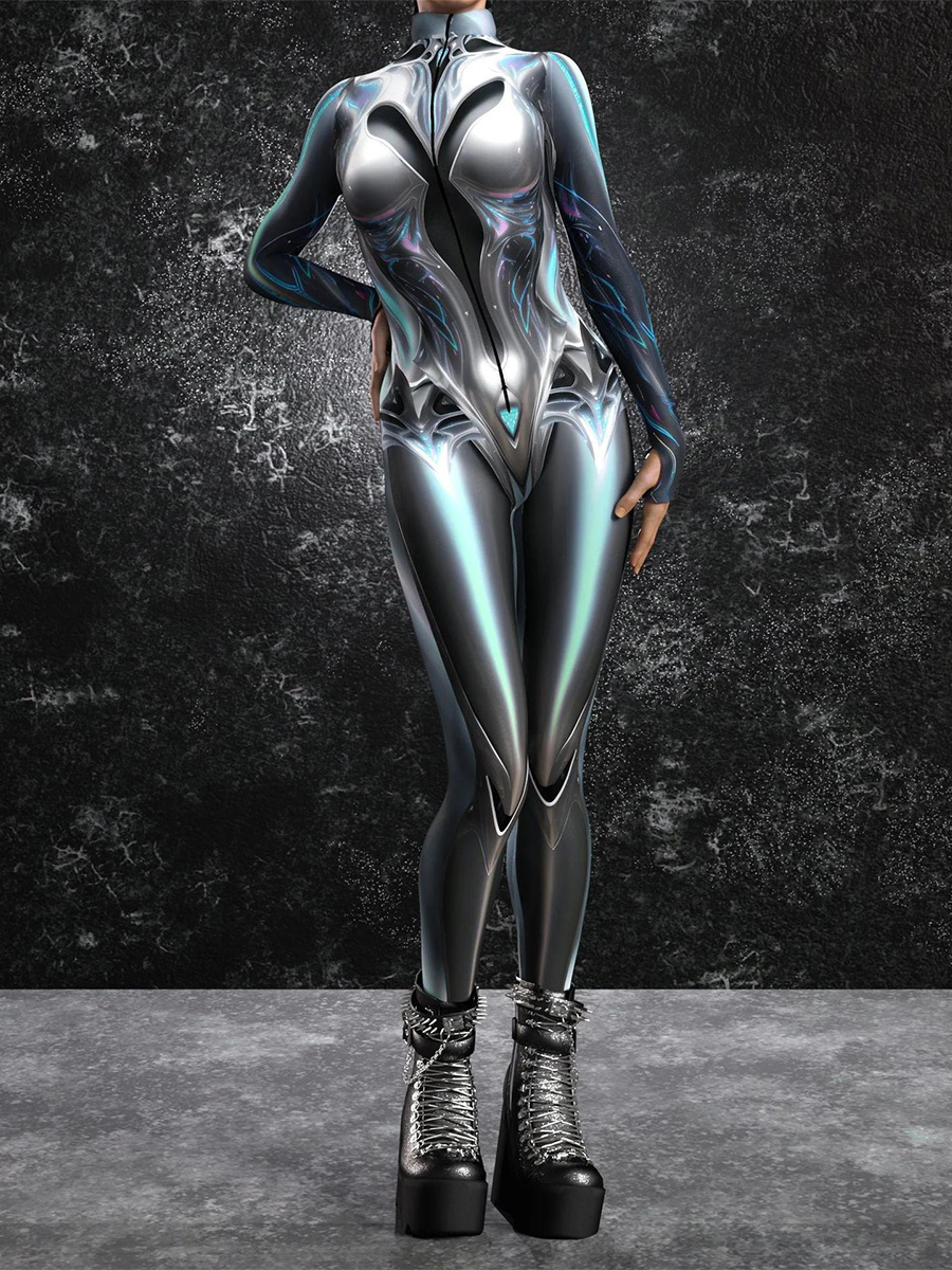 レディース サイバーパンク ゼンタイ ボディスーツ バーニングマン フューチャリスティック エクソスーツ 長袖 キャットスーツ