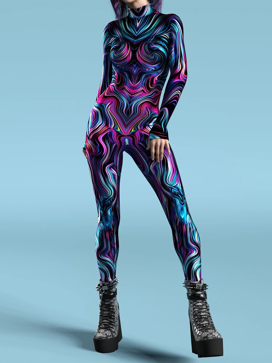 セクシーなサイバーパンクレディースゼンタイ3D解剖学的ジャンプスーツヴェネツィアカーニバルスキンスーツ