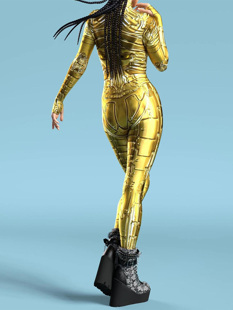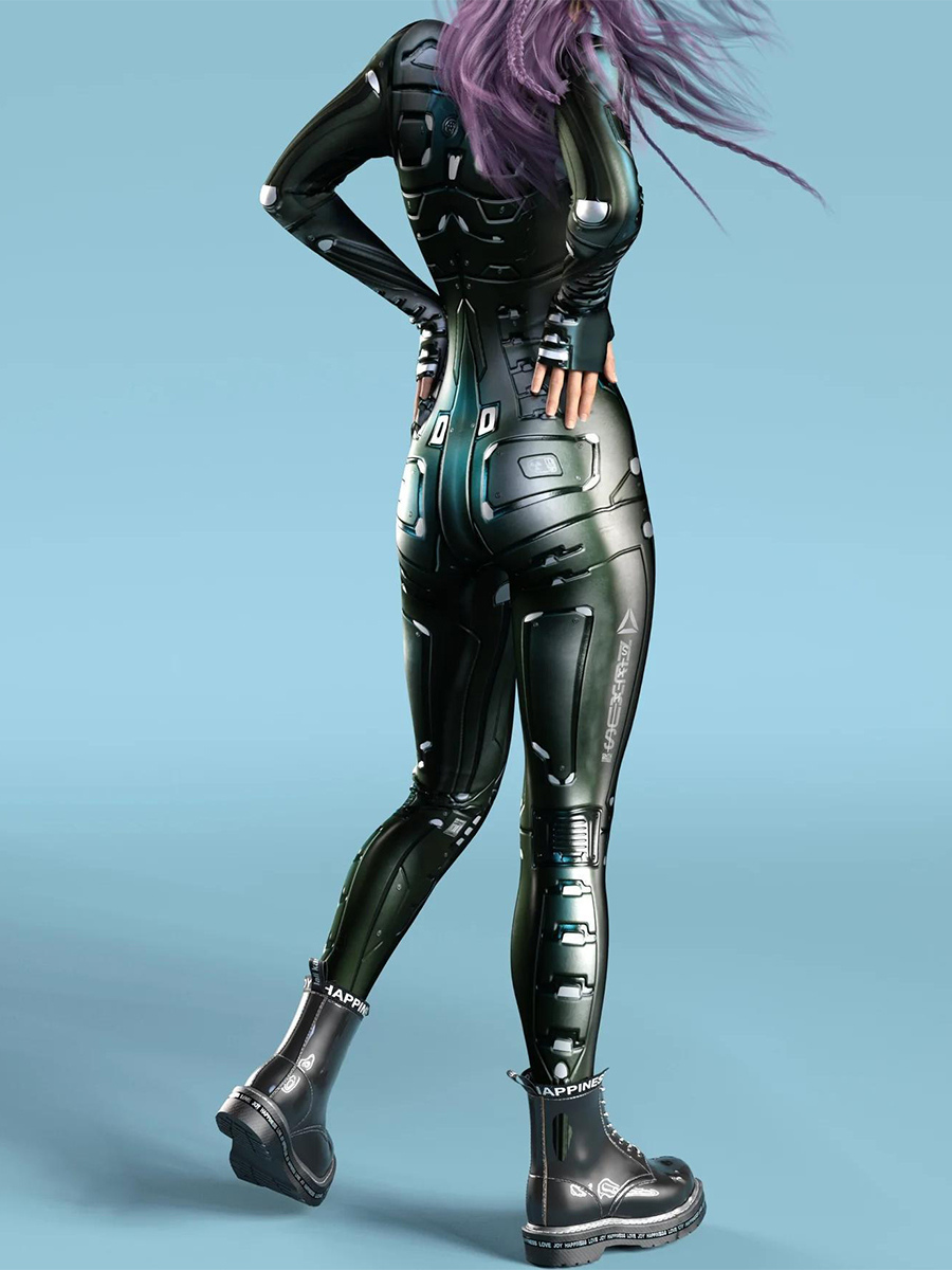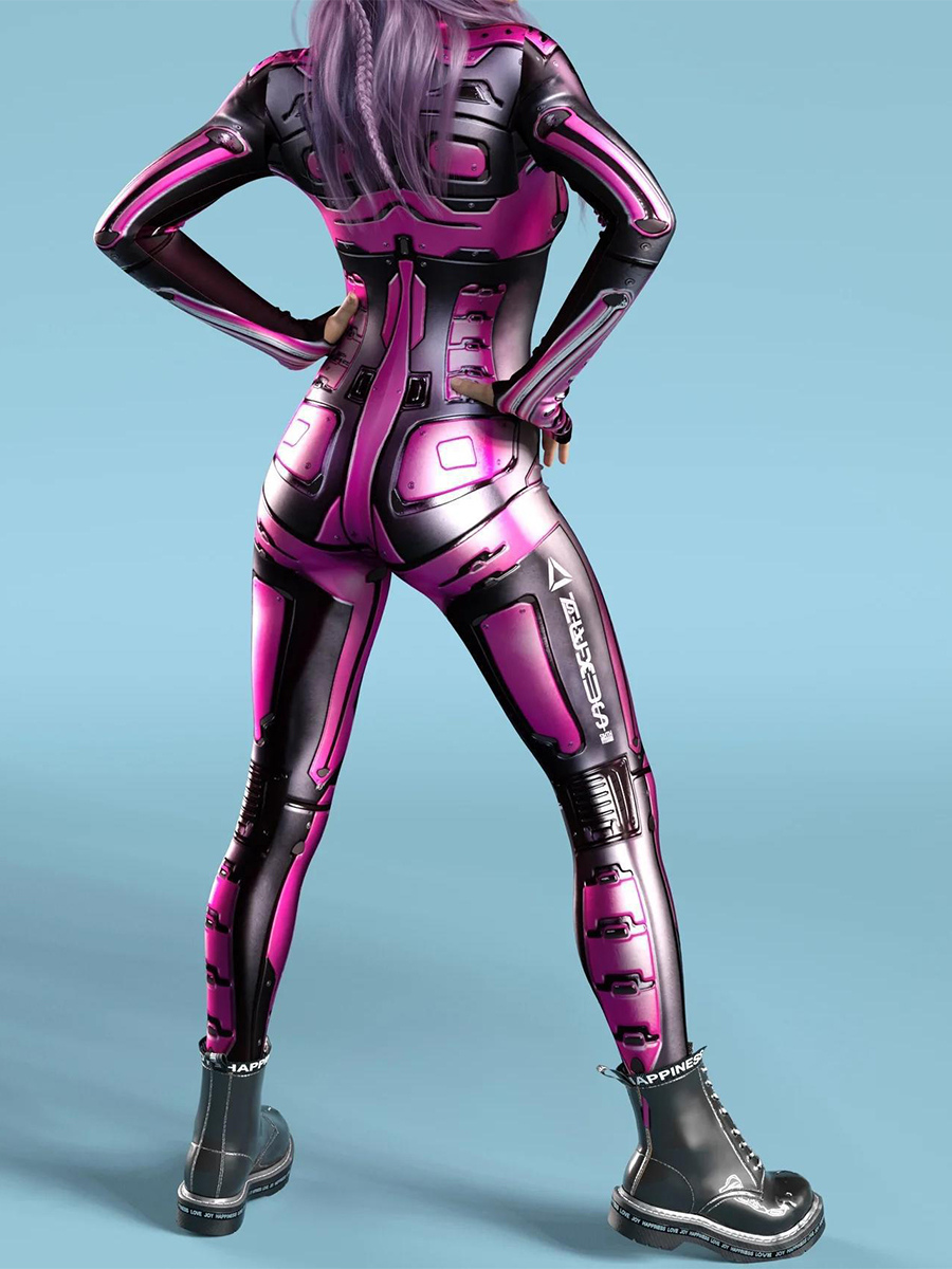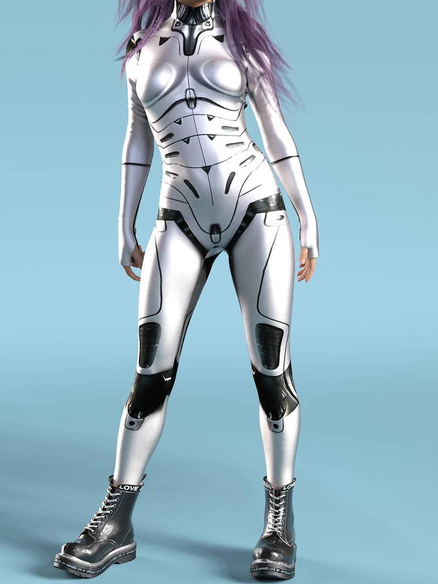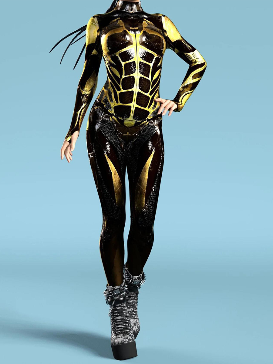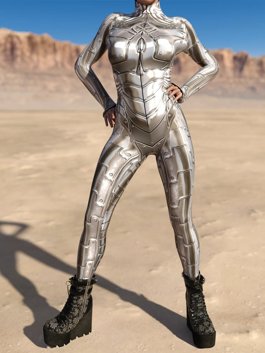 セクシーなレディースボディスーツ サイバーパンク 錯視ロボットプリント メタリック ゼンタイ コスチューム