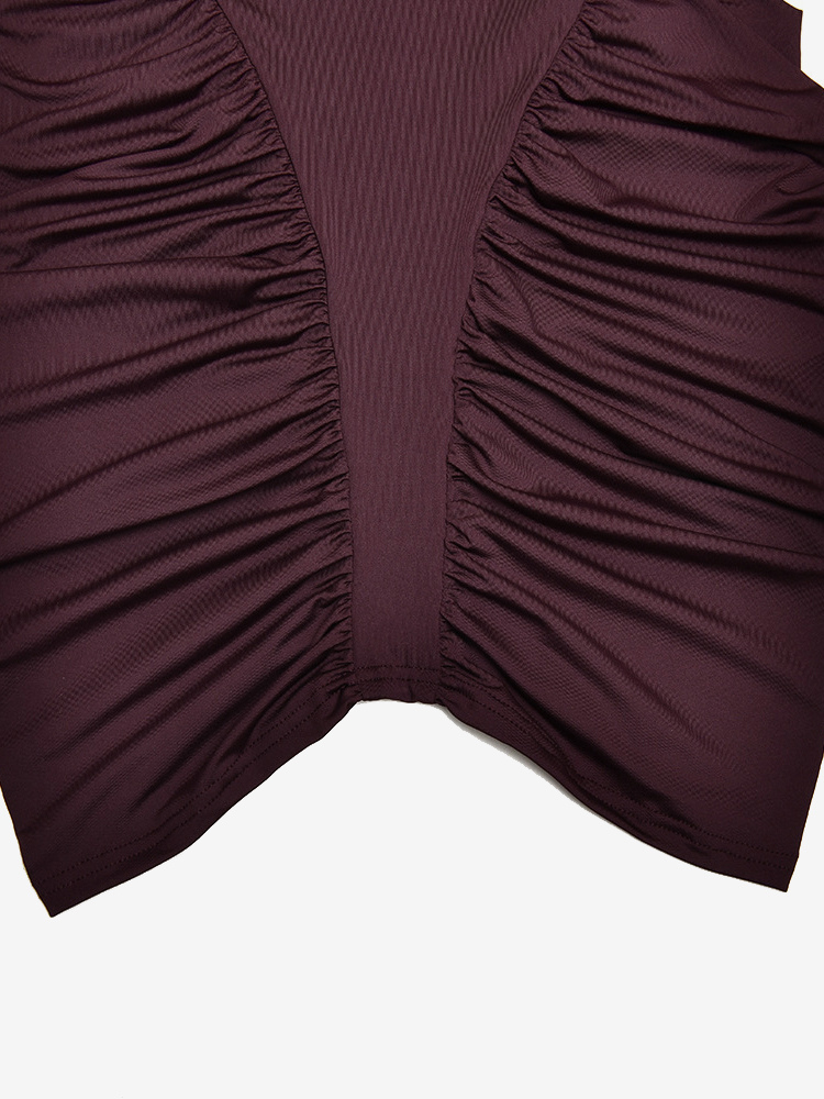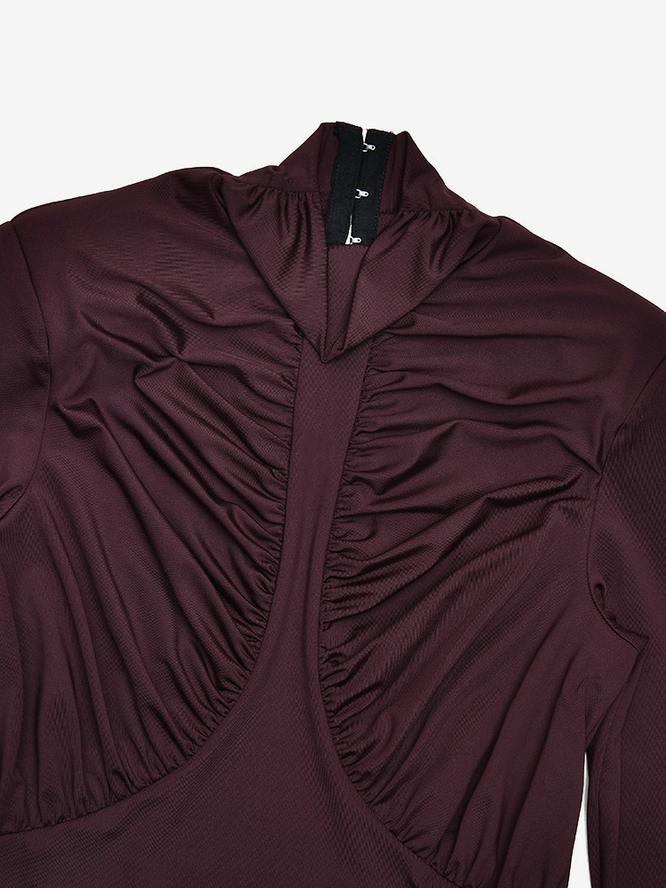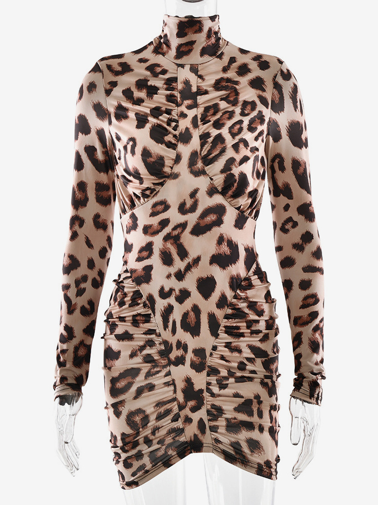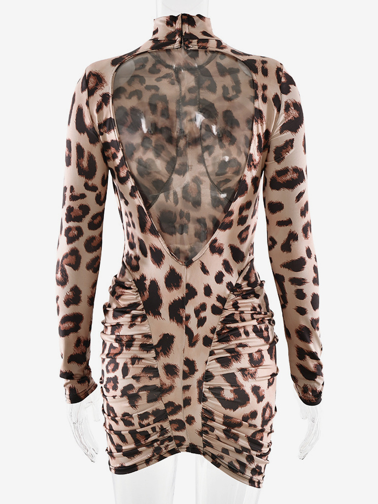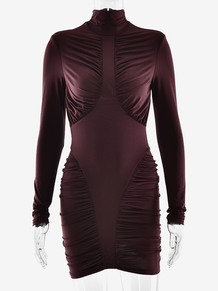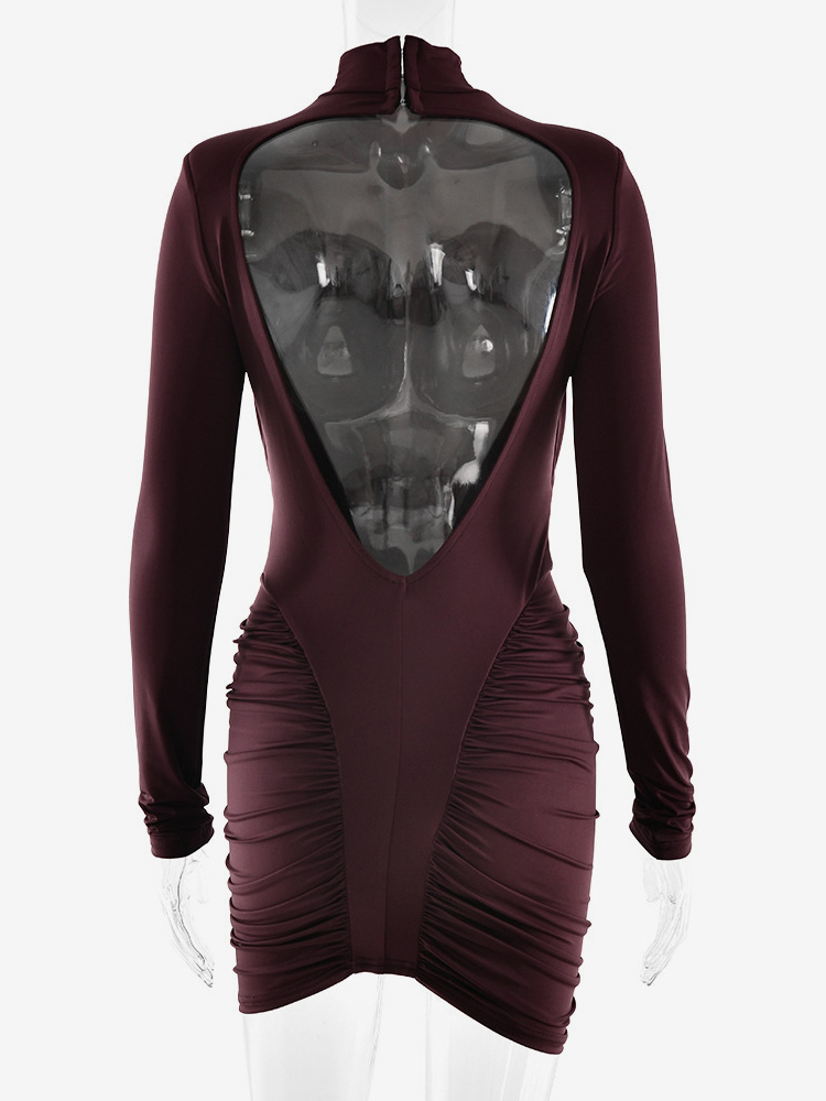 モダンなハイネックルーシュボディコンバックレスミニドレス(レディース 2026年)