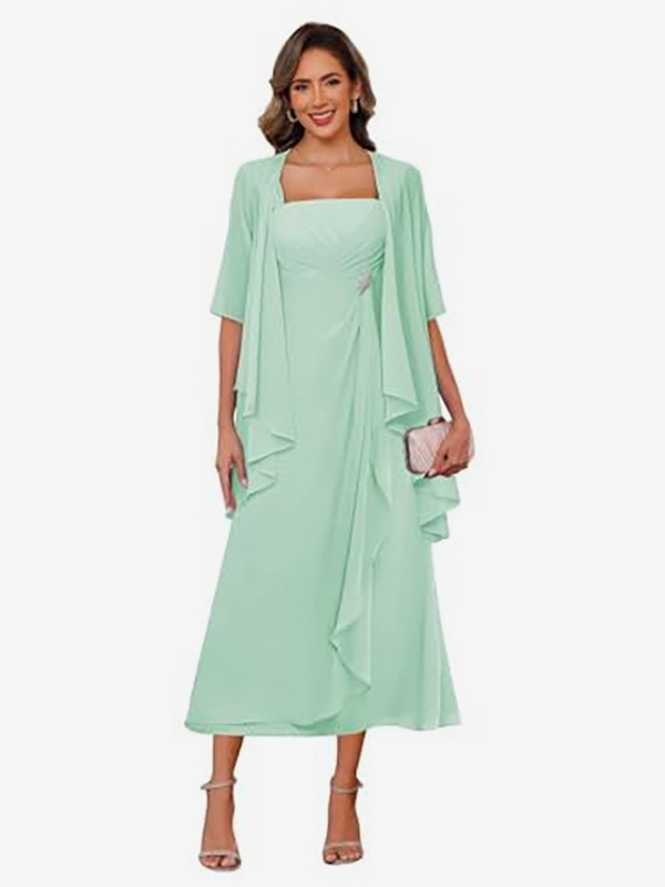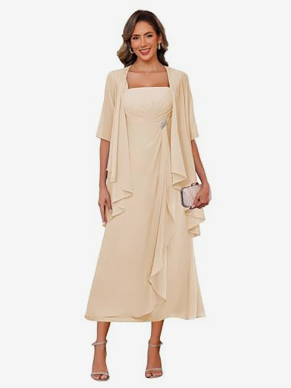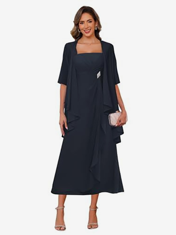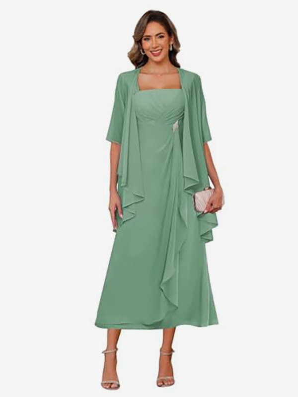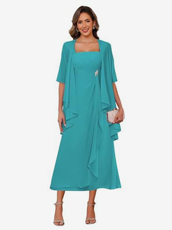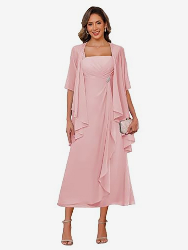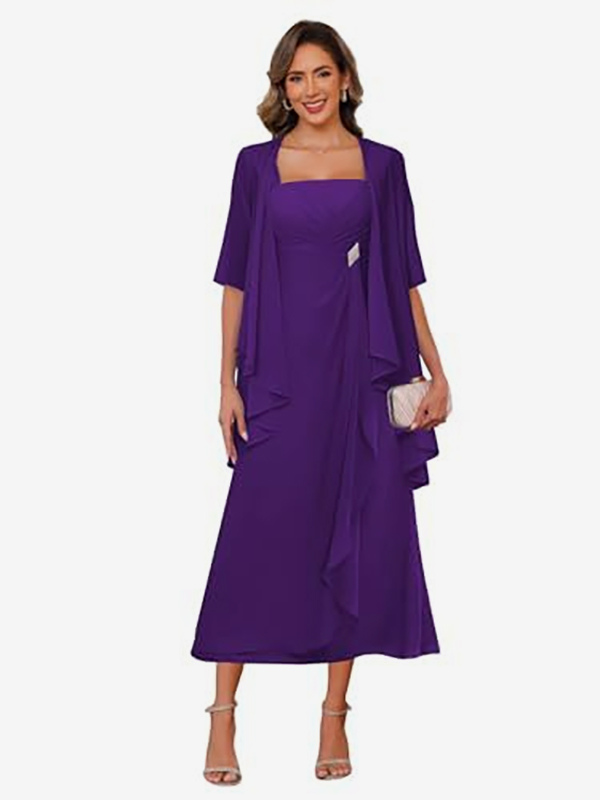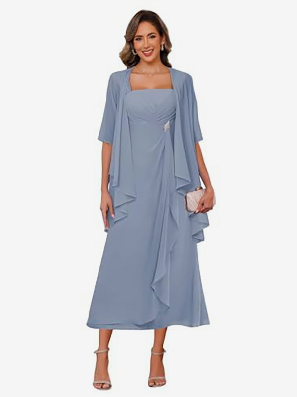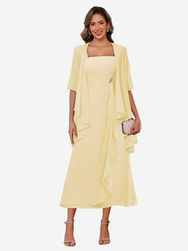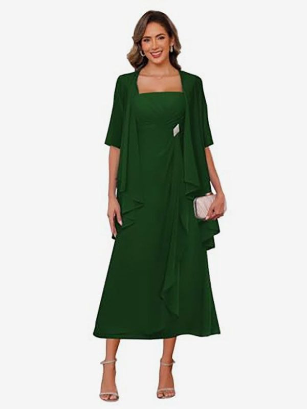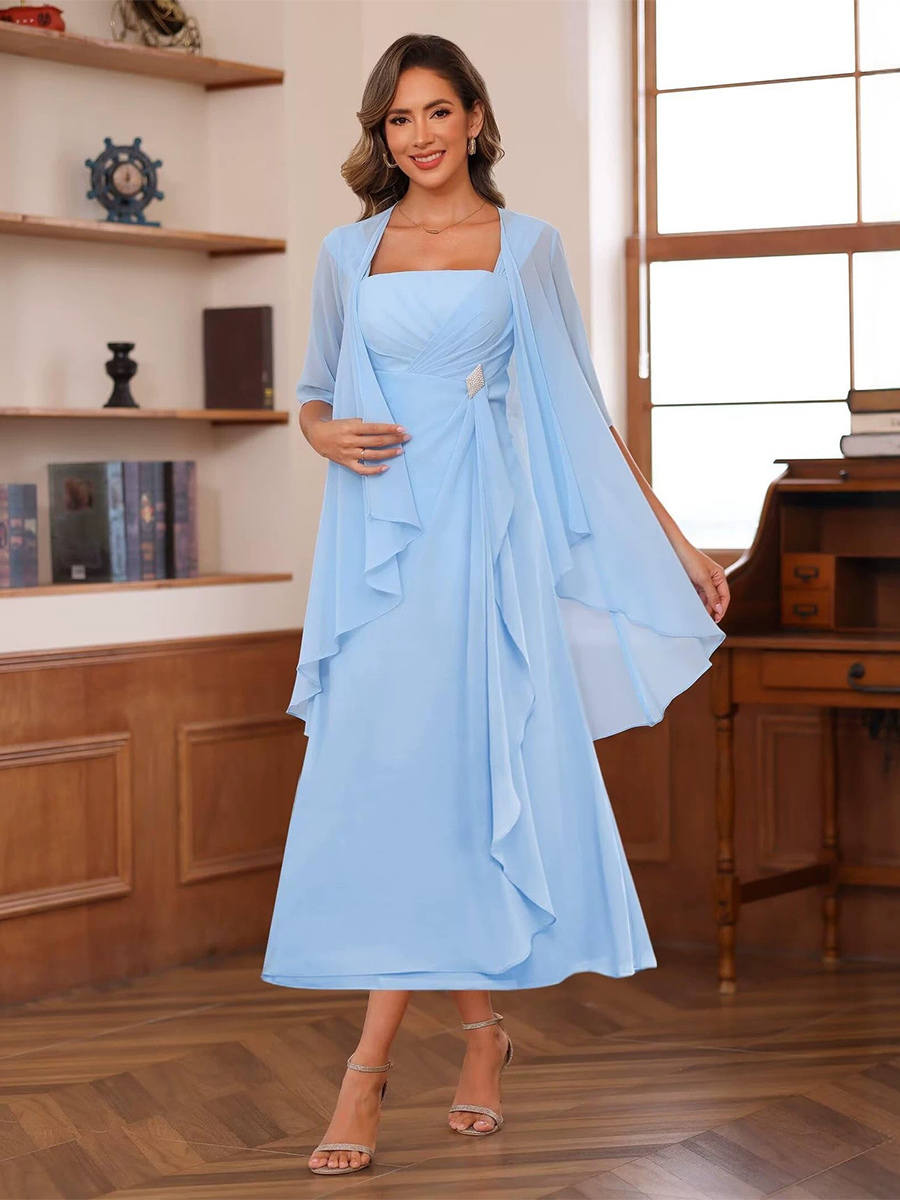 ブライダルマザードレス スクエアネック ハーフスリーブ ツーピース プリーツゲストドレス 結婚式用