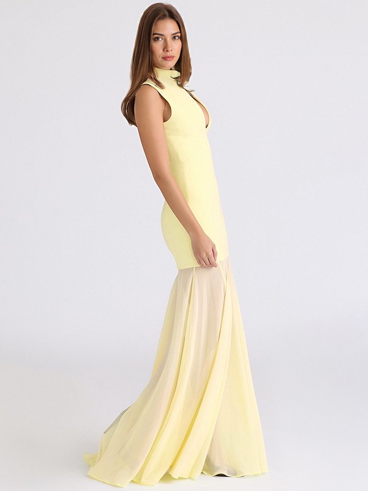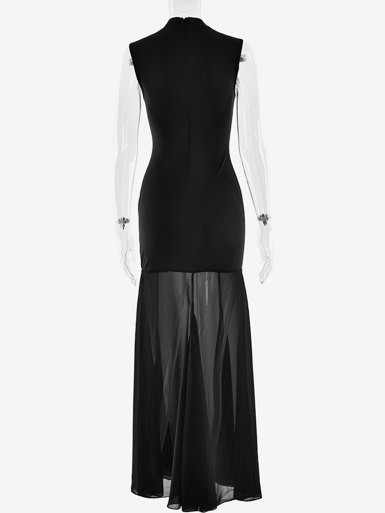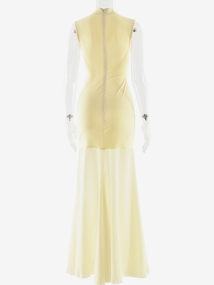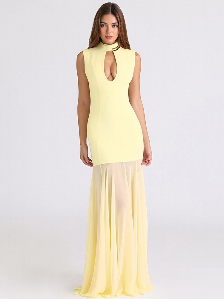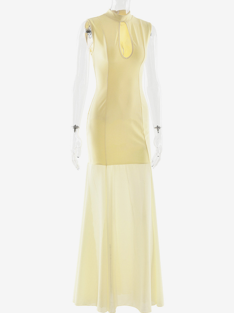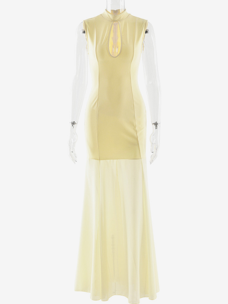 エレガントなキーホールカットアウトハイネックマーメイドマキシドレス(レディース)2026
