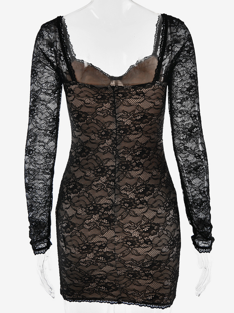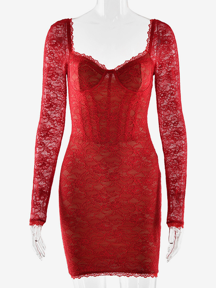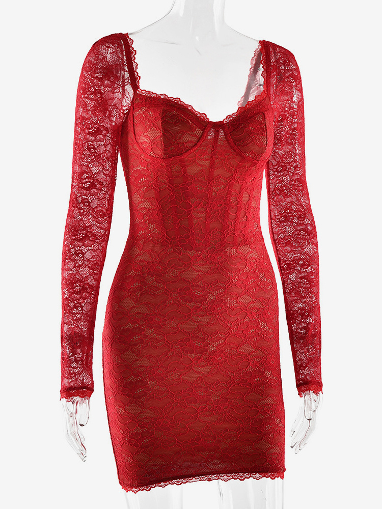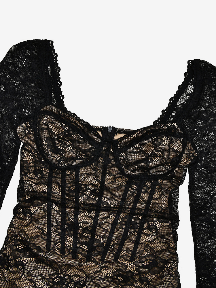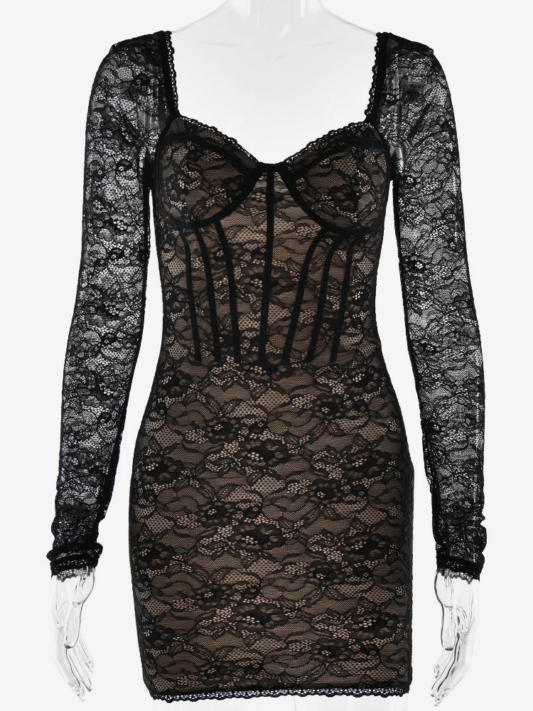 フローラルレース ロングスリーブ コルセット ミニ ボディコン パーティードレス レディース 2026
