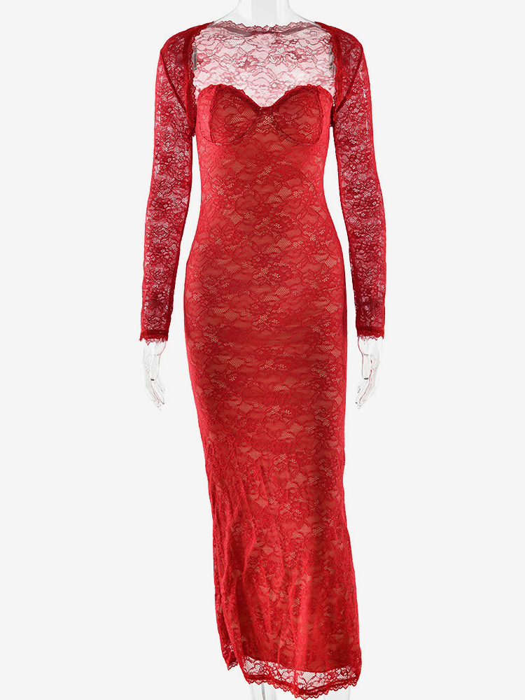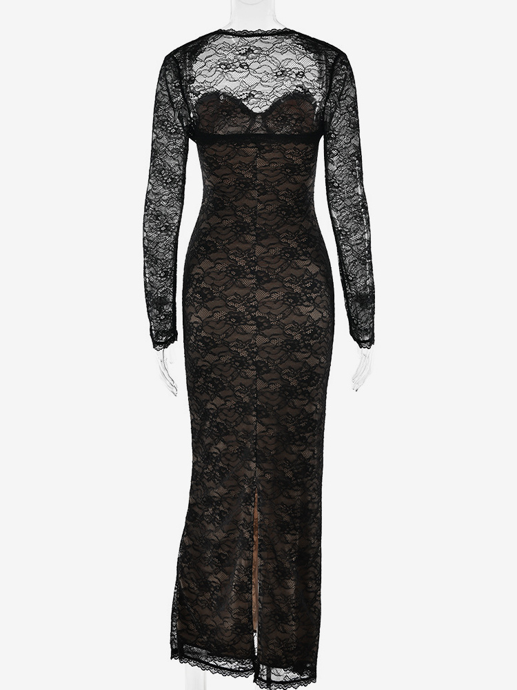 エレガントなブラックフローラルレースシュラッグマキシドレスボディコンイブニングドレス(レディース用)2026