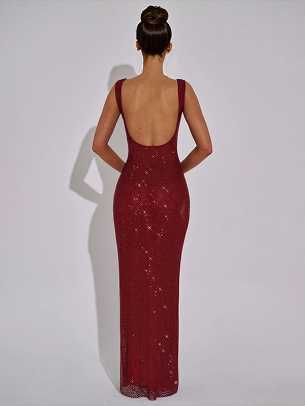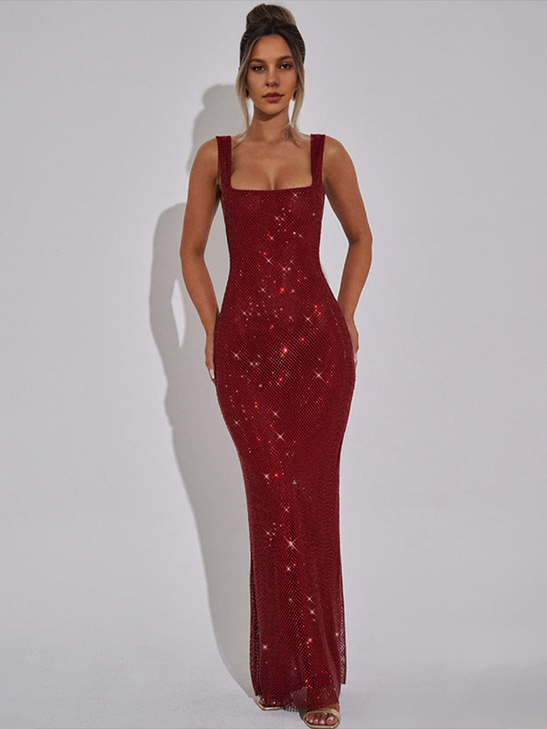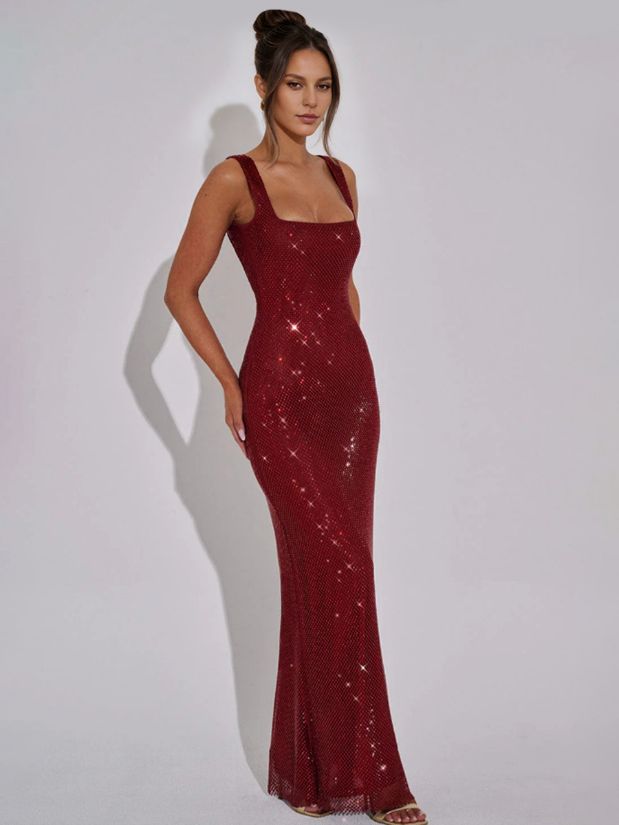 グラマラスな輝きを放つスクエアネックボディコンマーメイドマキシドレス(レディース)2026