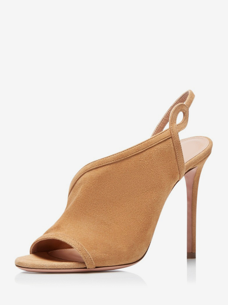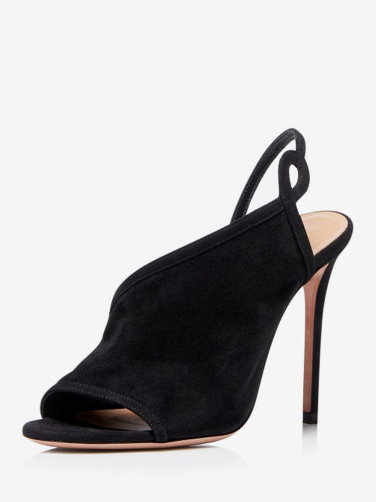 ハイヒールサンダル スエード オープントゥ スティレットヒール サンダル シューズ