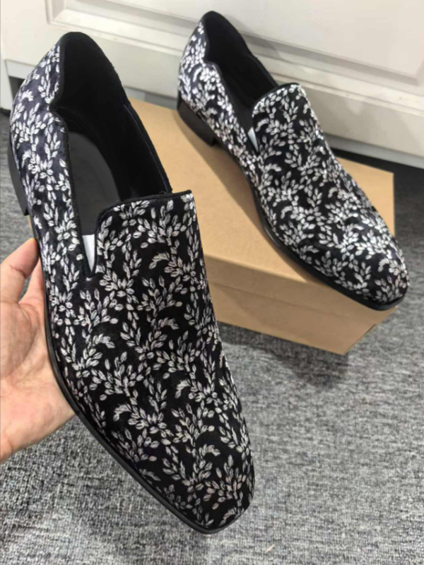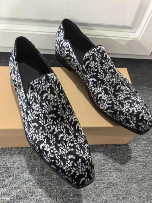 メンズ プロムローファー スクエアトゥ スリップオン ドレス パーティーシューズ