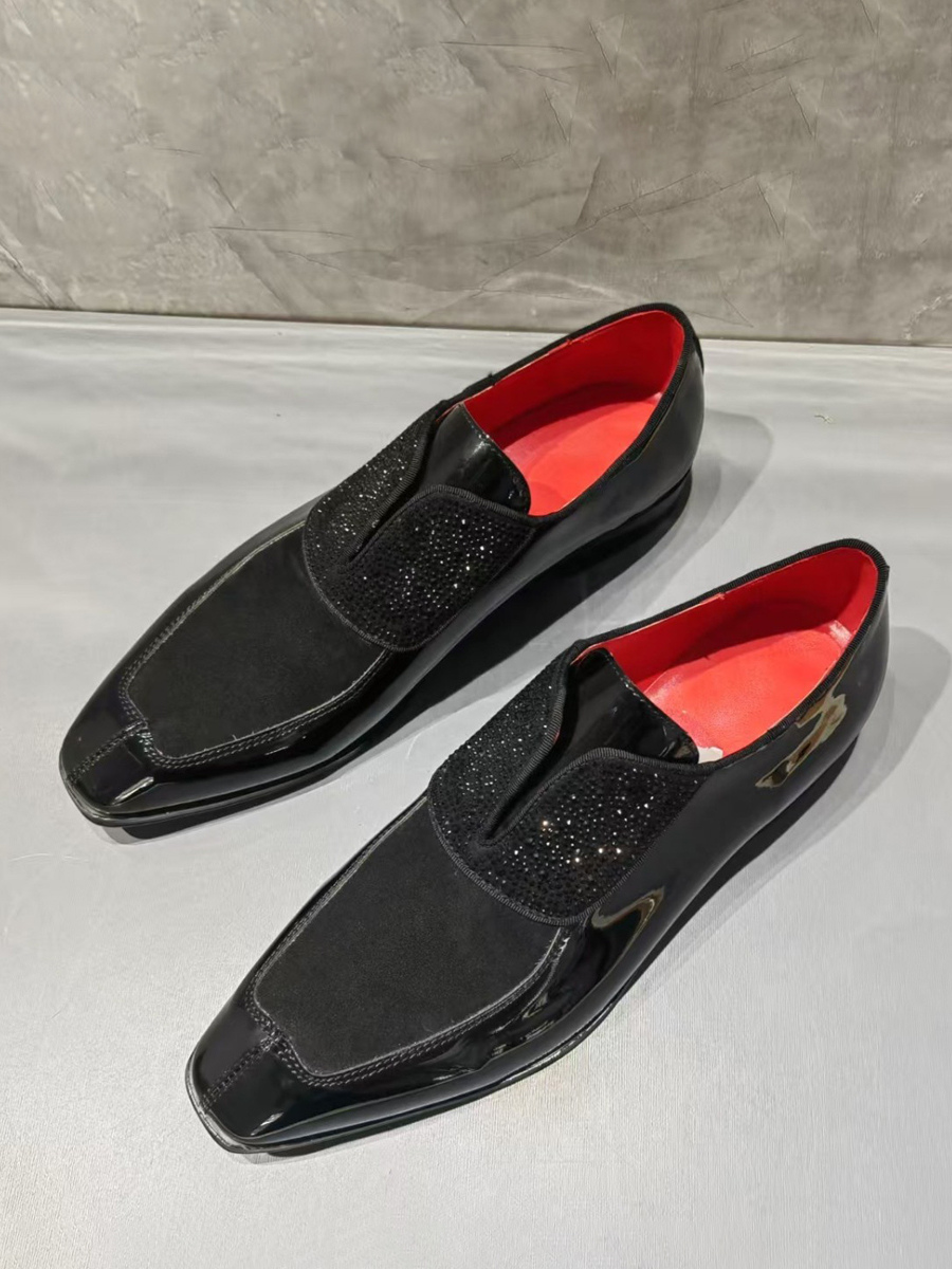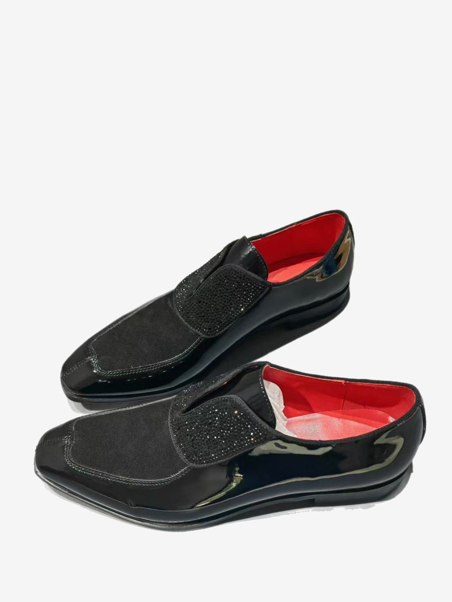 メンズドレスシューズ スクエアトゥ スリッポン プロム ウェディングシューズ