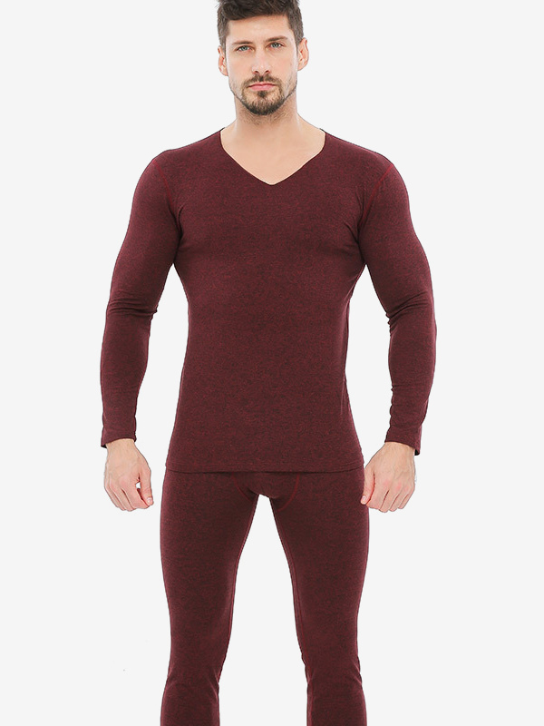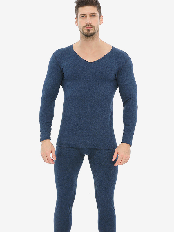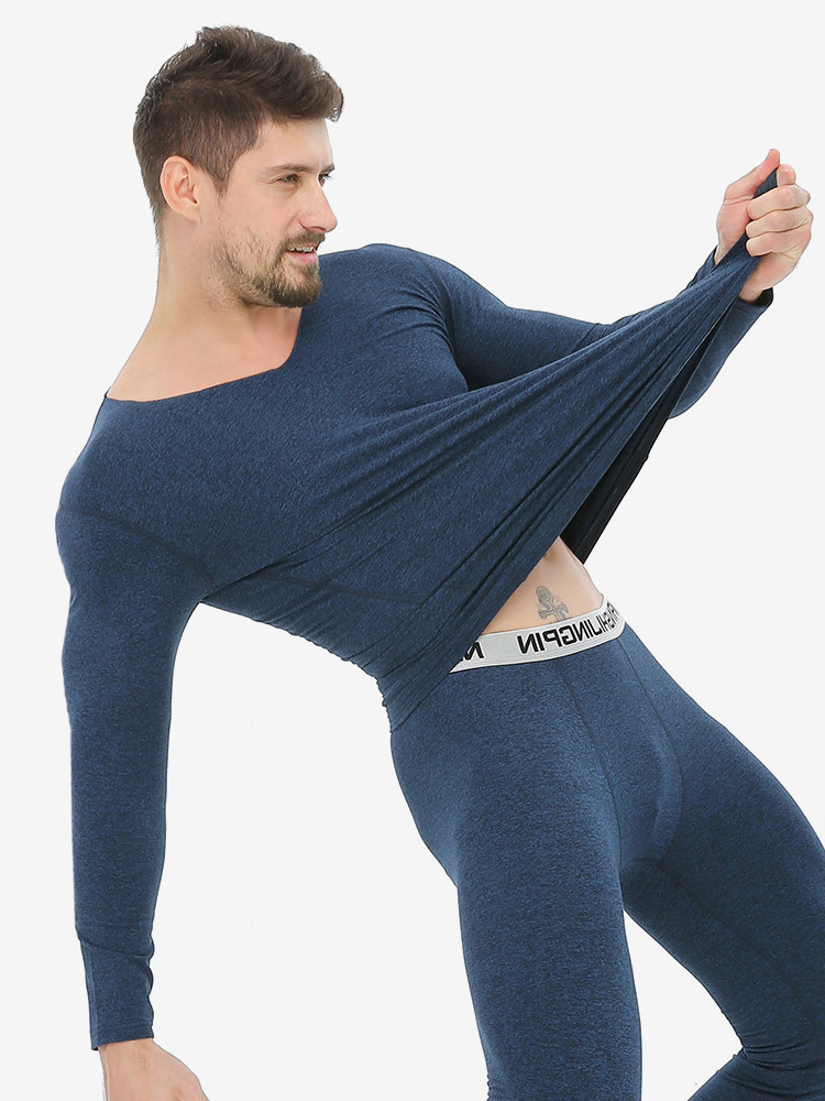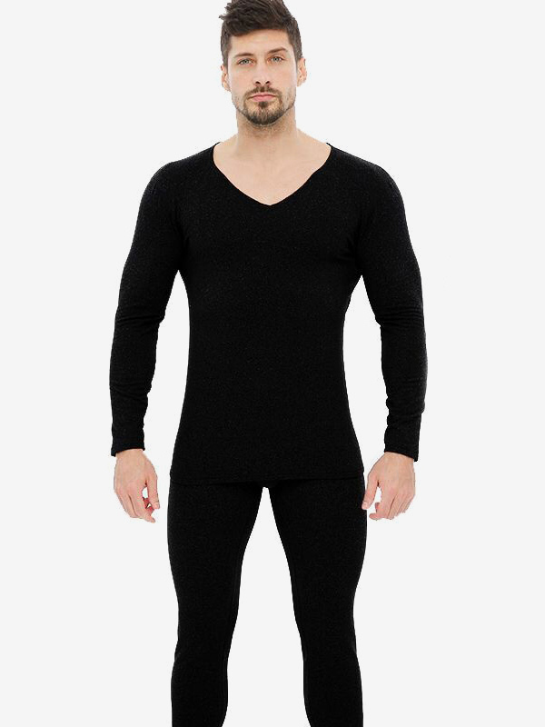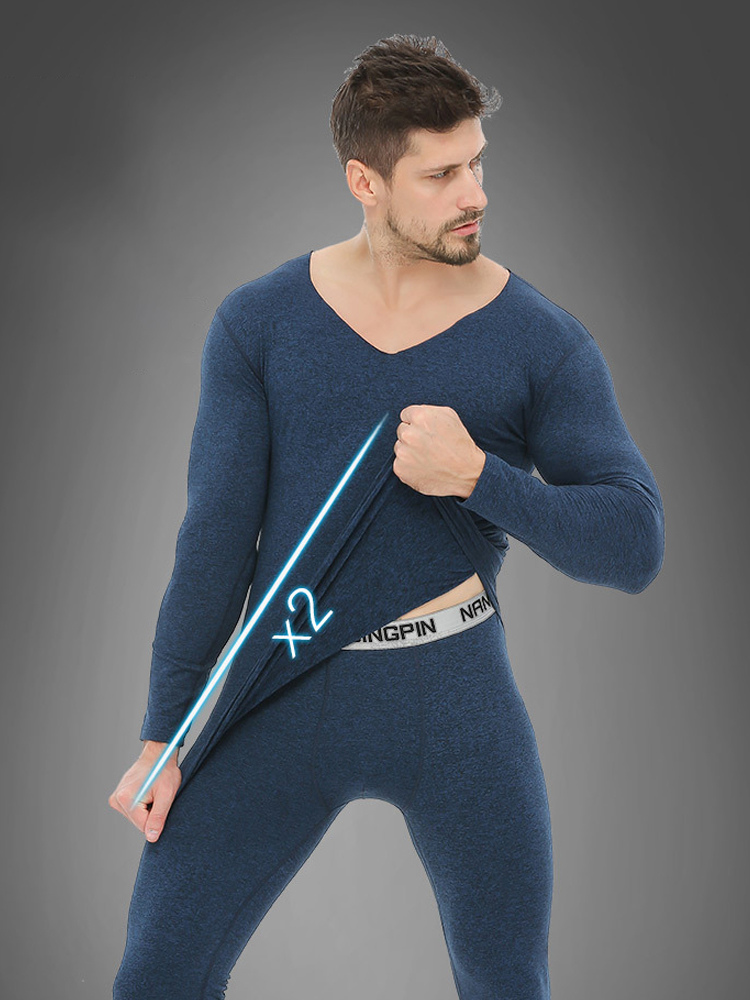 ユニセックス 下着セット フリース裏地 スリムフィット Vネック シームレス 上下