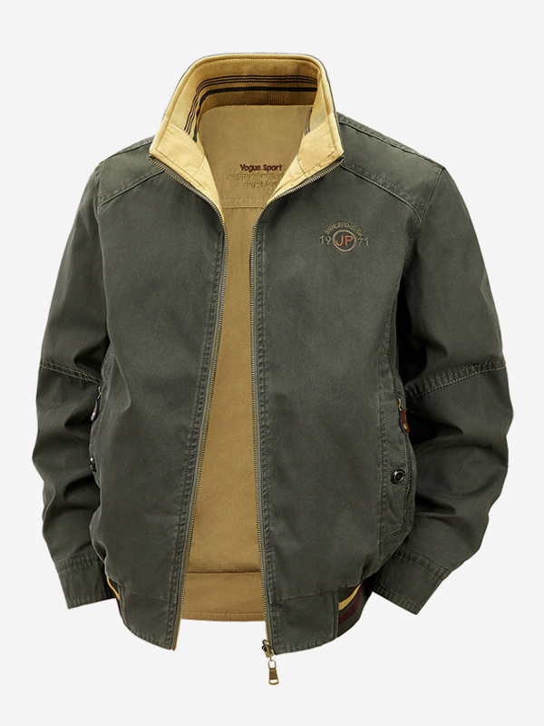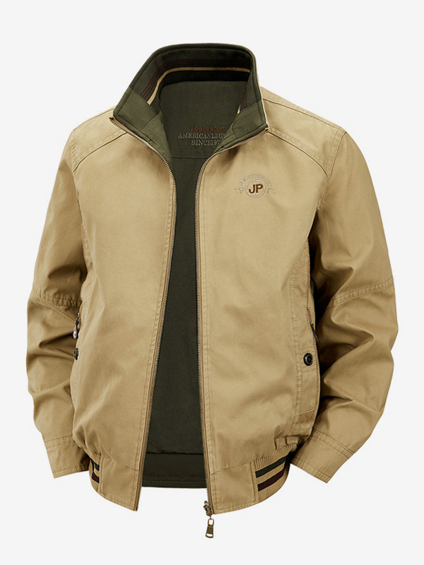 メンズコットンジャケット スタンドカラー カジュアル ワークウェア 耐久性 マルチポケット アウターウェア