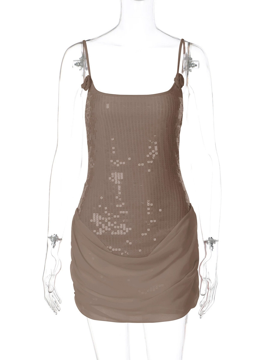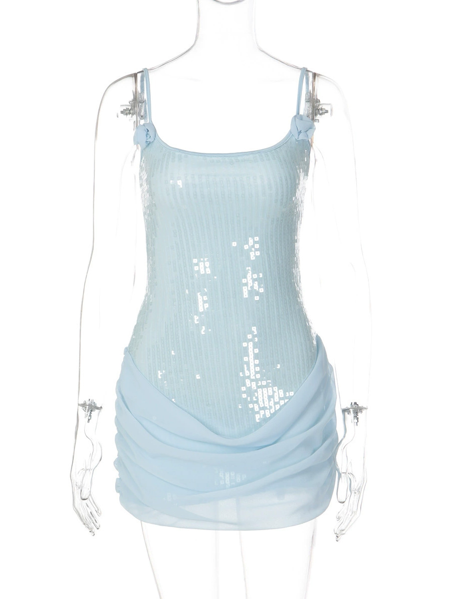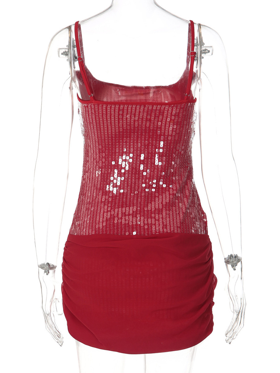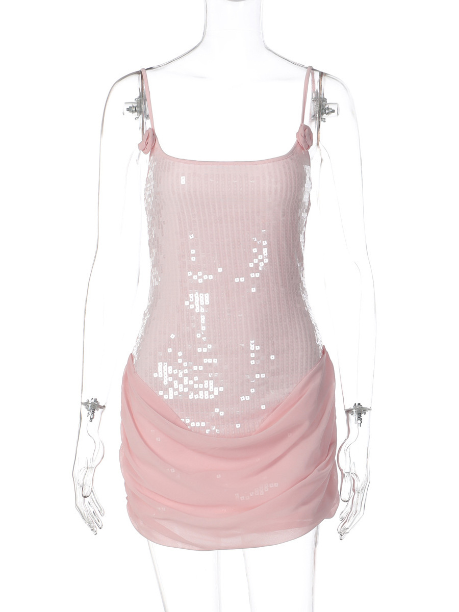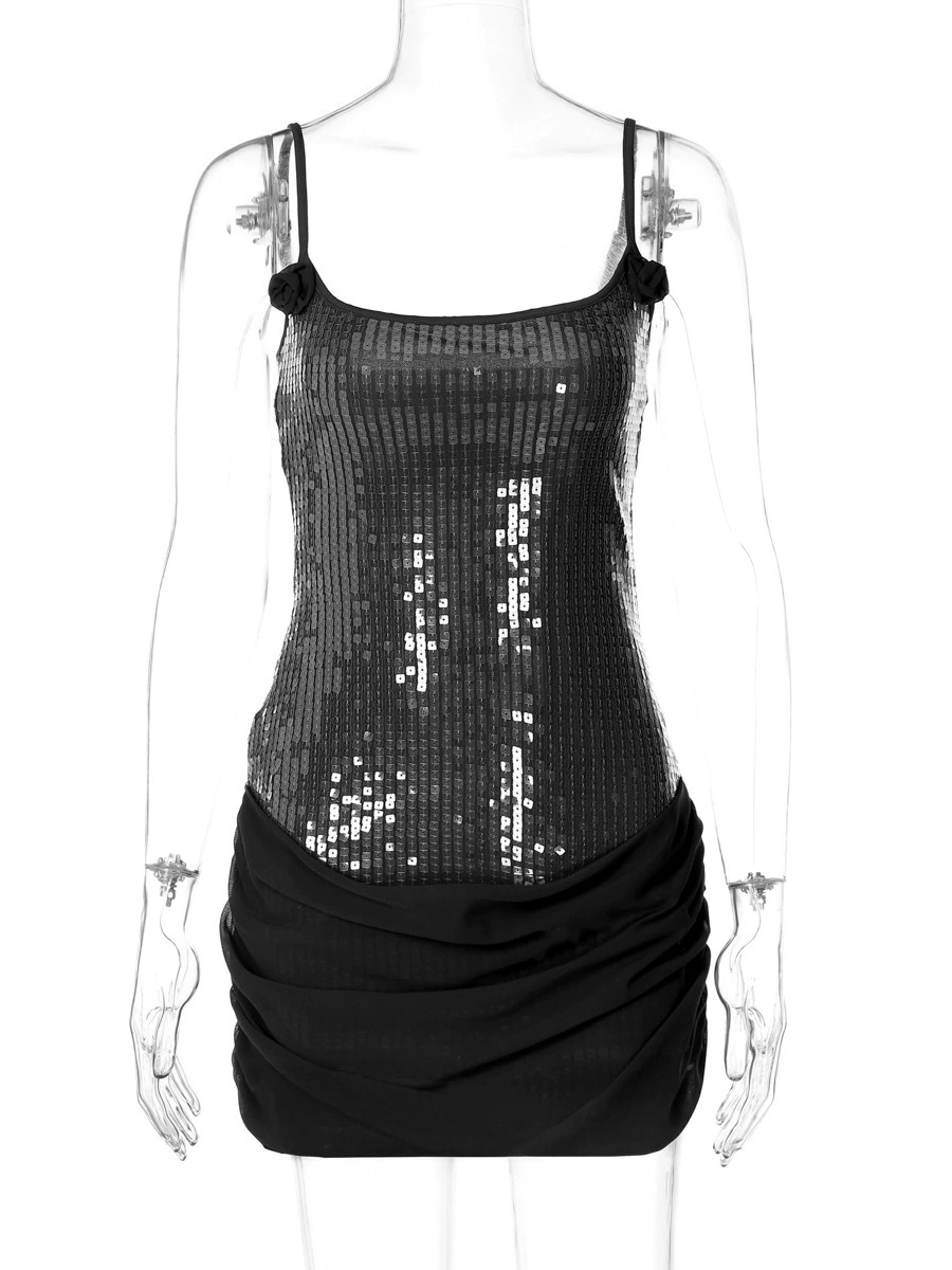 ローズディテール スパンコール スクエアネック ボディコン ミニ パーティードレス レディース 2026