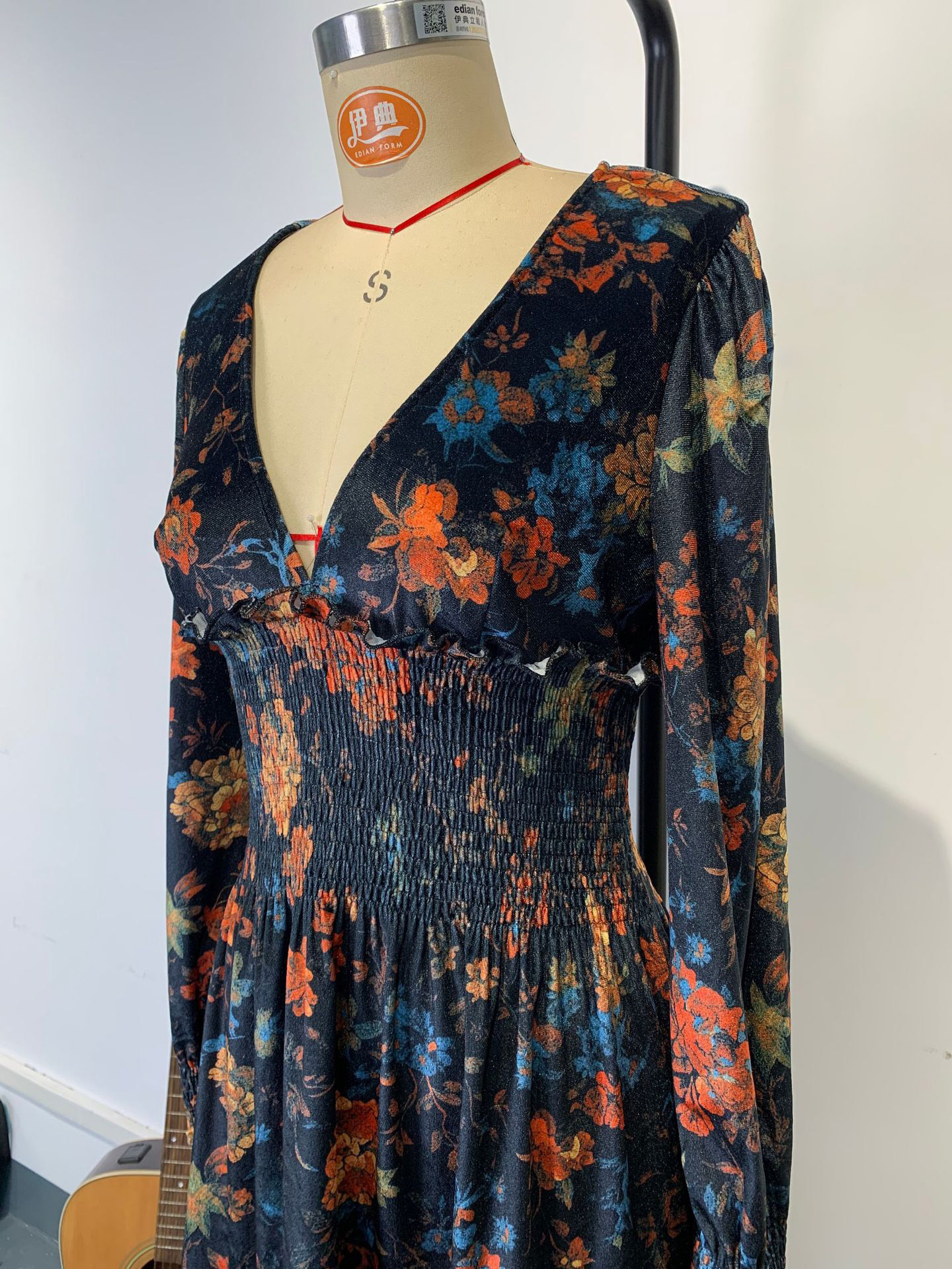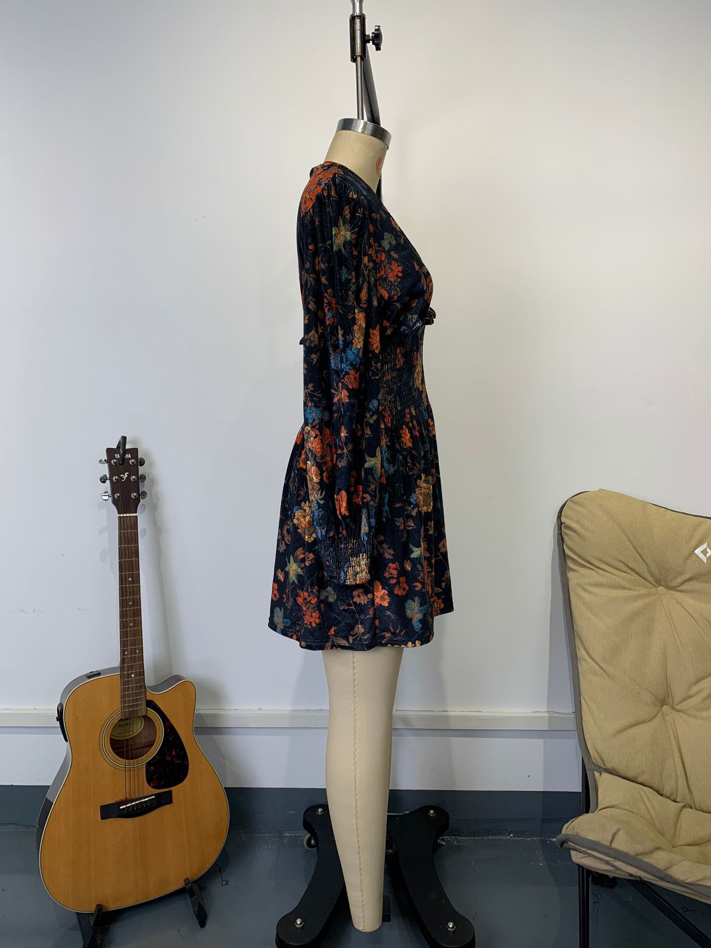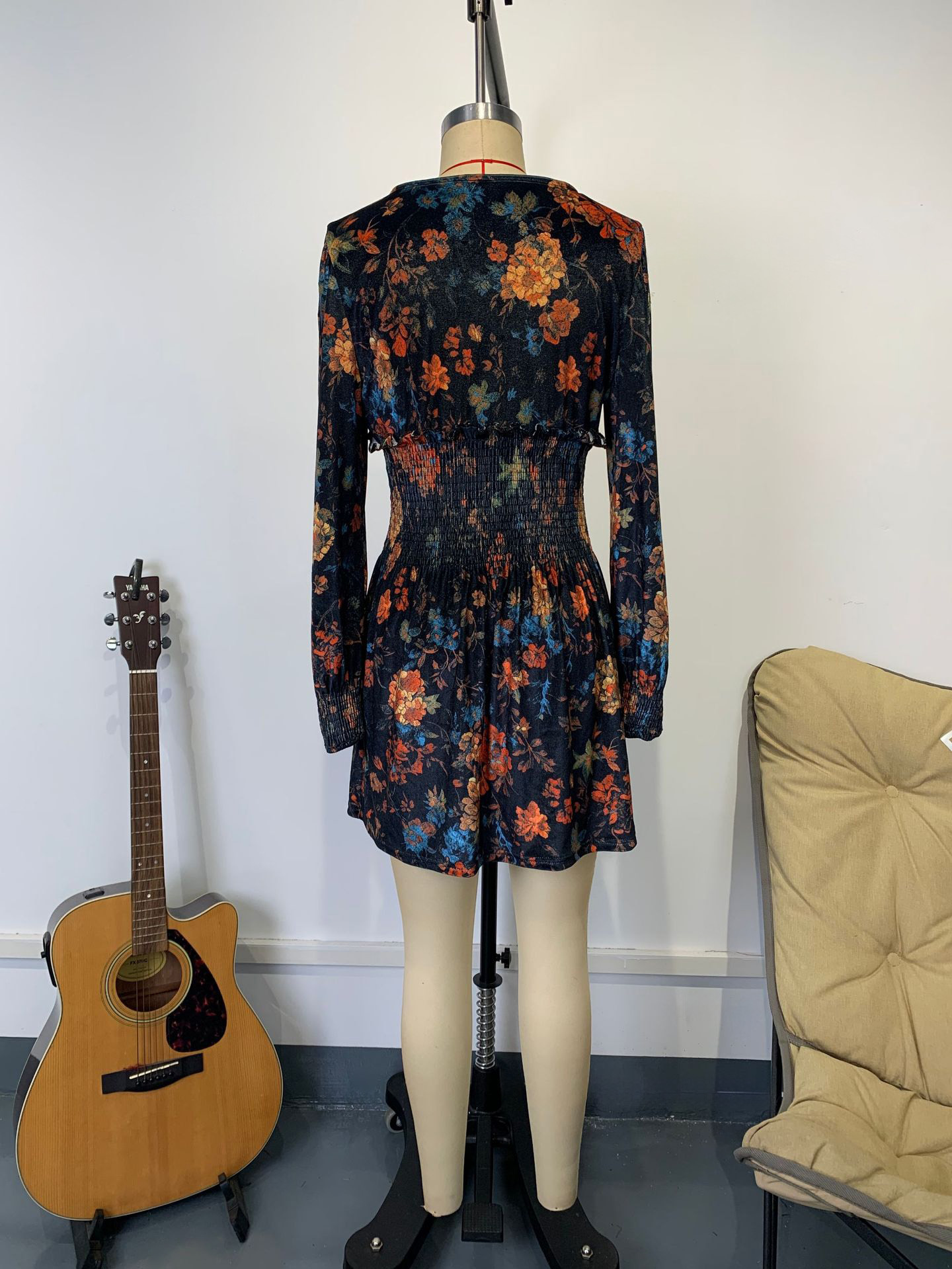 ヴィンテージ スモックウエスト Vネック 長袖 花柄 ミニドレス レディース 2026