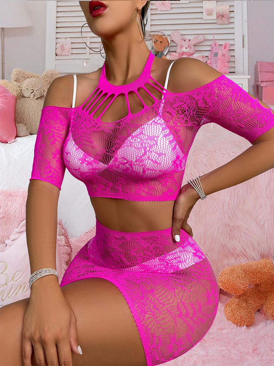 パジャマセット ブラック デート ナイロン 2ピース シースルー フィッシュネット メッシュランジェリー
