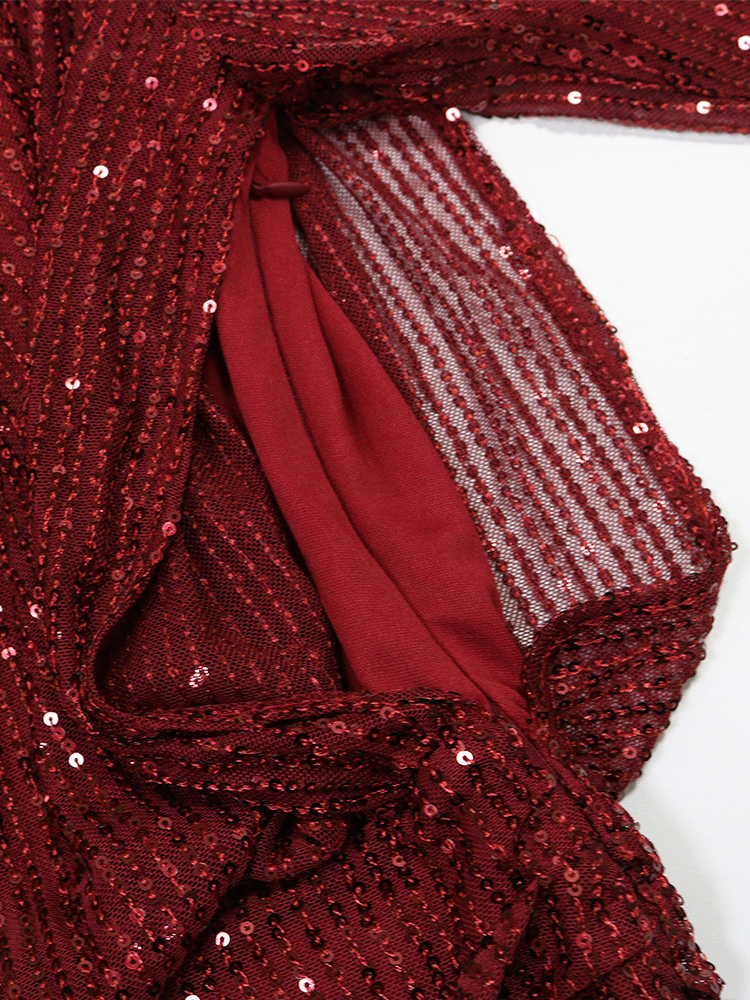 長袖スパンコールストライプルーシュミニパーティードレス(レディース)2026