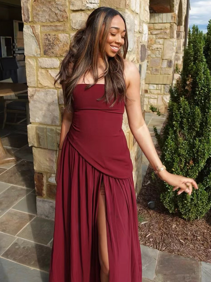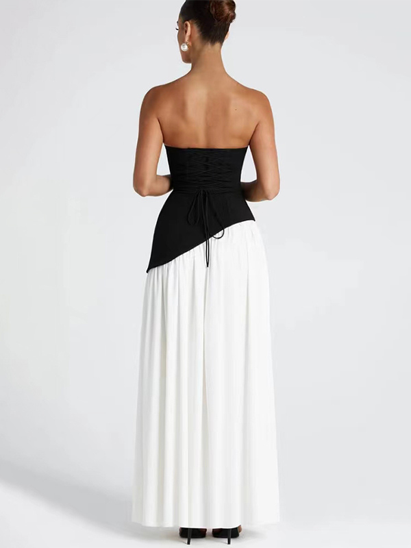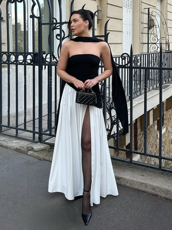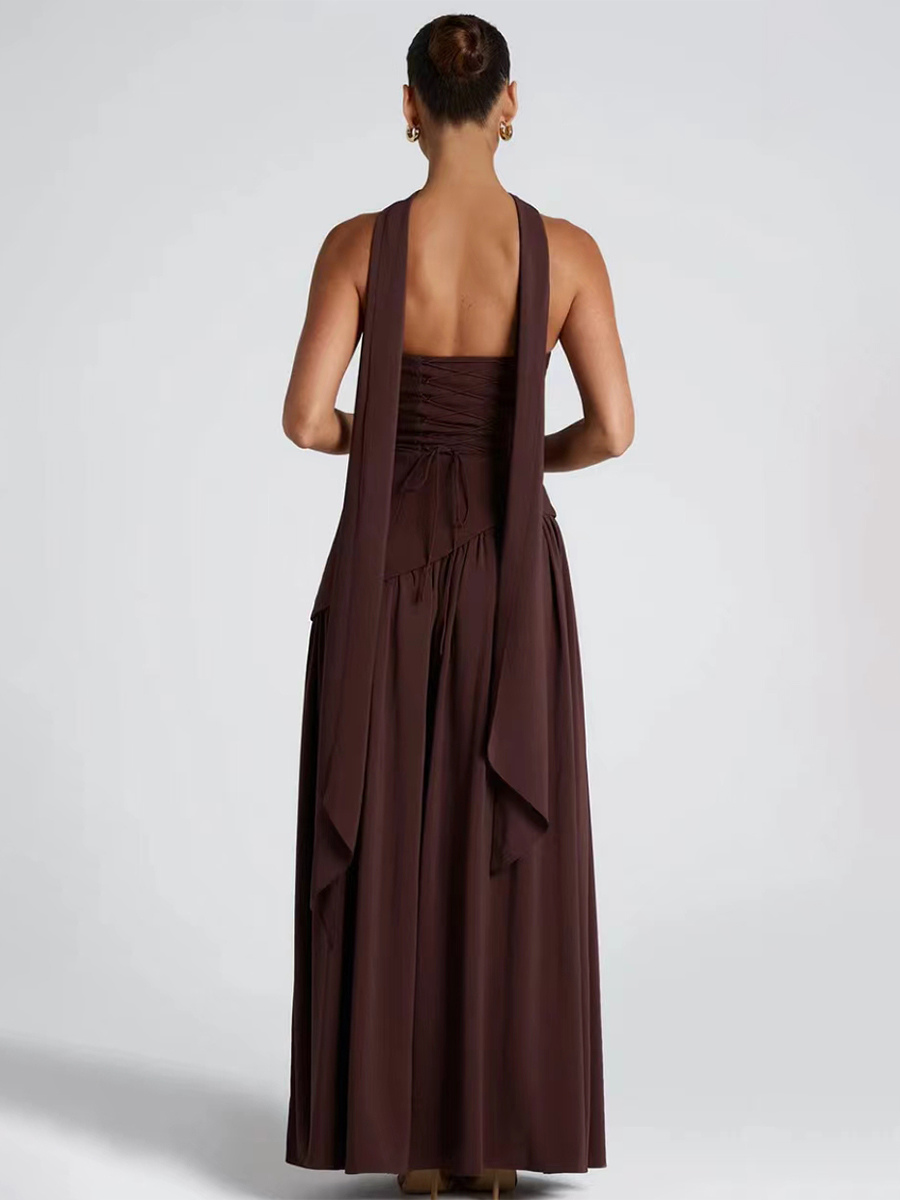 2026年レディース向けスカーフ付きアシンメトリーデザイン ストラップレス マキシ パーティードレス