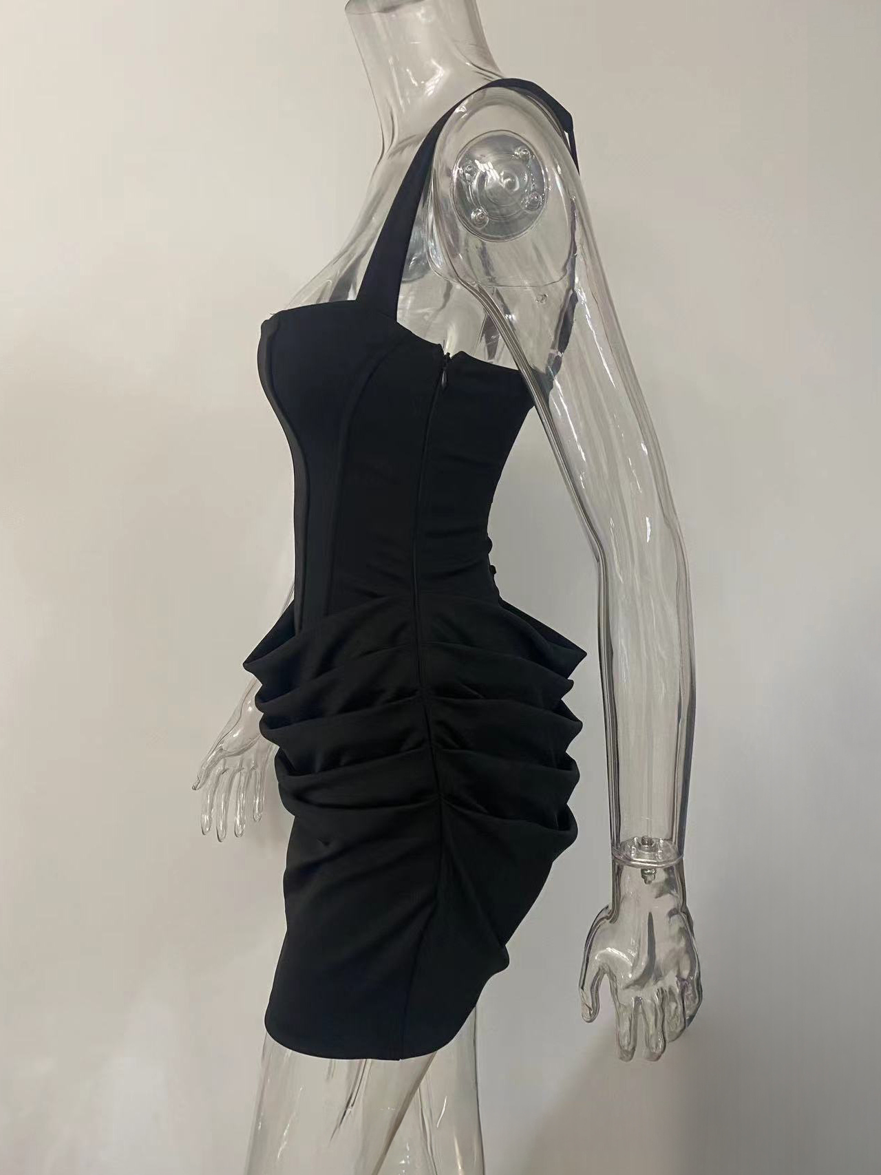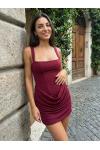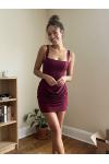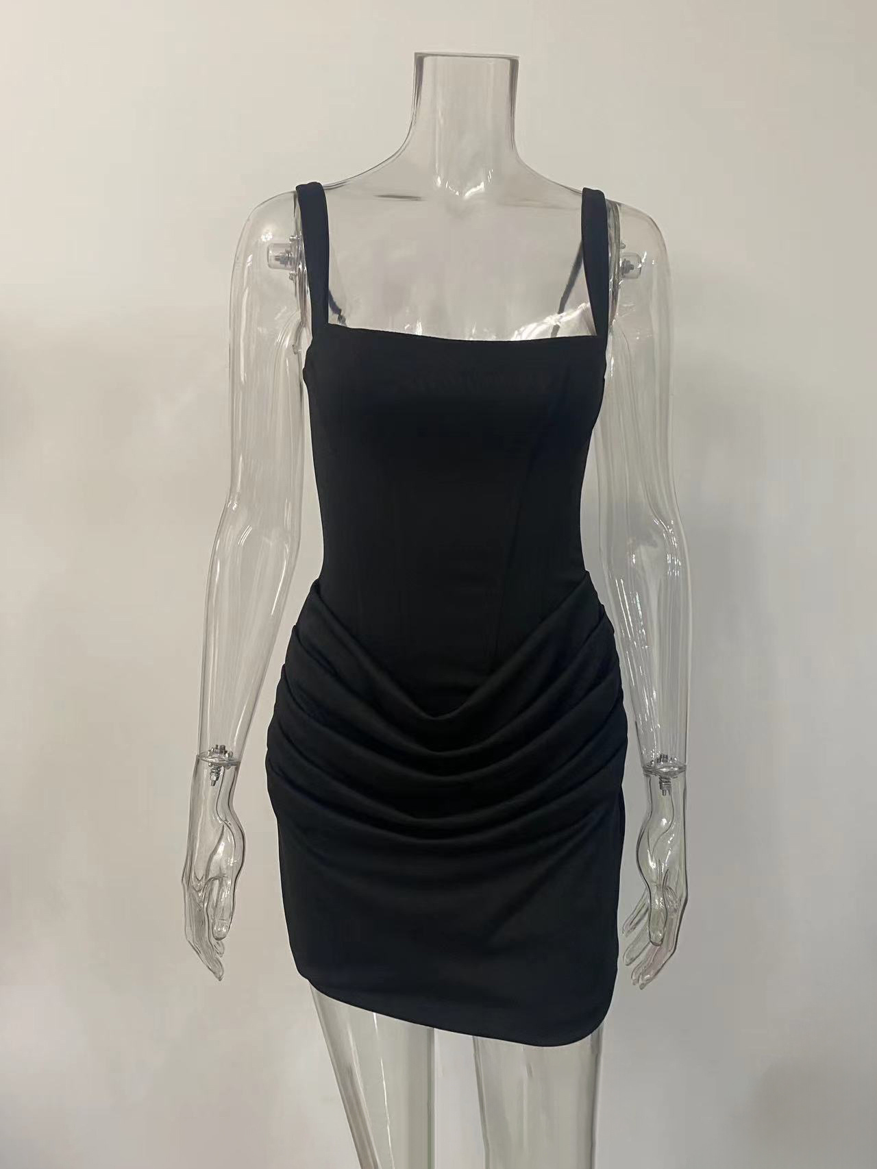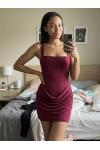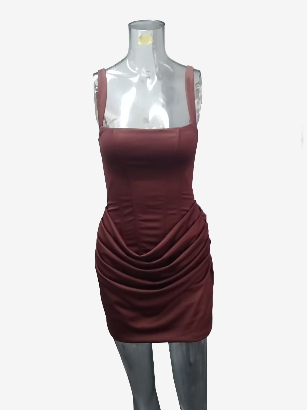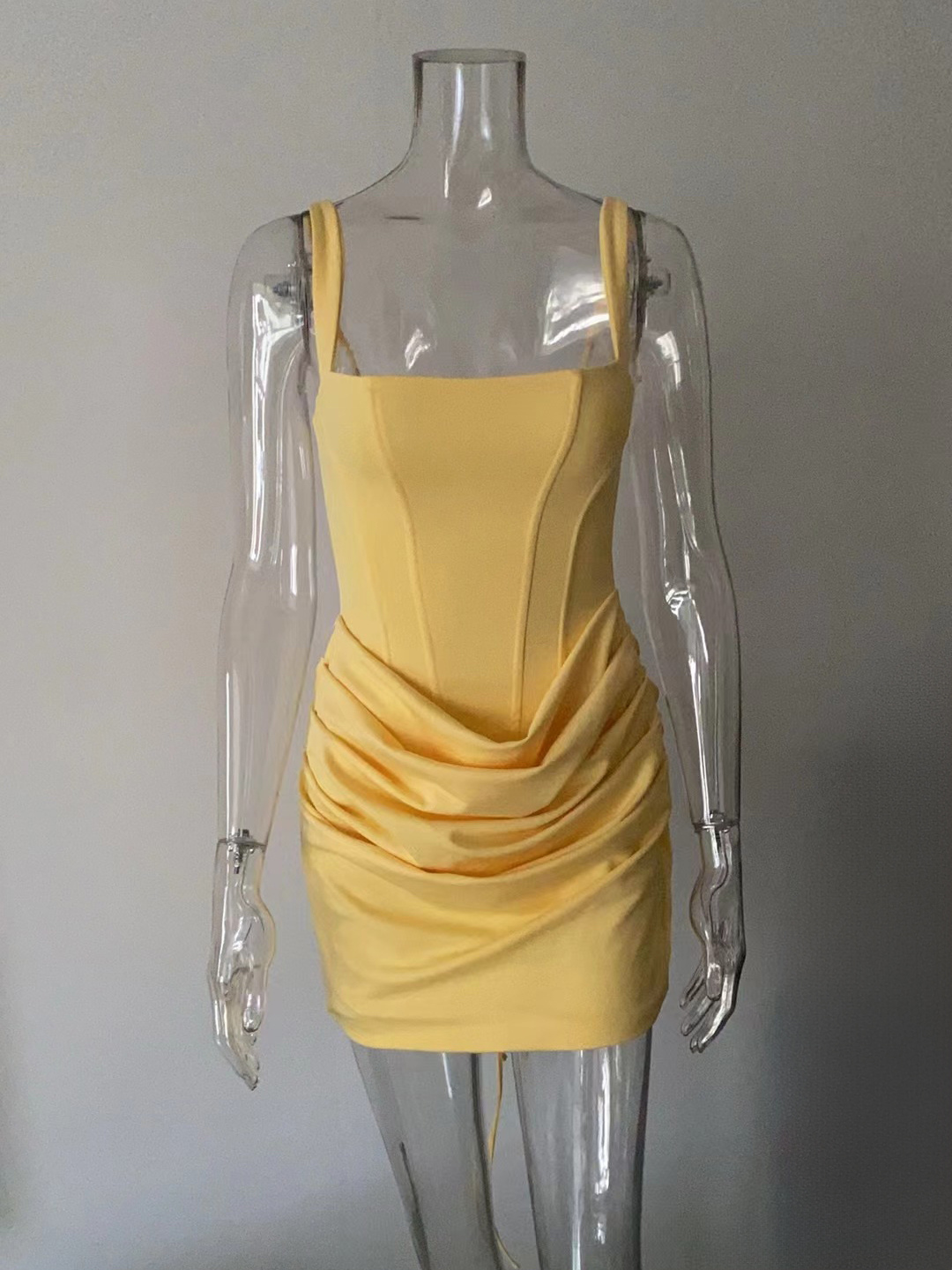 スクエアネック、レースアップ、バックコルセット、ルーシュミニボディコンドレス(レディース)2026