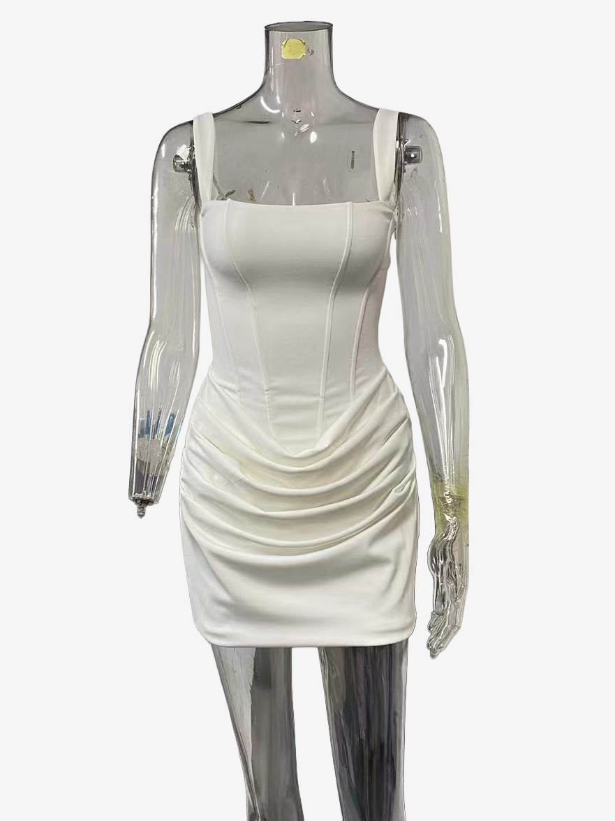 Elegant white dress! The corset fit and ruched detail are so flattering. Perfect for any party!