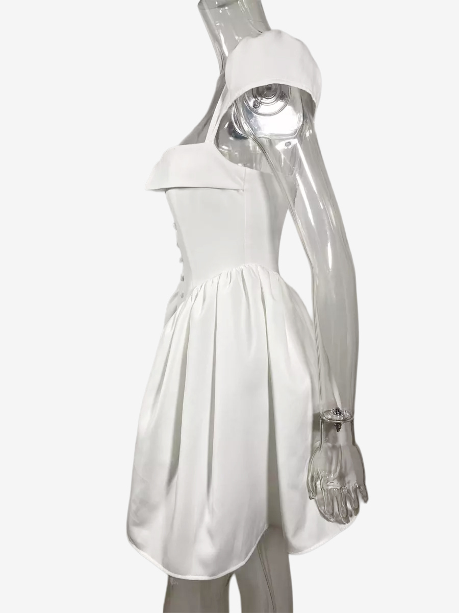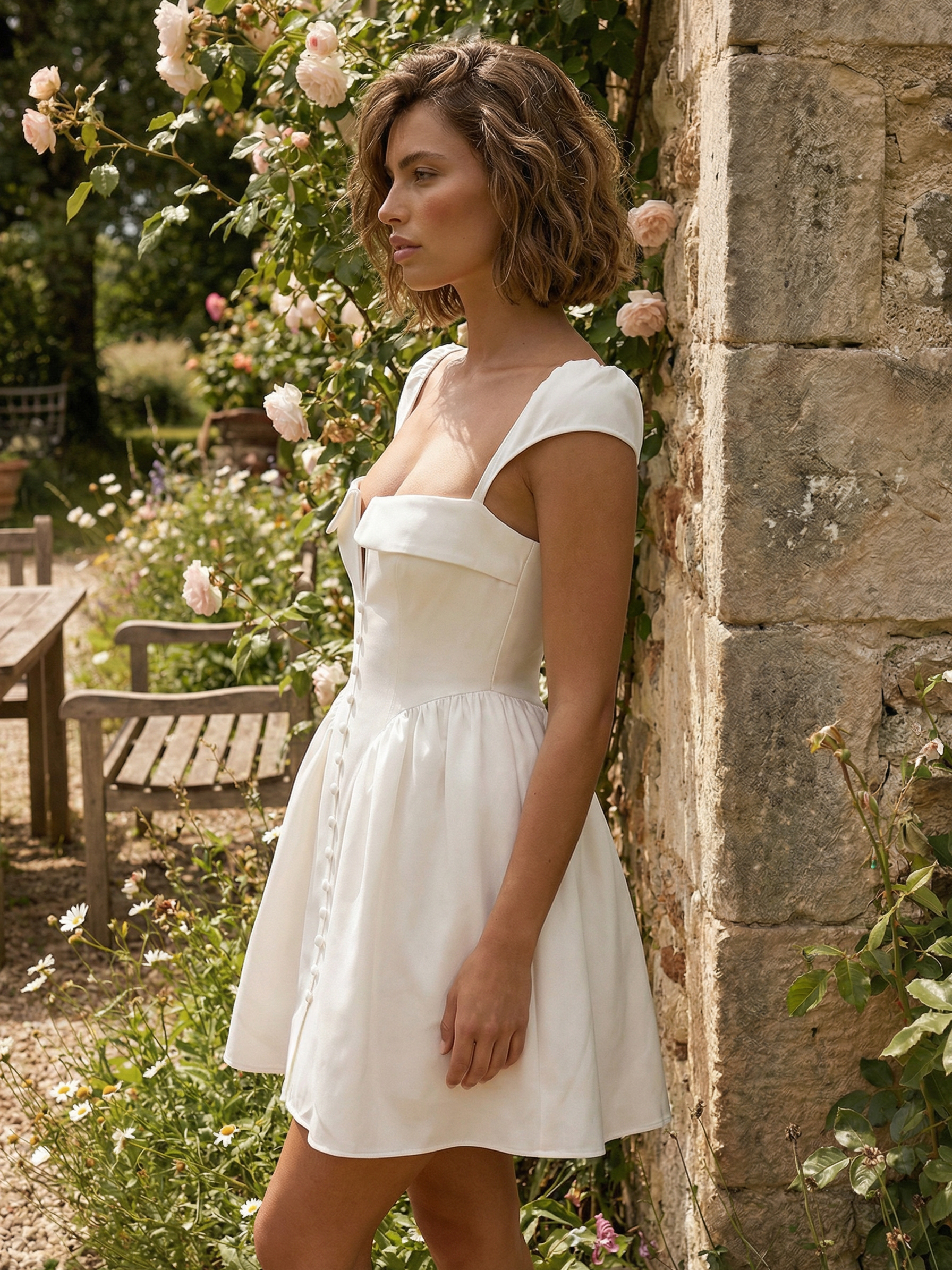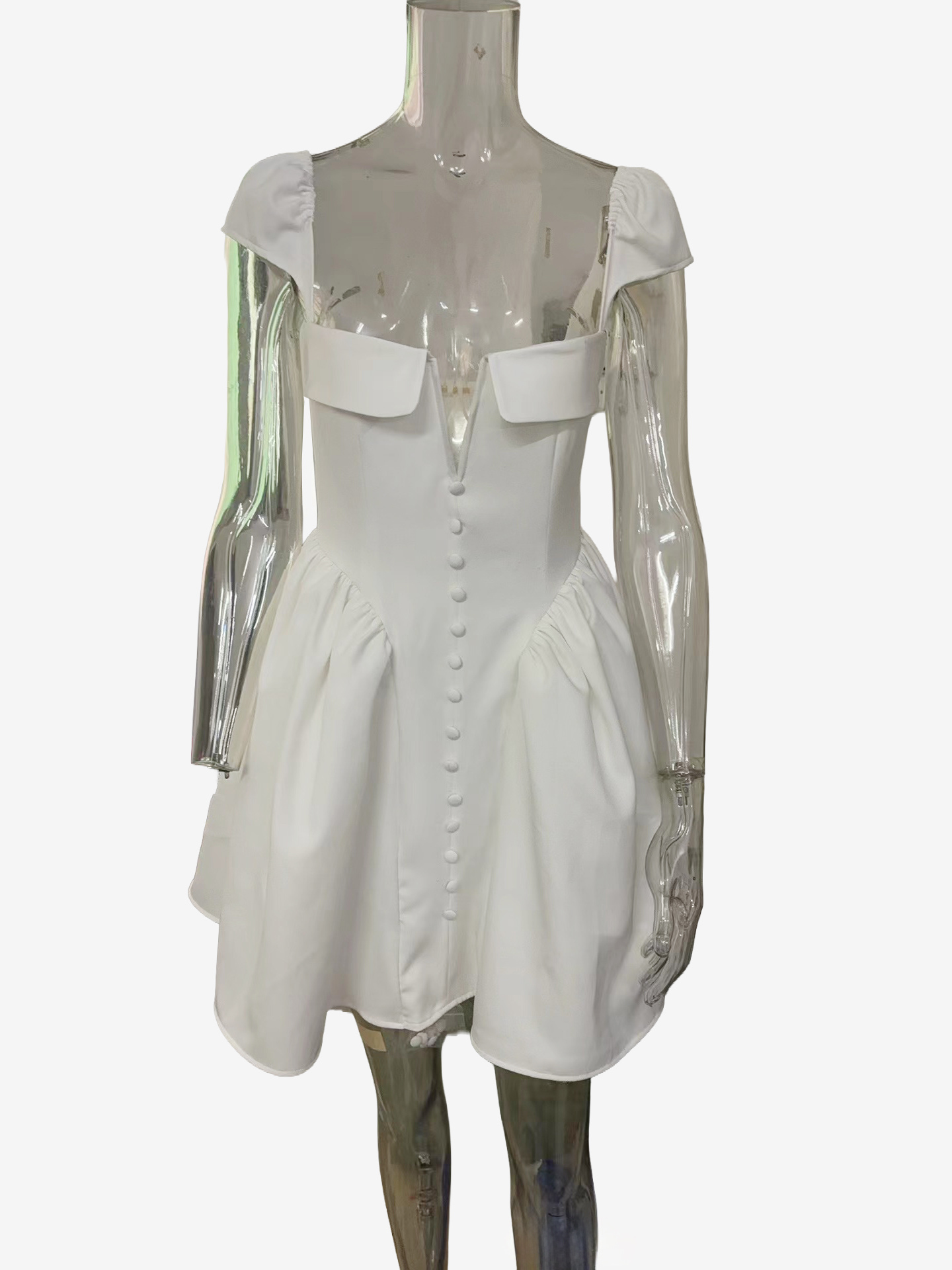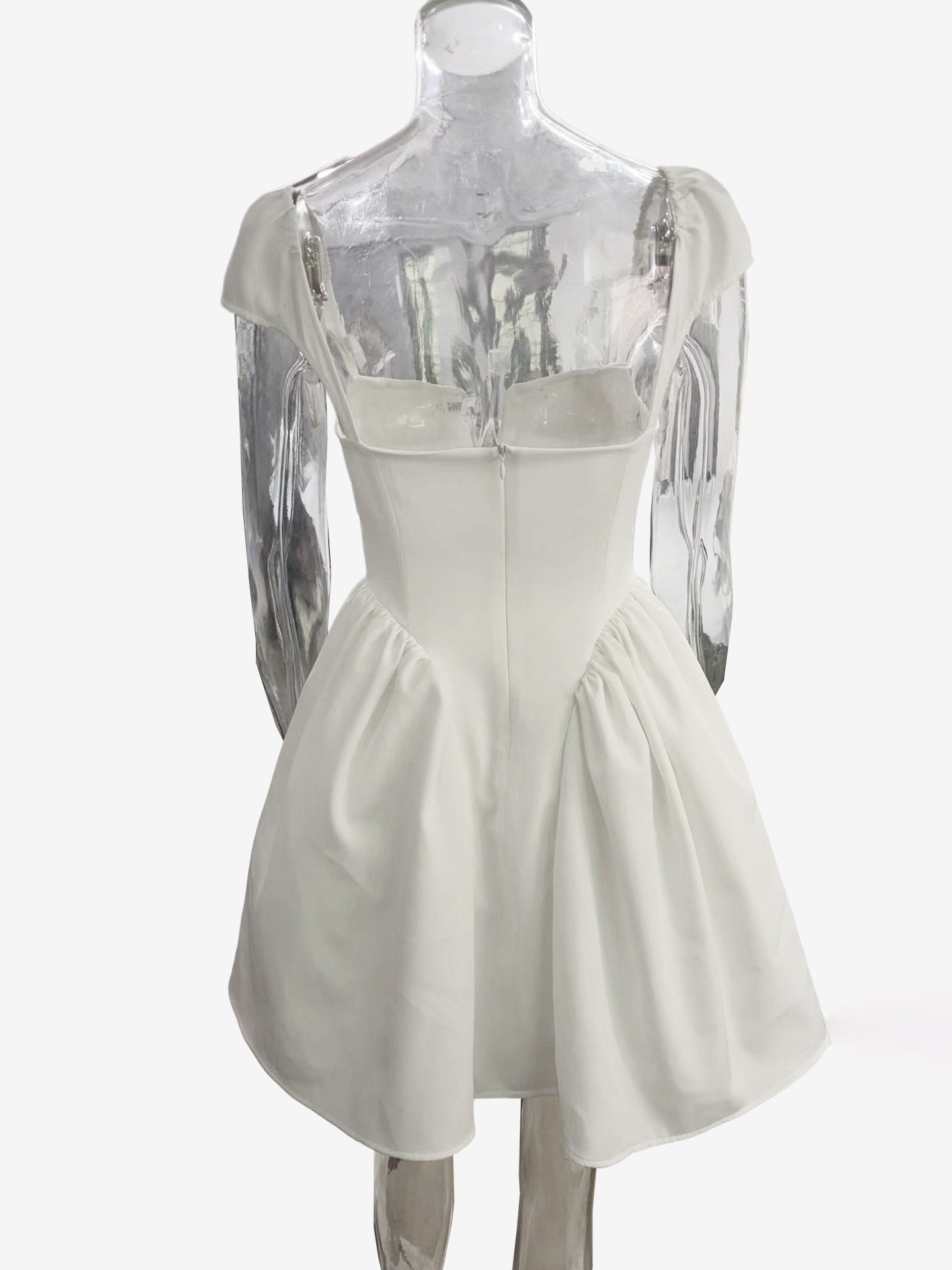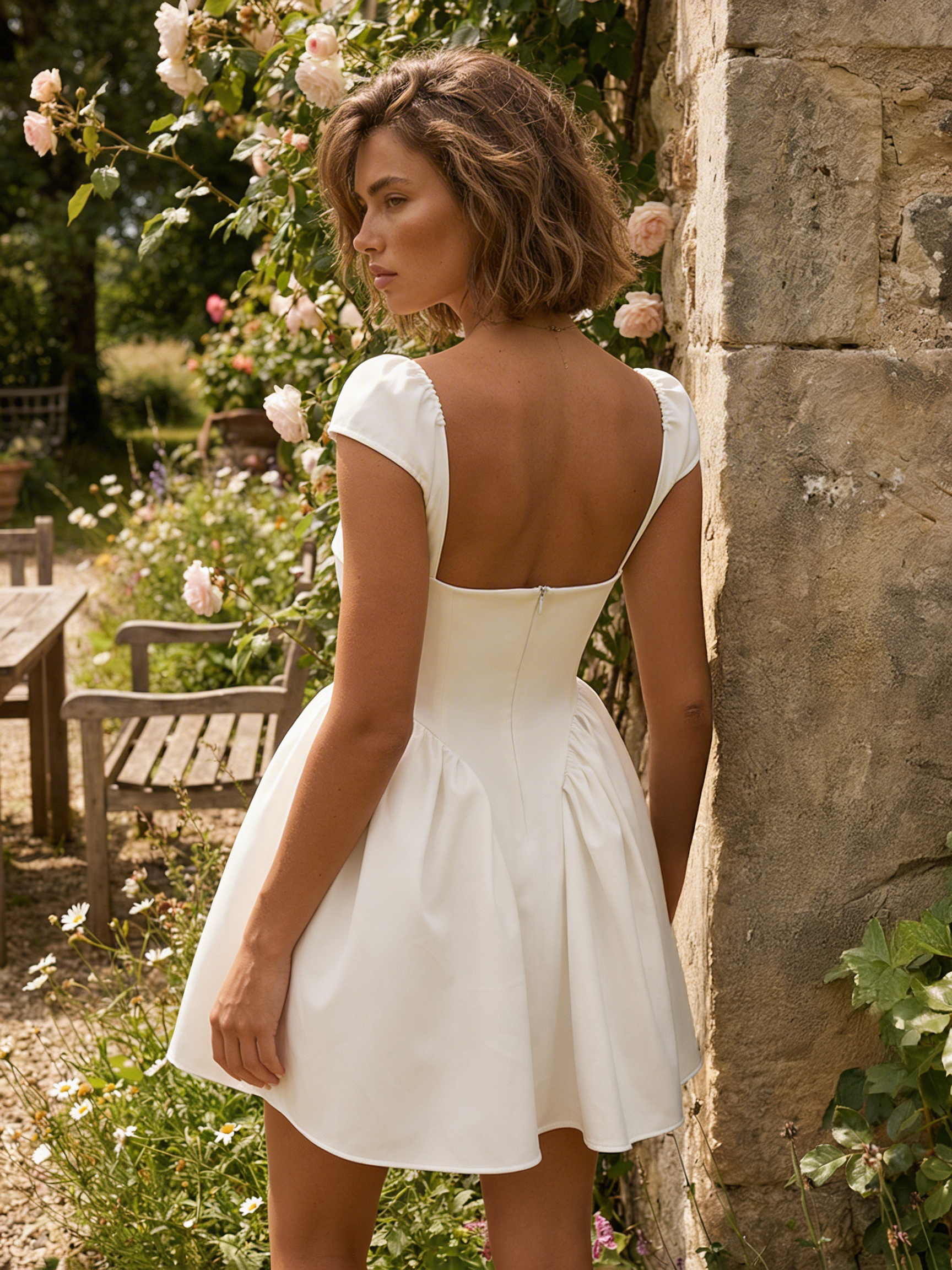 キャップスリーブルーシュVネックミニドレス(レディース)2026
