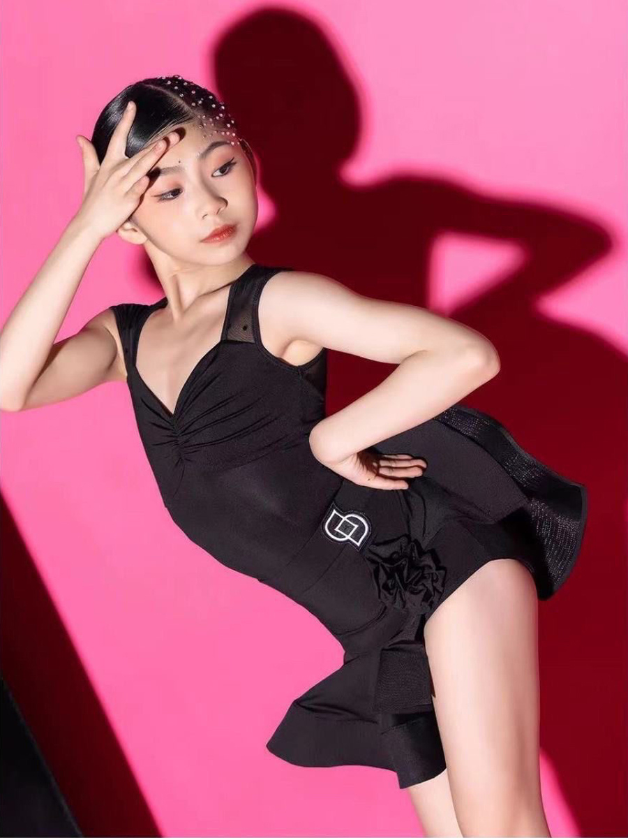 ラテンダンスドレス ピンク 女の子用 スウィートハートネックライン セクシー ラテンダンサーウェア