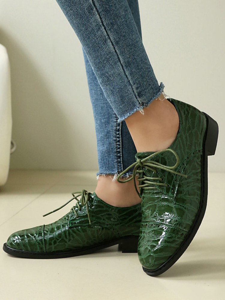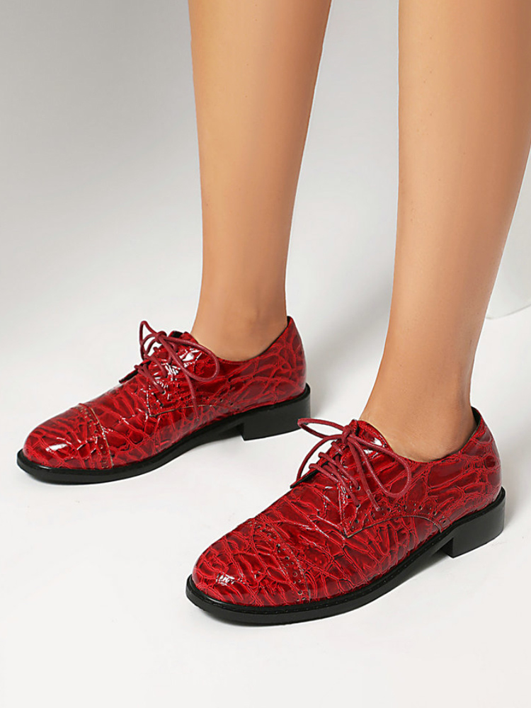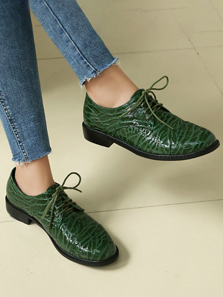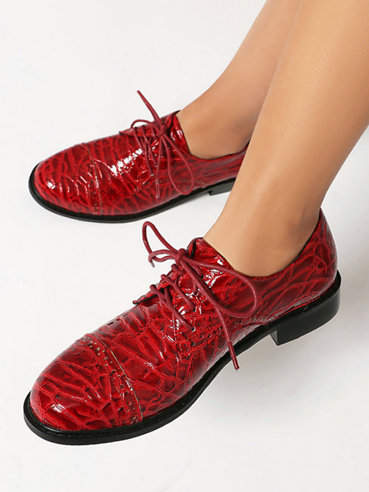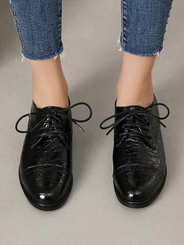 レディース オックスフォードシューズ ラウンドトゥ レースアップ フラット カジュアルシューズ