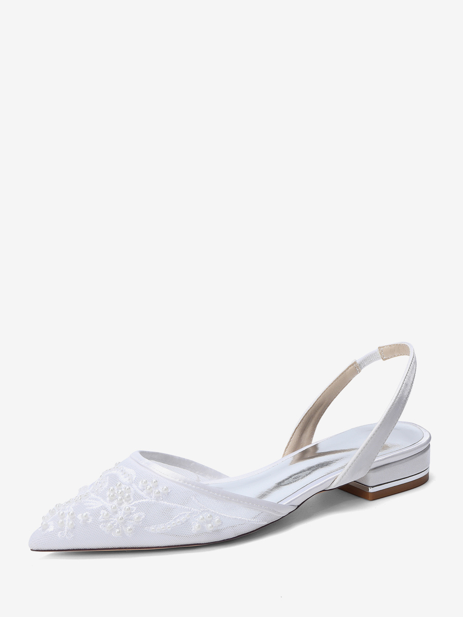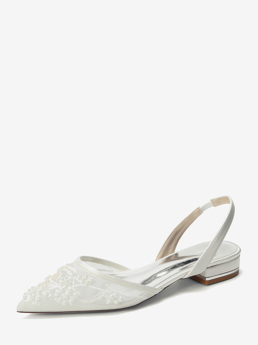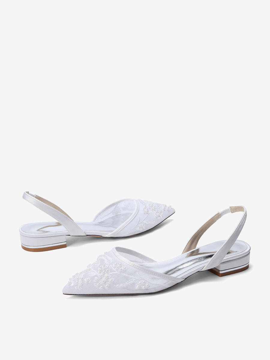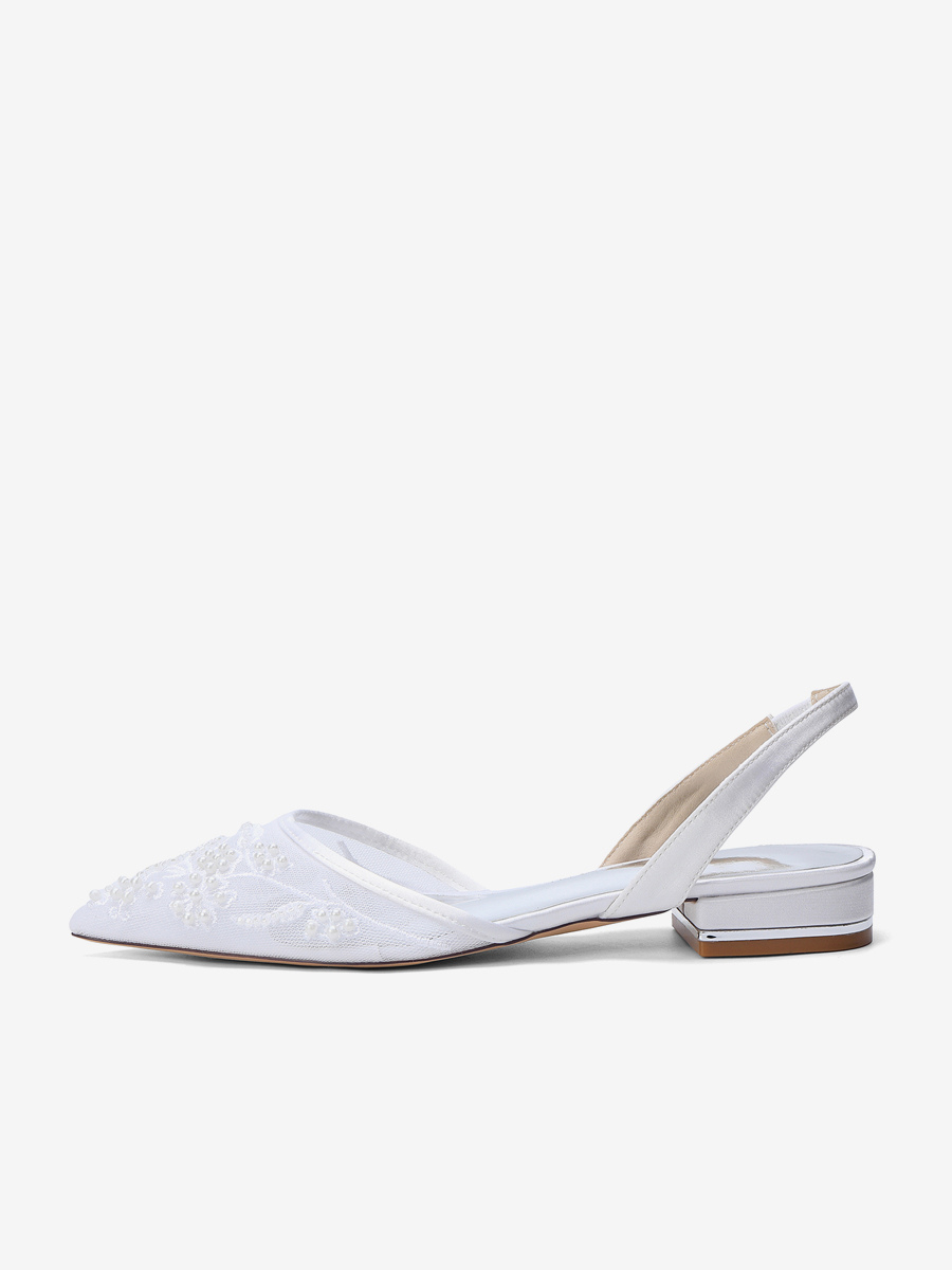レースフラットウェディングシューズ ポインテッドトゥ スリッポン ブライダルシューズ