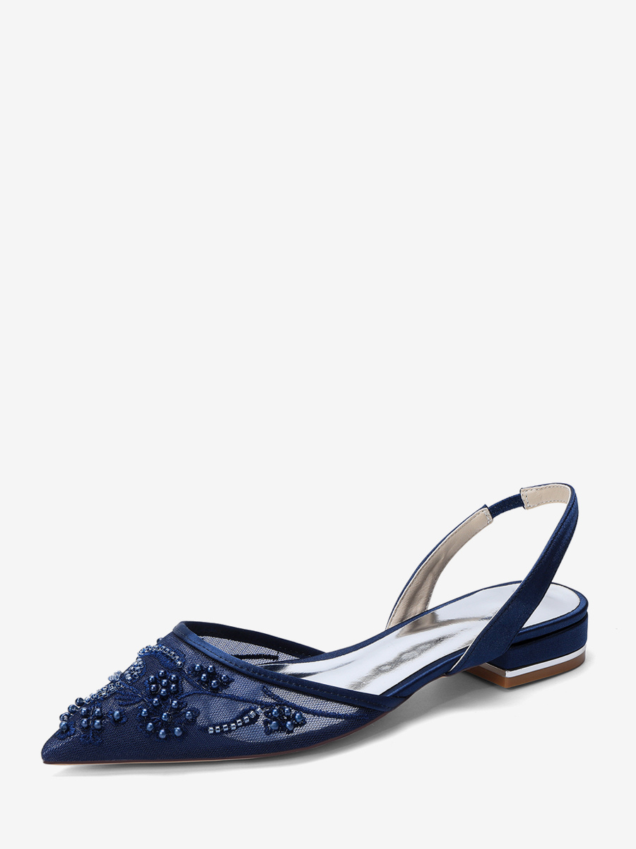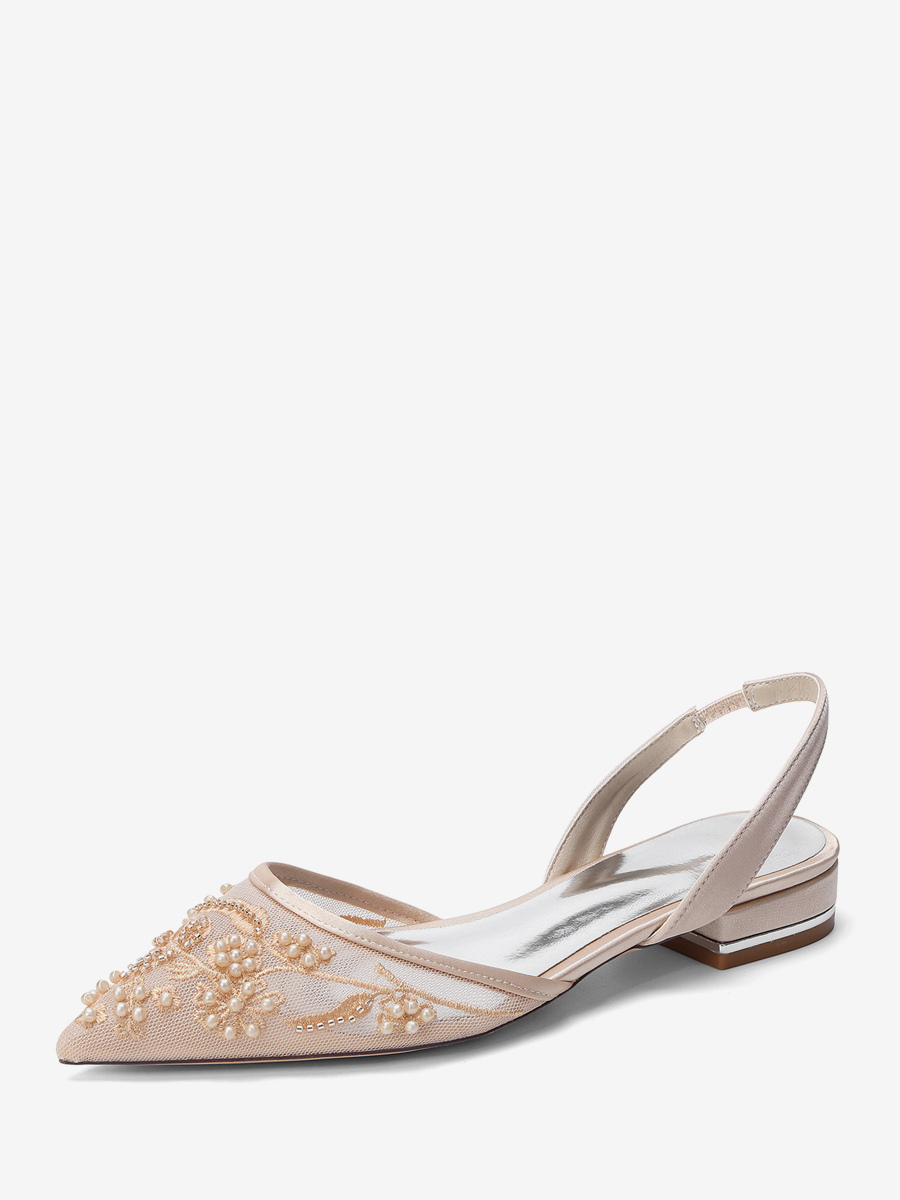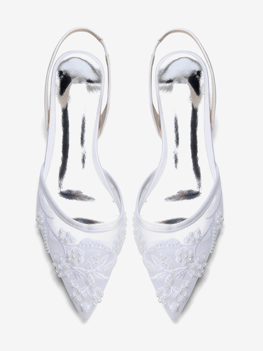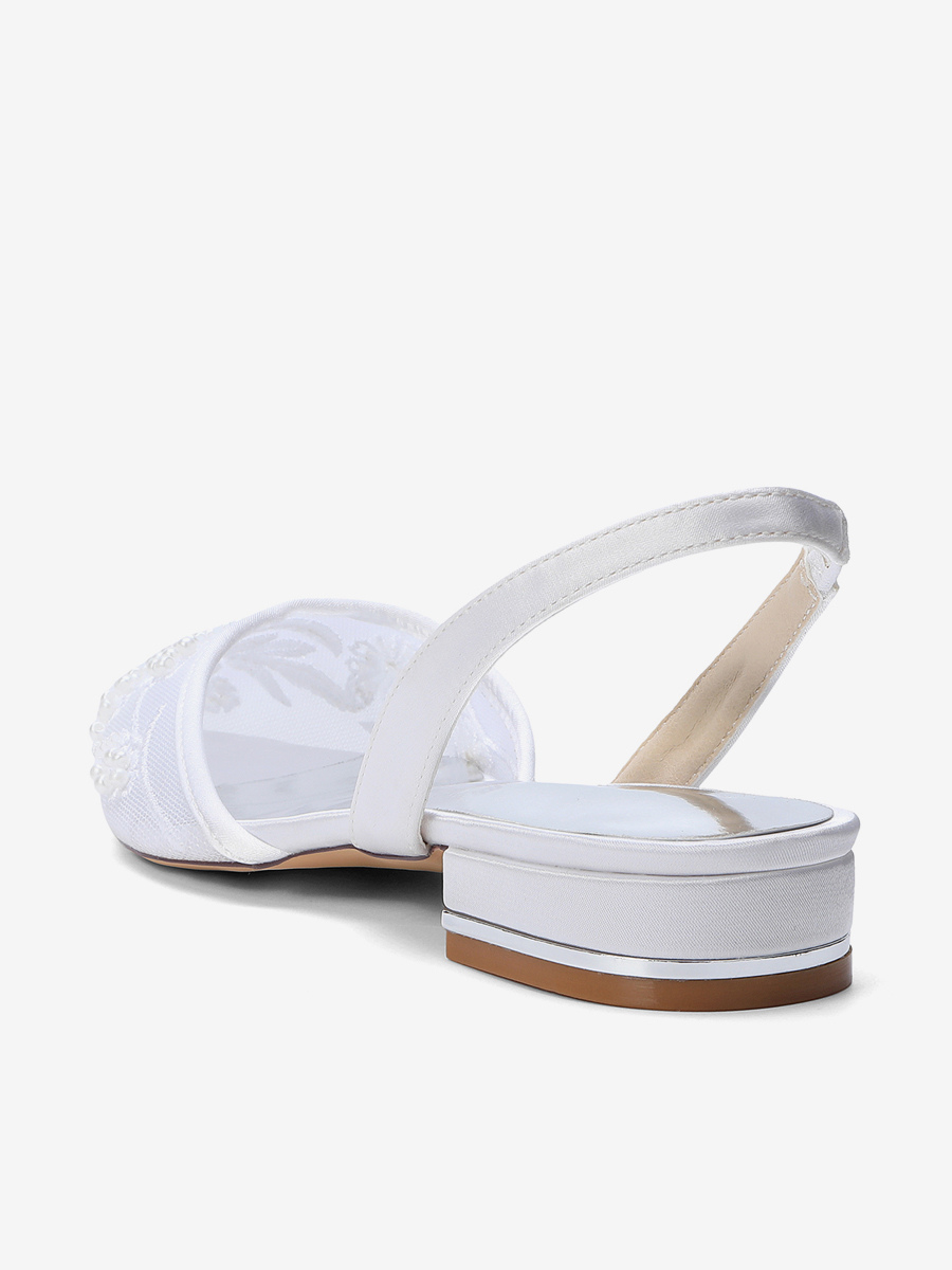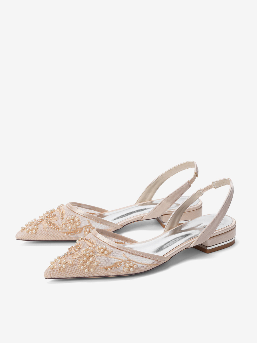 レースフラットウェディングシューズ ポインテッドトゥ スリッポン ブライダルシューズ