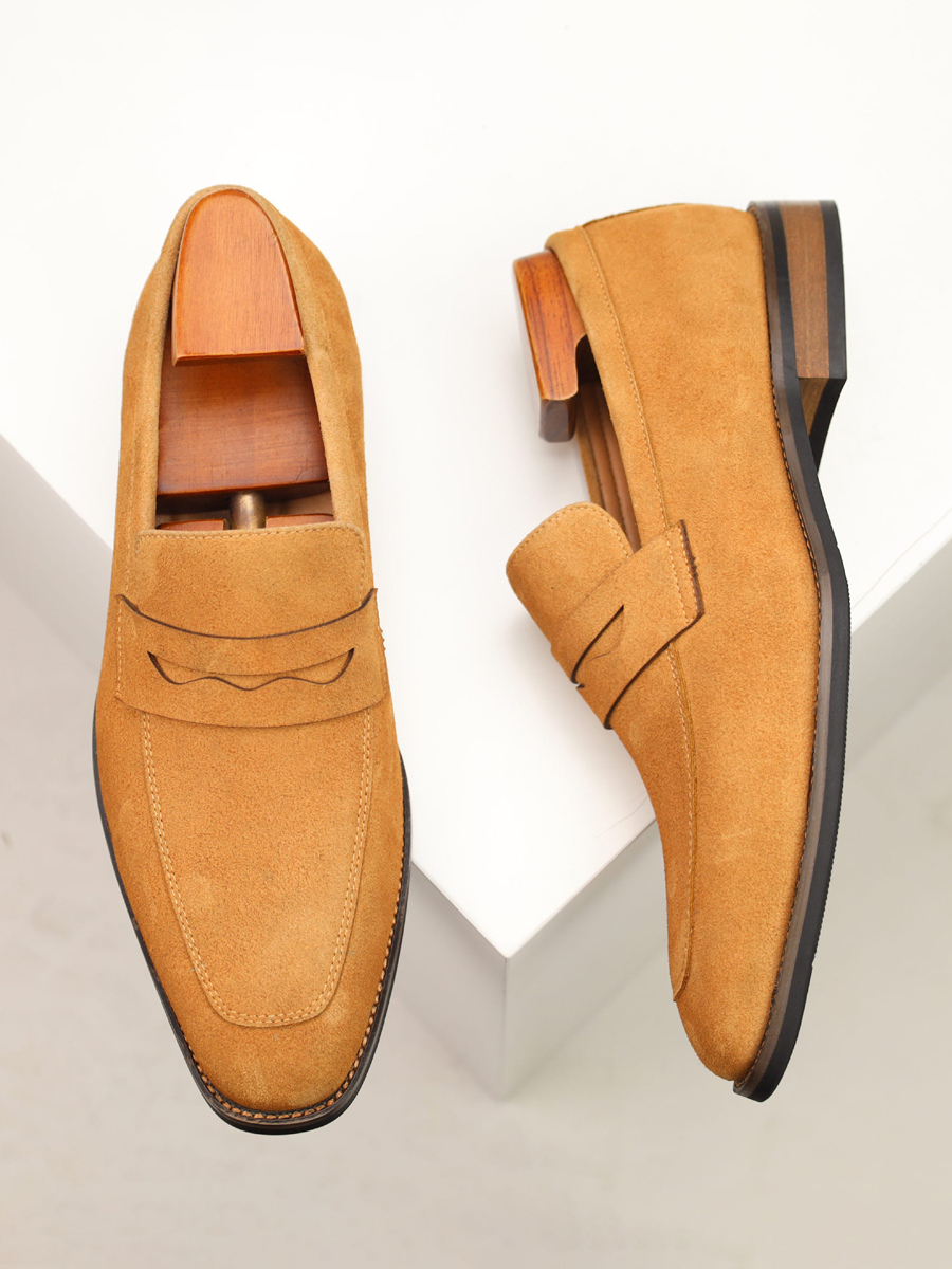 メンズ カジュアルシューズ スエード ラウンドトゥ スリップオン ペニーローファー